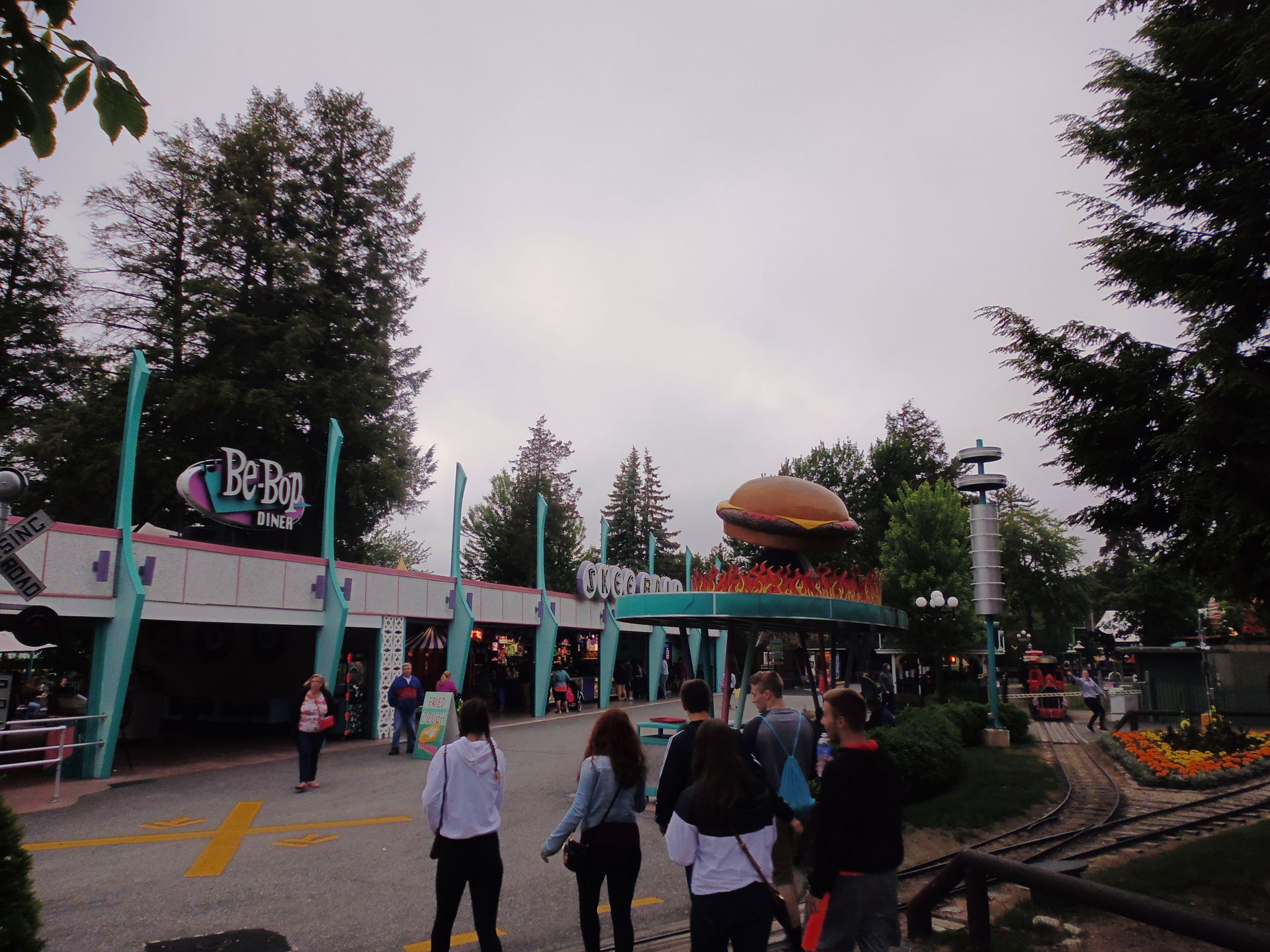 Der Park war für diese triste Wetterlage zwar überraschend gut gefüllt - war halt doch ein Sonntagabend -, aber die Warteschlangen an den Fahrattraktionen hielten sich glücklicherweise in Grenzen. So wurde es nach einem ersten Eindruckaufsaugen und einer kurzen Fototour dann Zeit für den Auftakt in die Coastersaison 2016 auf dem Canobie Corkscew!