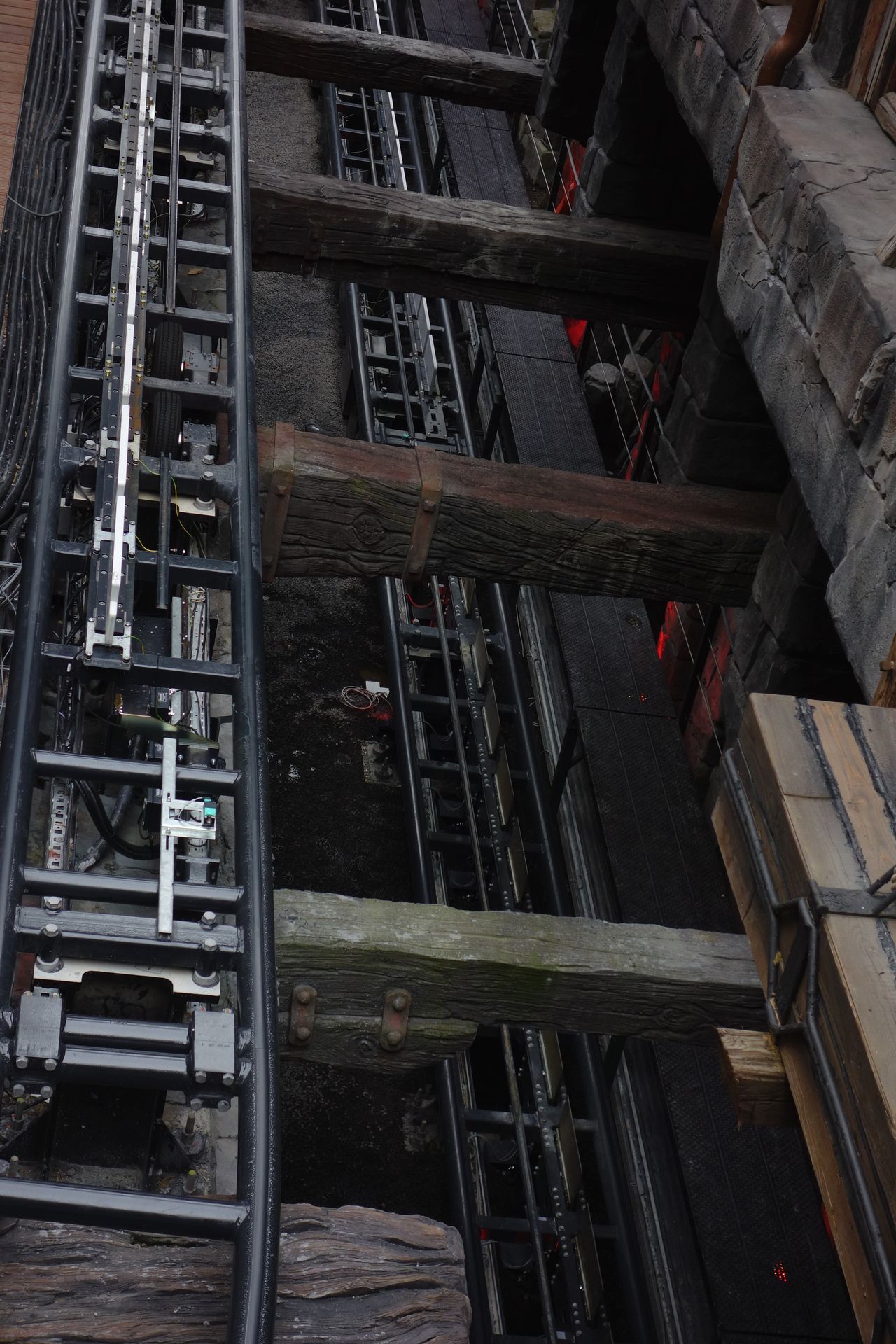 Doch was halte ich nun von Raik? Der Zug sieht jedenfalls schonmal super aus und ist wirklich bequem. Nachdem die Bügel kontrolliert und der Stationsboden gesenkt sind, befördern ihn Reibräder rückwärts den Lift hinauf. Mit stimmiger Musikuntermalung kommt man in der leider recht kahlen Einhausung kurz zum Stehen, dann saust der Zug wider gen Erdboden und durch die Station hindurch. Auf dem anschließenden Hügel vermisse ich etwas