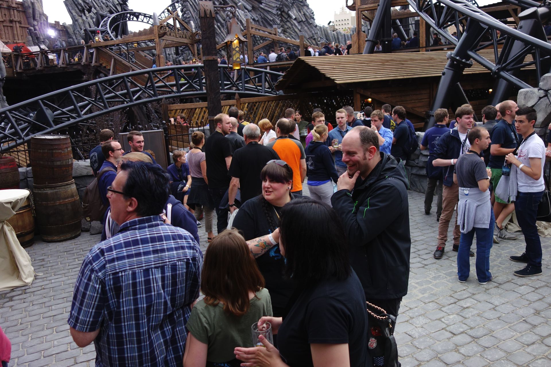 Während wir also auf die Eröffnung der beiden Achterbahnen warteten, kamen wir mit der Mitarbeiterin am Eingang von Raik ins Gespräch. So erfuhren wir auch den groben Ablauf des Events, wonach Taron um 19:30 Uhr und Raik um 20:00 Uhr den Betrieb aufnehmen sollten. Das Ende des Events war gemäß ihres Dienstplans wohl für 23 Uhr angesetzt. Außerdem gestand sie, dass man auf weitere Details an den Wänden bewusst verzichtet habe, sie hätten ja vermutlich eh nicht lange gehalten...