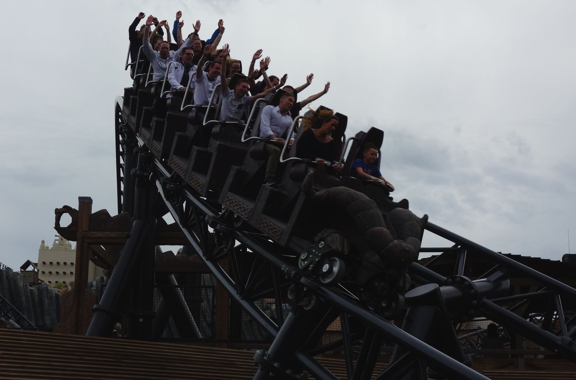 Airtime stark zurück und wenig später rollt der Zug auf dem Umkehrpunkt aus. Anschließend wird die gleiche Strecke nochmals rückwärts durchfahren, wobei das Tempo schon merklich geringer wird. Da hätte man die für den Winterbetrieb eh verbauten Reibräder gerne auch im Sommer zuschalten können. Trotzdem kann die Rückwärtsfahrt durchaus überzeugen. Insgesamt ist Raik eine gelungene Familienbahn, der zwar ein richtiges Highlight im Fahrtverlauf fehlt, die aber mit Tempo und der grandiosen Einbettung in den Themenbereich dennoch punkten kann.