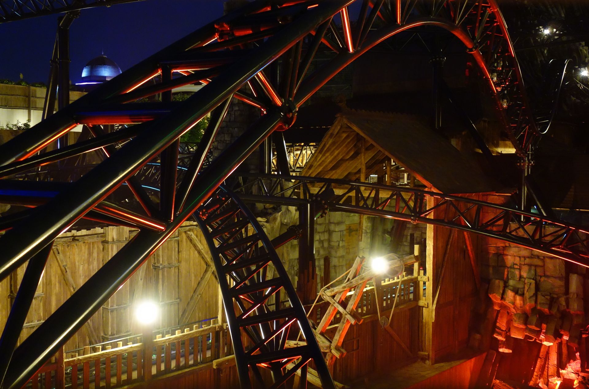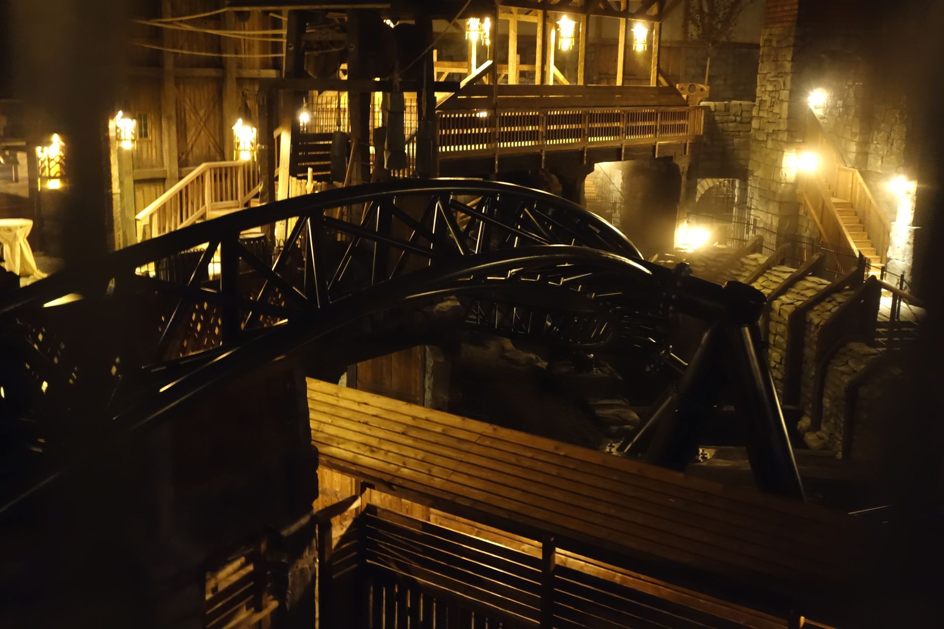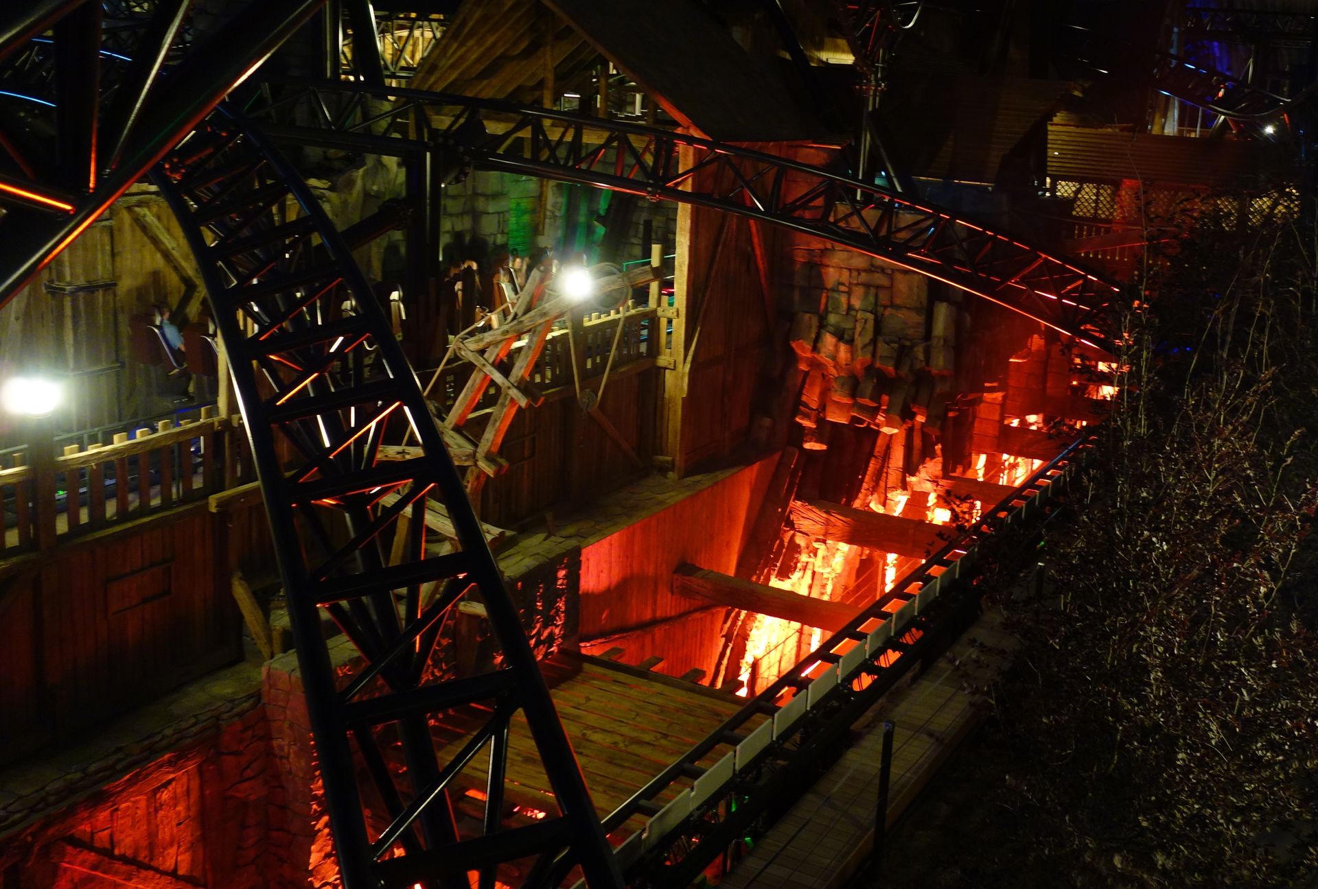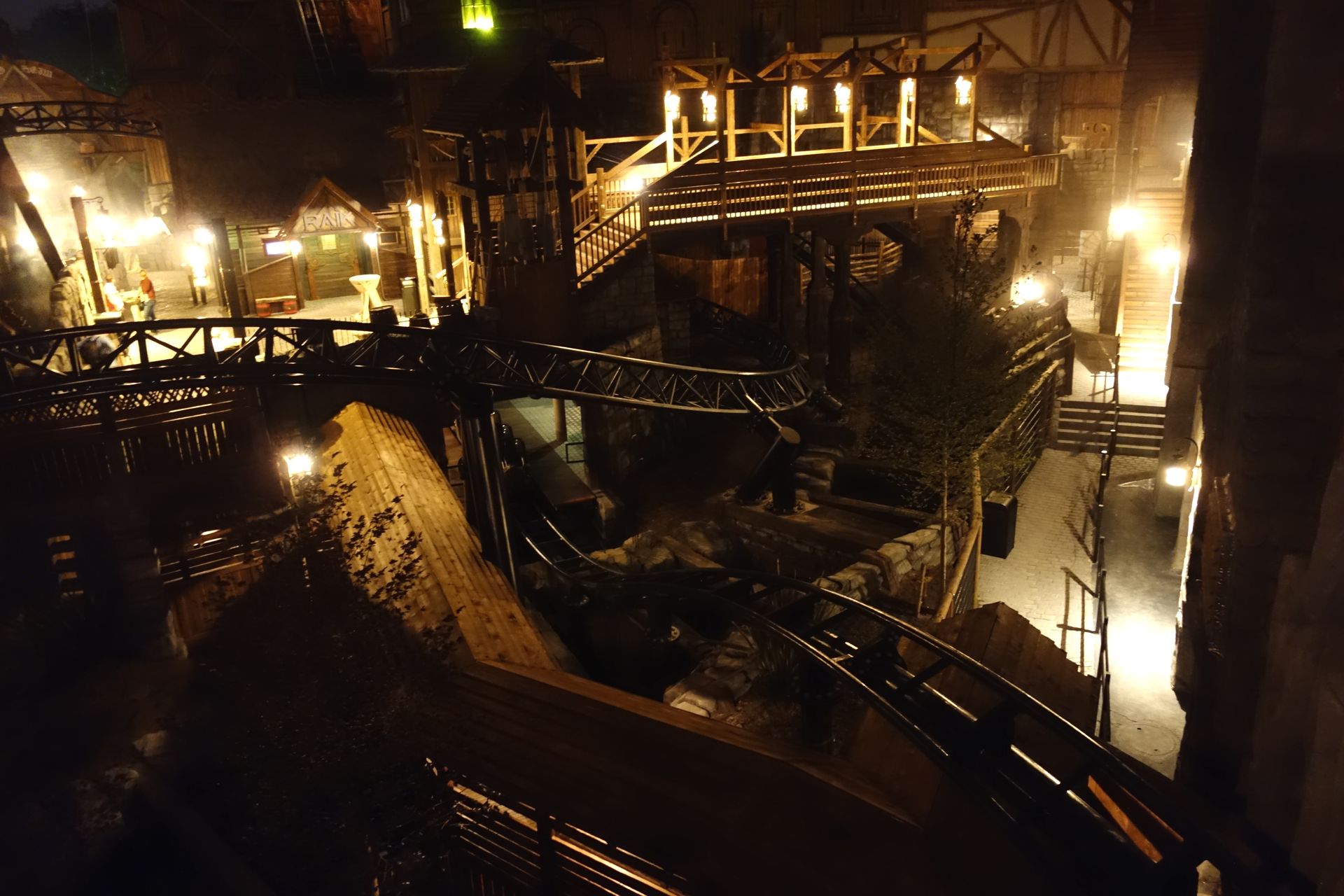 Nachdem man schon leicht überzogen hatte, fuhr der letzte Zug so gegen 23:20 Uhr über die Strecke. Als guter Gastgeber lud uns das Phantasialand aber ein, den Abend noch in geselliger Runde auf dem Dorfplatz ausklingen zu lassen. Meine Mitfahrgelegenheit wollte allerdings alsbald aufbrechen. So machte ich mich noch schnell auf den Weg zur großen Brücke, die ich bis dahin noch gar nicht betreten hatte...