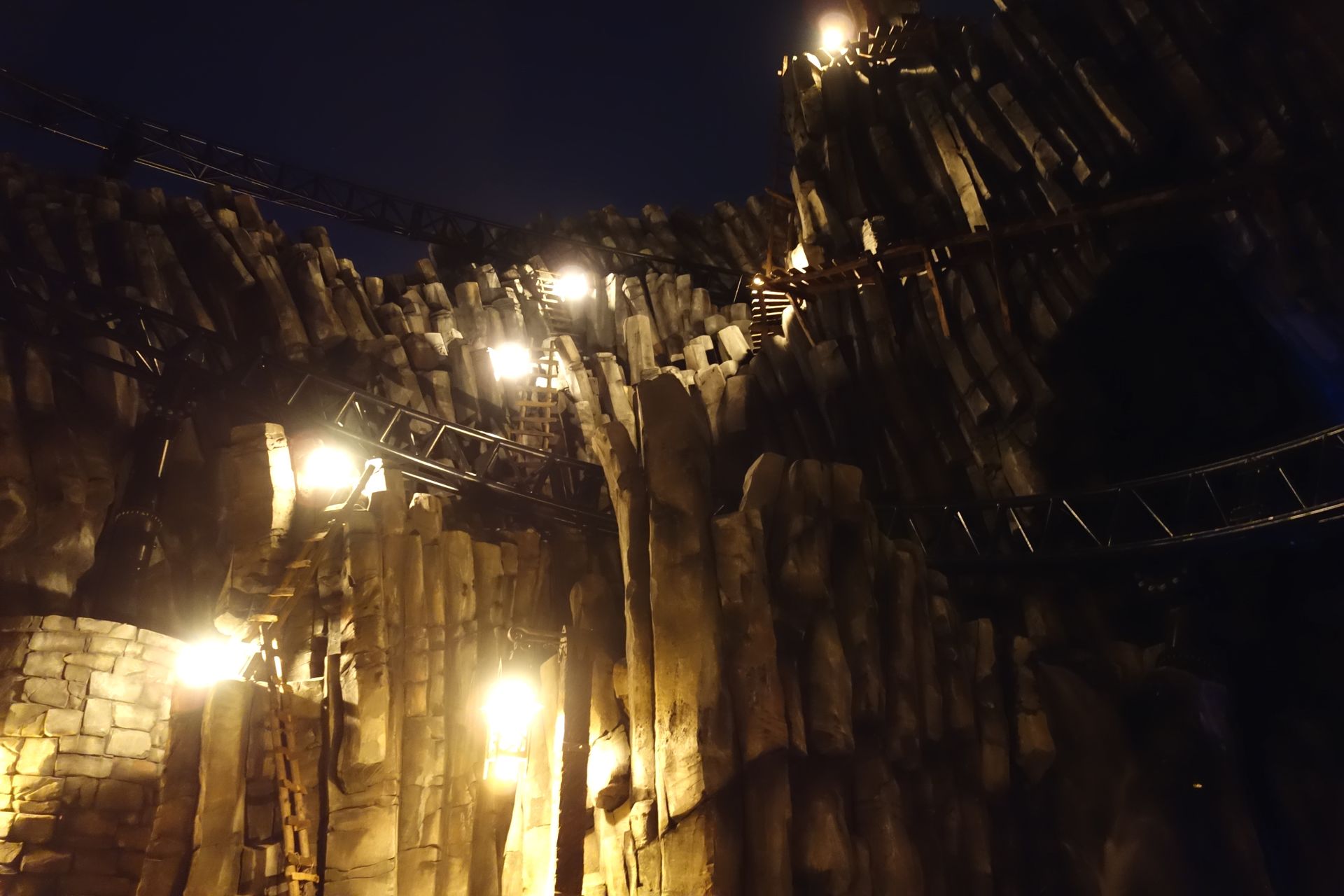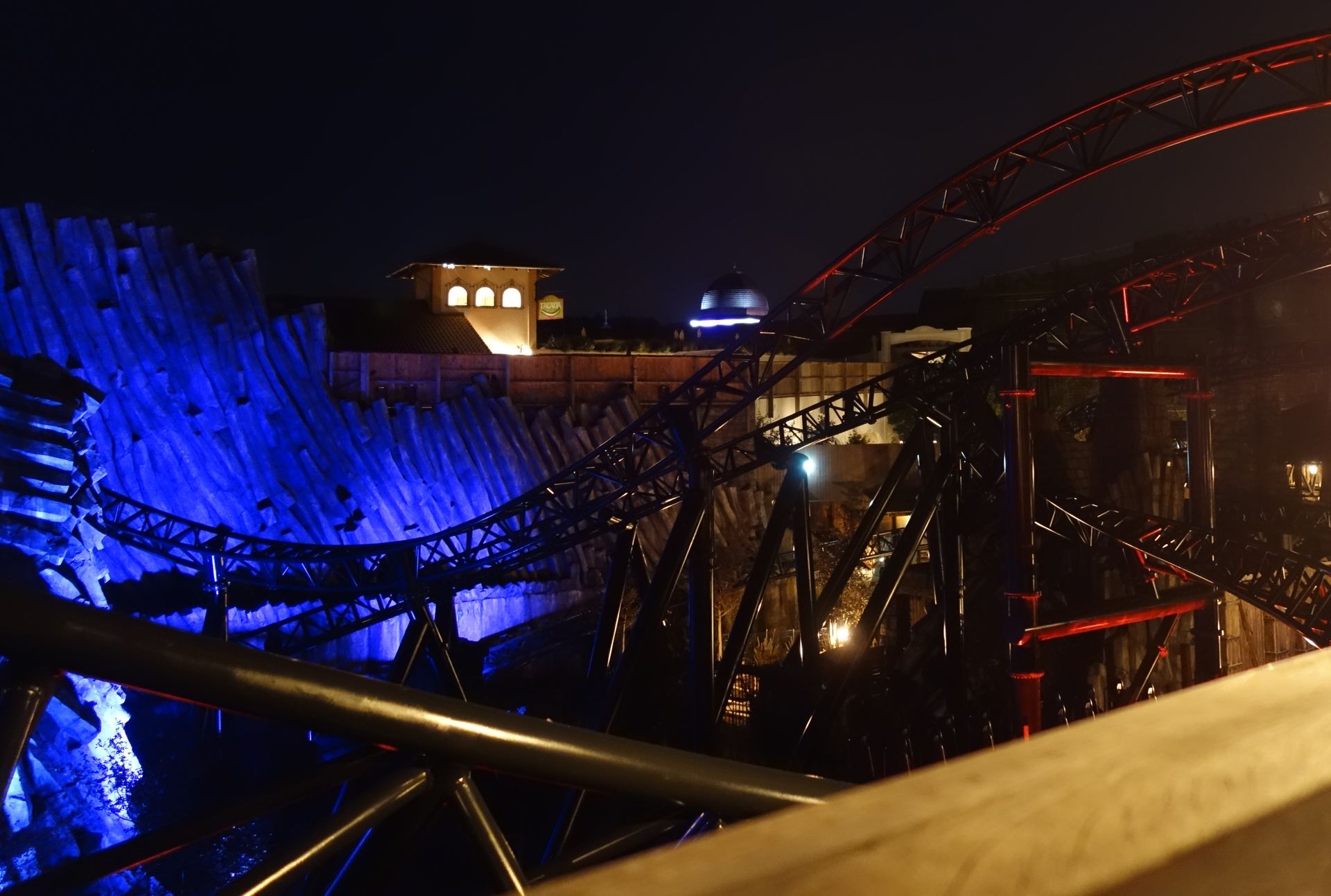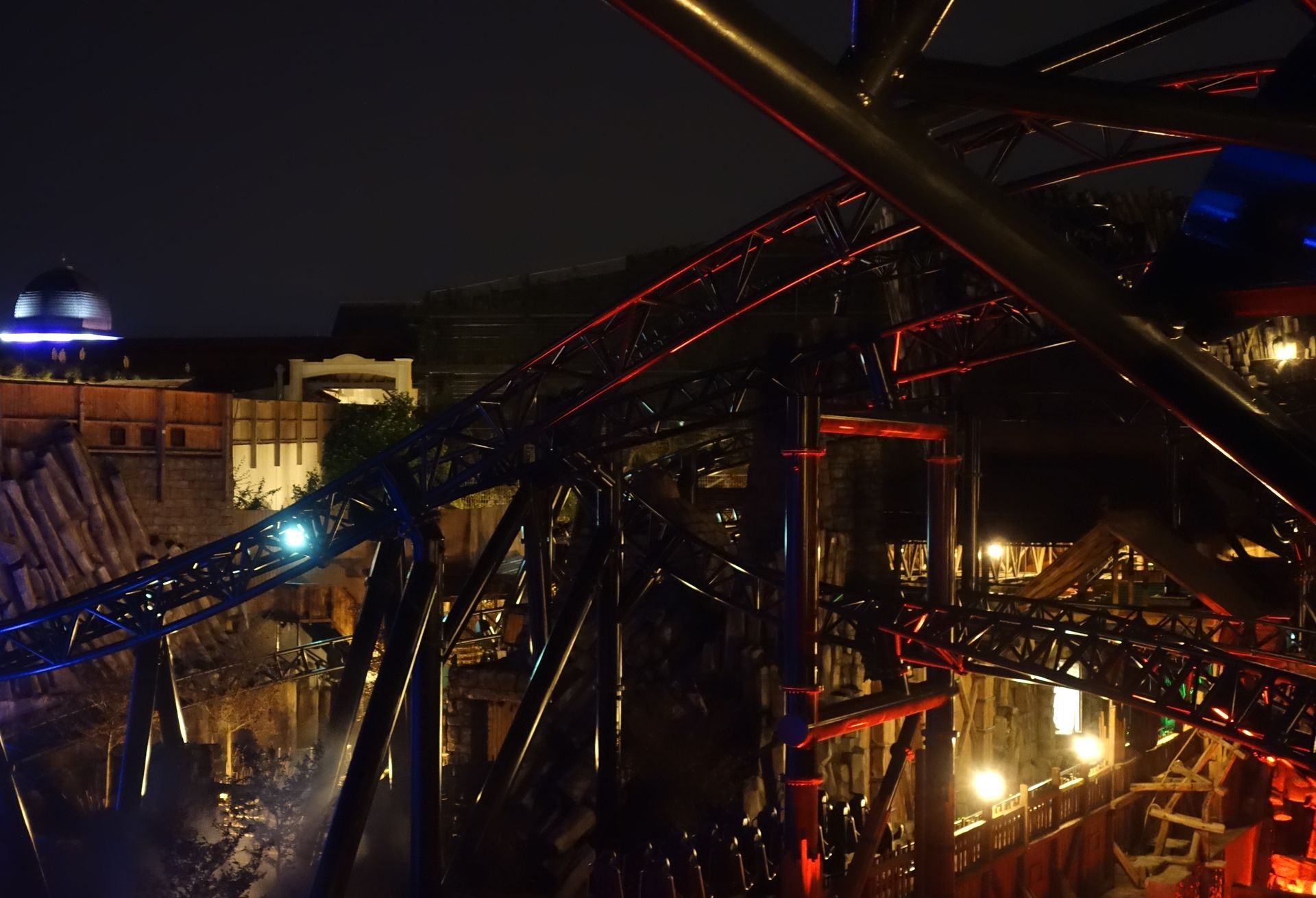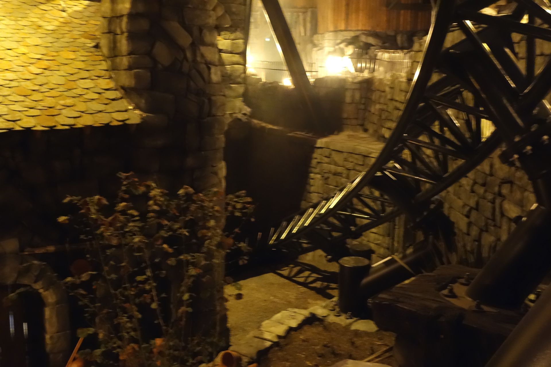 Nachdem man schon leicht überzogen hatte, fuhr der letzte Zug so gegen 23:20 Uhr über die Strecke. Als guter Gastgeber lud uns das Phantasialand aber ein, den Abend noch in geselliger Runde auf dem Dorfplatz ausklingen zu lassen. Meine Mitfahrgelegenheit wollte allerdings alsbald aufbrechen. So machte ich mich noch schnell auf den Weg zur großen Brücke, die ich bis dahin noch gar nicht betreten hatte...