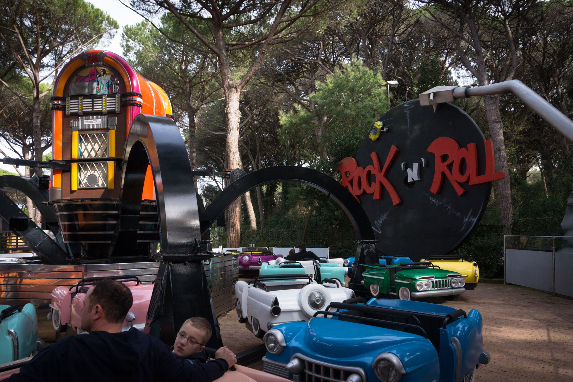 Direkt nebenan befindet sich die Kleinstachterbahn Speedy Gonzales, die uns ebenfalls bereits aus dem Mirabilandia bekannt war; dort jedoch irgendwie größer wirkte. Statt nur einer Runde, durch das Layout einer einfachen Acht, fuhr der Wagenverbund gleich zweimal seinen geführten Weg über die Schiene ab.