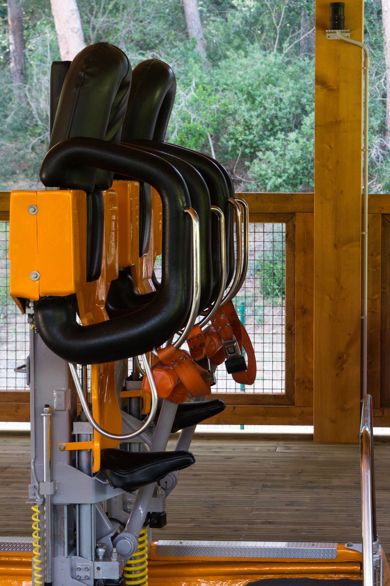 Während bei den meisten Achterbahnen das Erlebnis erst mit dem erklommenen Lifthügel beginnt, stellt sich bereits der Einstieg bei Freestyle als recht abenteuerlich heraus. Zugegebenermaßen habe ich die ganze Prozedur beim ersten Durchgang nicht verstanden, zumal sich die Schulterbügelweste nicht ganz öffnen ließ, dieses verbesserte sich jedoch von Fahrt zu Fahrt stetig. Und eigentlich ist es ja auch ganz simpel, denn man muss ja nur den Nippel durch die Lasche zieh‘n und mit der kleinen Kurbel ganz nach oben dreh’n, da kommt dann so ein Pfeil und dann drückt man halt da drauf und schon geht die Sache auf bzw. zu, Tatsächlich muss man nur den losen Bauchbügel nach vorne drücken, aber wehe die Person rechts von einem macht im selben Moment das gleiche (was blöderweise sehr wahrscheinlich ist), die Schulterbügelweste aufklappen, sich auf den Platz stellen, die Weste schließen und die Höhe des Sitzes anpassen. Erst danach wird der Sitz verriegelt und gegebenenfalls vom Personal nachjustiert. Hierbei muss man das Personal überaus loben, da sie stets flott reagierten und im weiteren Verlauf des Tages sogar einen geistig behinderten und teilweise gelähmten Jungen die Fahrt ermöglichten.