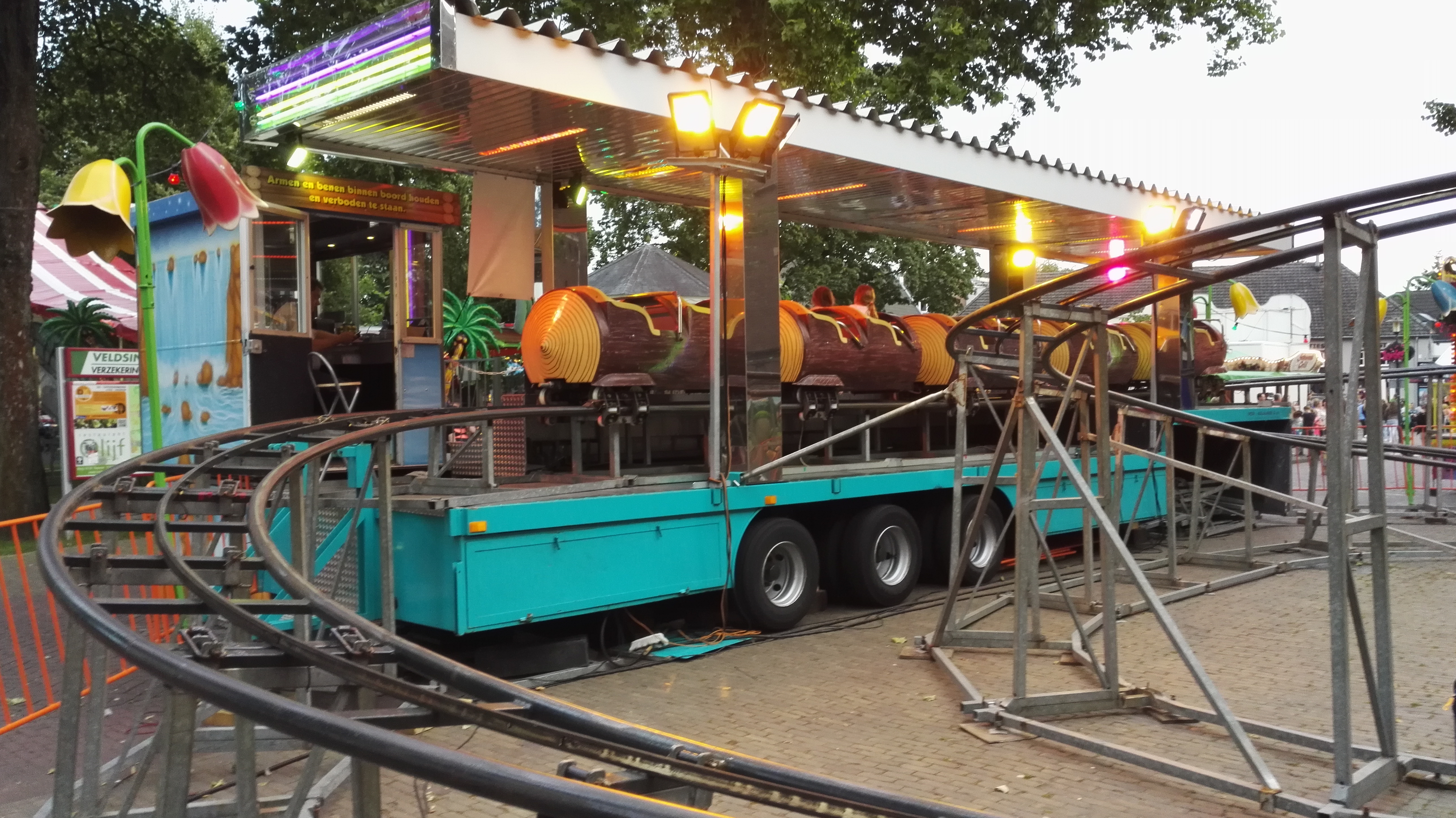 Meine Vorabinfoquelle auf themepark.nl zeigte keine Achterbahn in der Liste der Attraktionen. Aber ich war kalkulatorisch in meinem Hirn: Im letzten Jahr stand Por-Arjaans mit seiner Bahn auf dieser Kirmes. In diesem Jahr ist der Schausteller bis zum 05.07.2016 in der Nachbarstadt Ysselsteyn gestanden. Warum sollte er nicht wie im letzten Jahr dann diesen Platz als Anschluss halten?