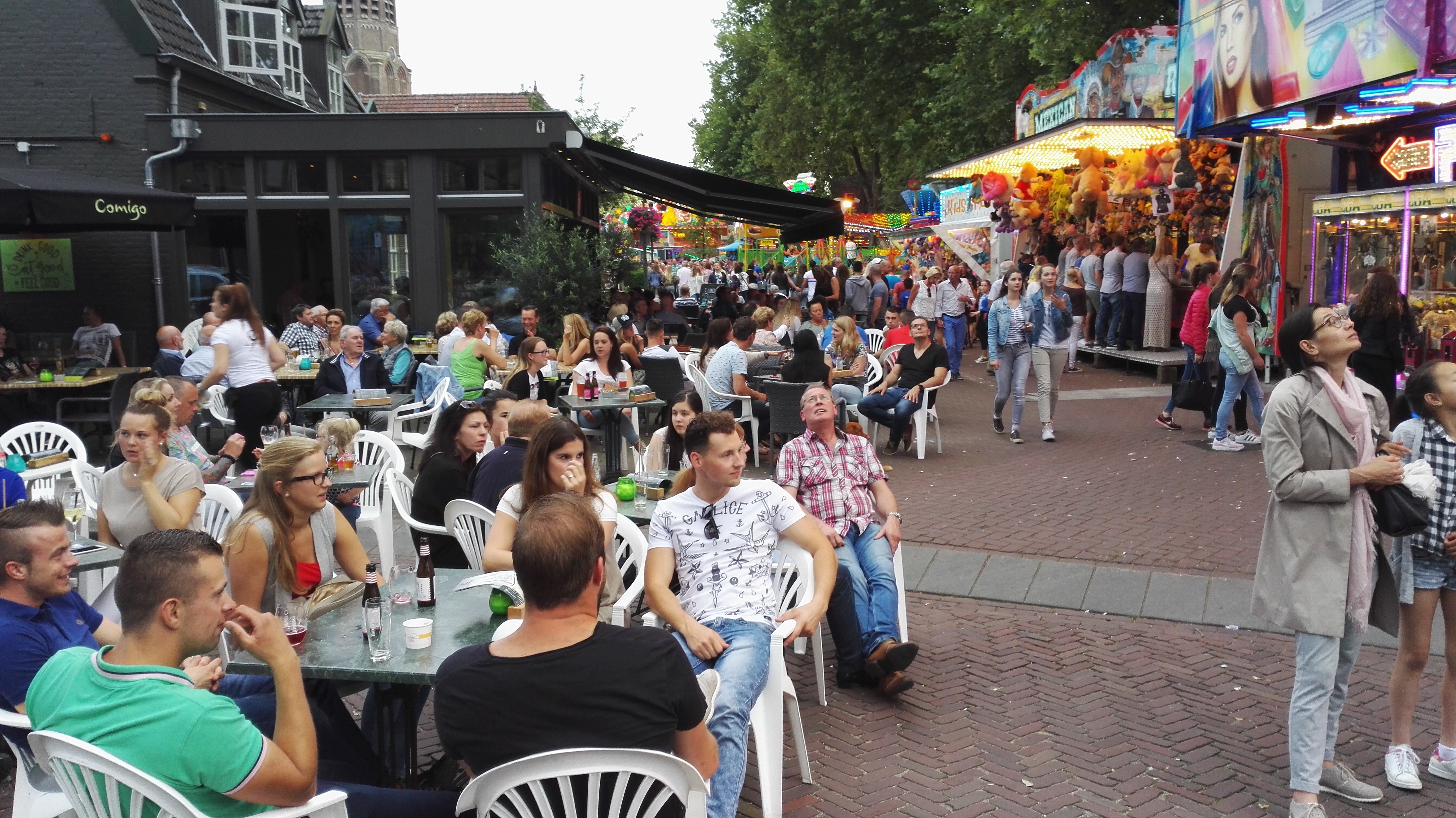 Eine Viertelstunde nachdem wir Helmond verlassen hatten kamen wir im hübschen Städtchen Nuenen an. Auch hier lockte eine Sommerkirmes die Besucher bei schönem Abendwetter auf die Kirmes. Die findet man schön in einer Parkanlage, die die Mitte des Centrums ausmacht. Den Park säumen einige Ausflugslokale, so dass Nuenen in meinen Augen die schönste Atmosphäre der Reise versprühte.