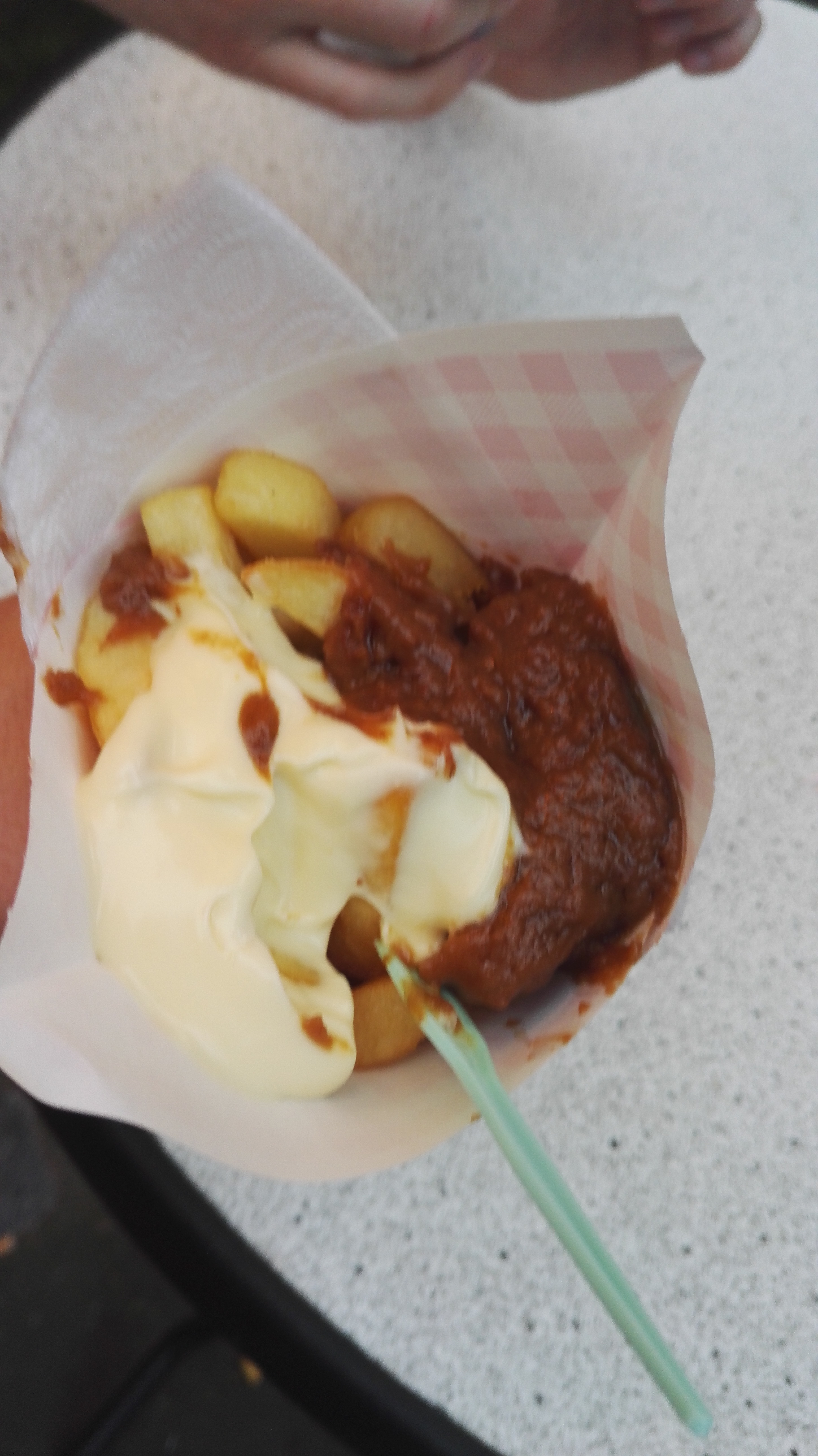 Neben der Platzrunde gab es noch für Volker gedrehte Kartoffelchips und für mich die obligatorische Pommes mit Pindasaus.