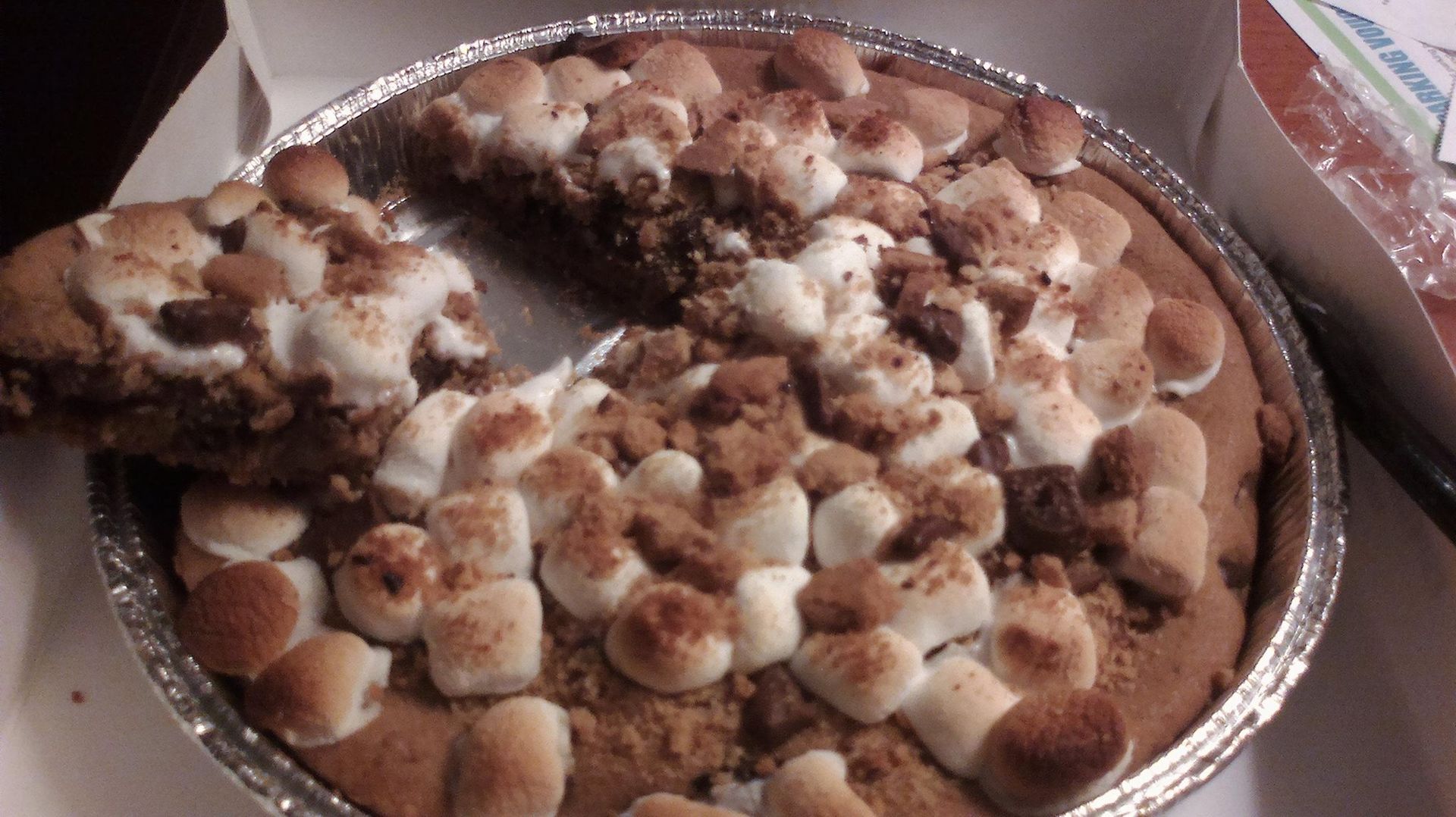 Dabei muss man sich eine Art Soft-Cookie-Wähe mit angeschmolzenen Schokostückchen im Teig vorstellen, die mit Hershey-Nutella und angesengten Marshmallow-Bömbeli bedeckt ist und ofenfrisch warm serviert wird. Das Ergebnis ist ein unfassbar zartflaumiges, zuckersüsses und geradezu beängstigend geiles Geschmackserlebnis!