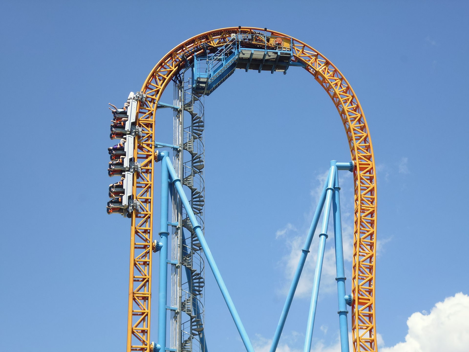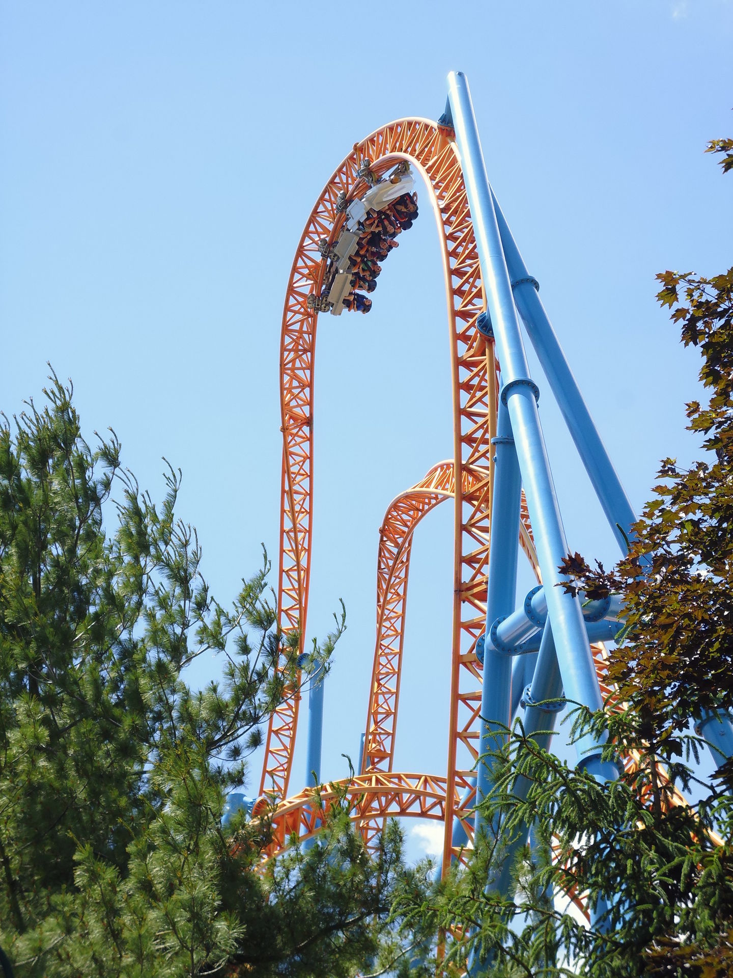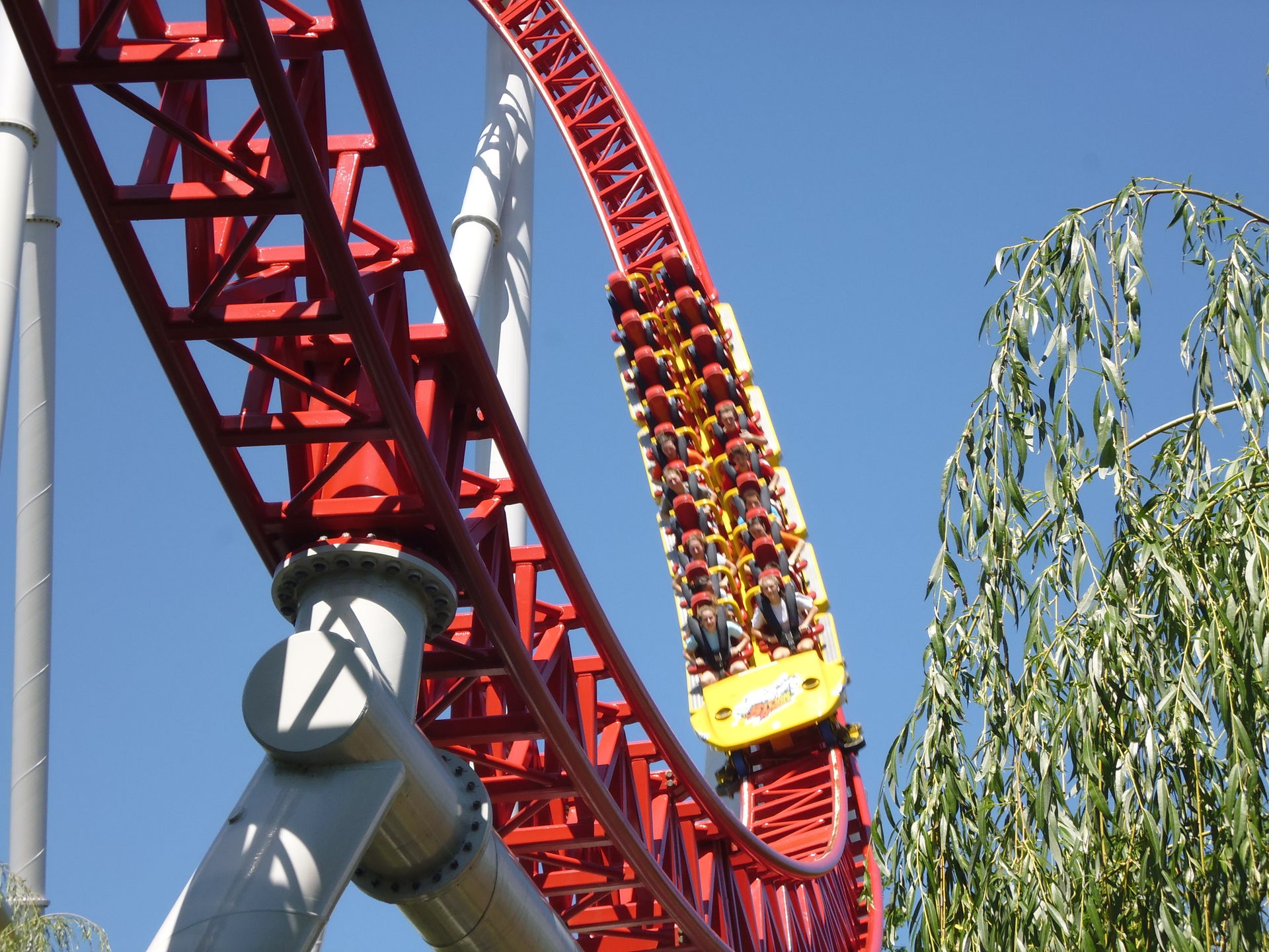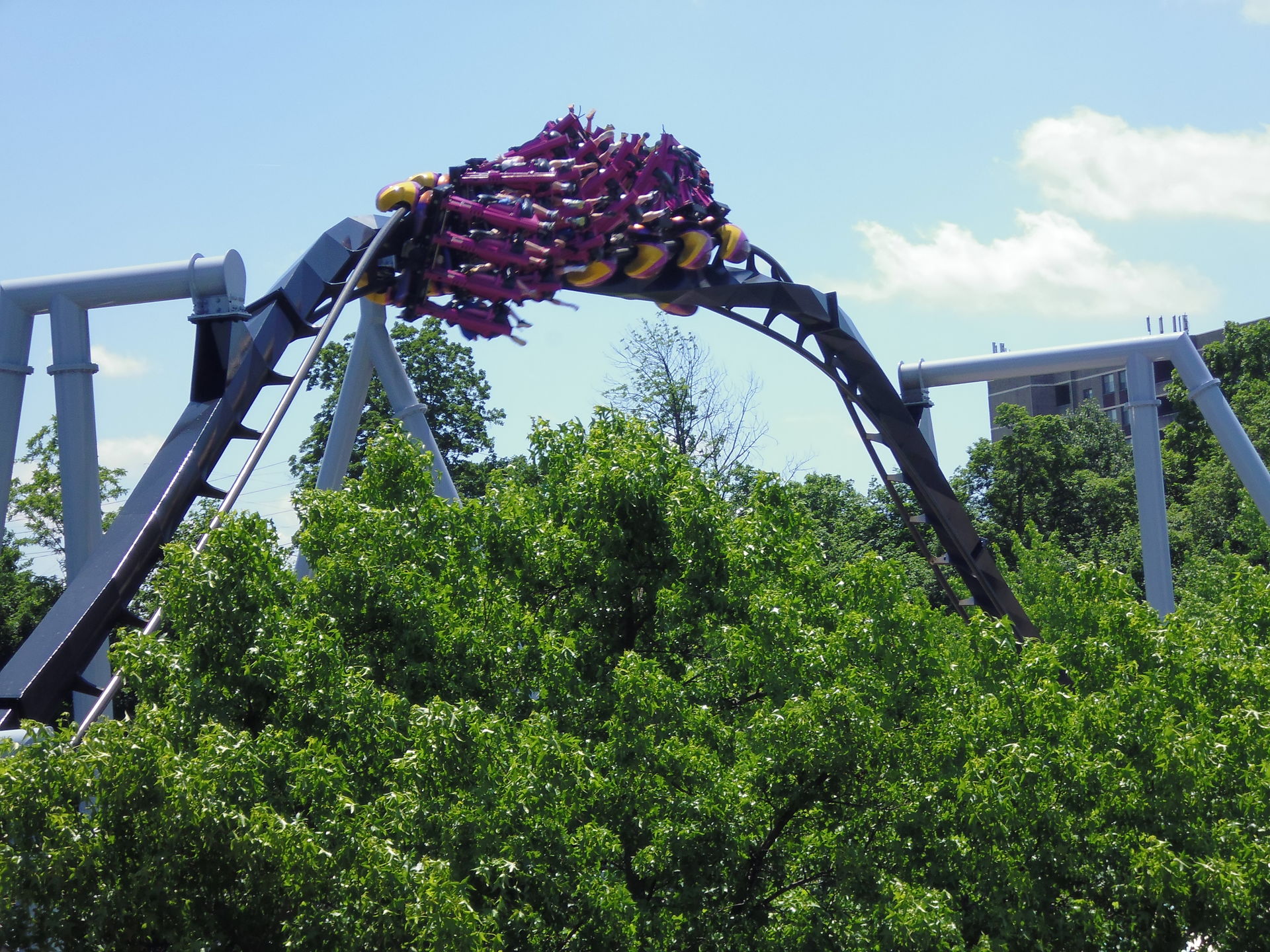 Heartline Roll, die mit grandiosem Endlos-Linkspush aufwartet, daraufhin folgt gleich noch eine halbe solche, die dann direkt in einen sich um 90° drehenden und reichlich abfallenden Senkrecht-Halblooping mündet. Oder streng nach RCDB ausgedrückt: ein Flying Snake Dive wird absolviert. Alles klar?