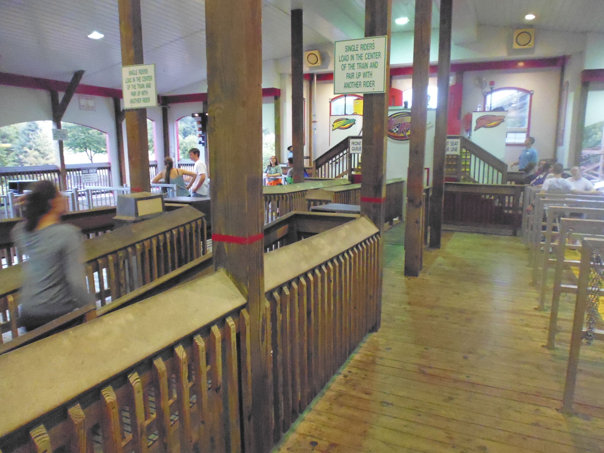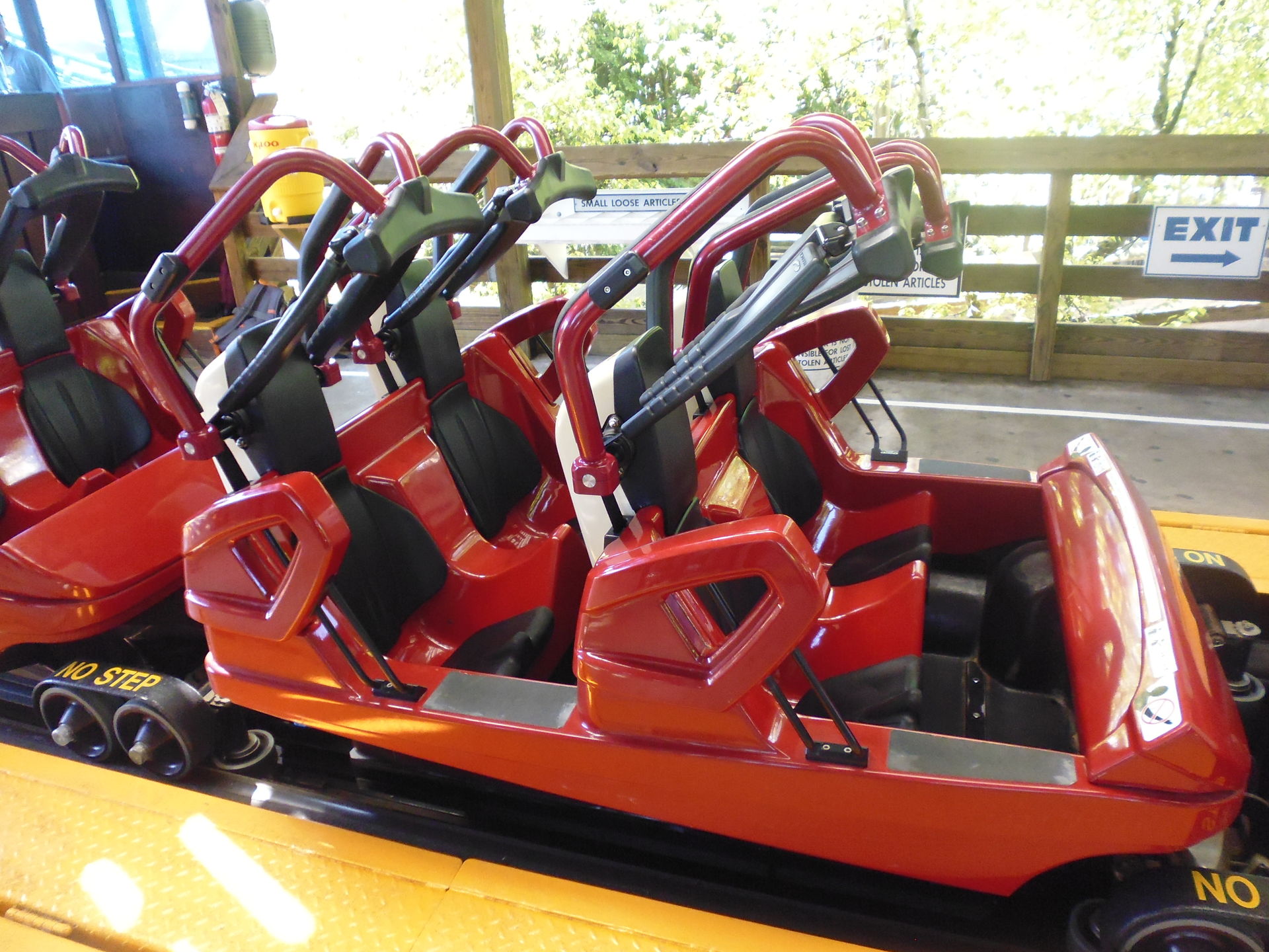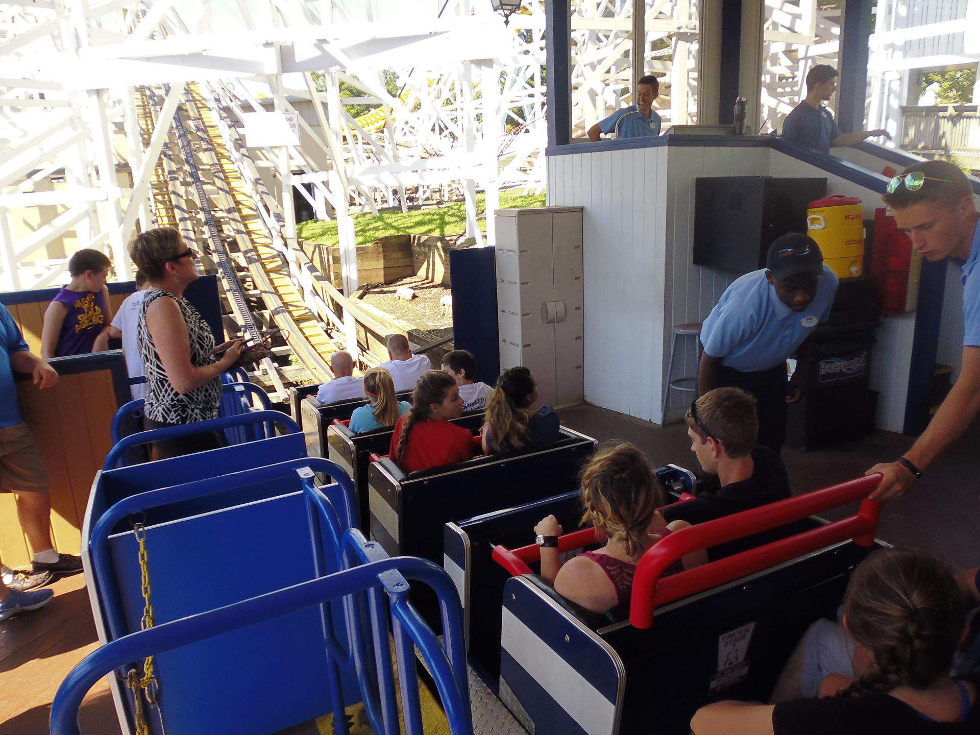 Hier herrschte zum Glück ebenfalls noch Walk-on, so dass ich sofort etwas weiter hinten im Zug Platz nehmen und mich mit den inzwischen auch hier vorhandenen Westenbügeln à la Carolina Cobra sichern konnte.