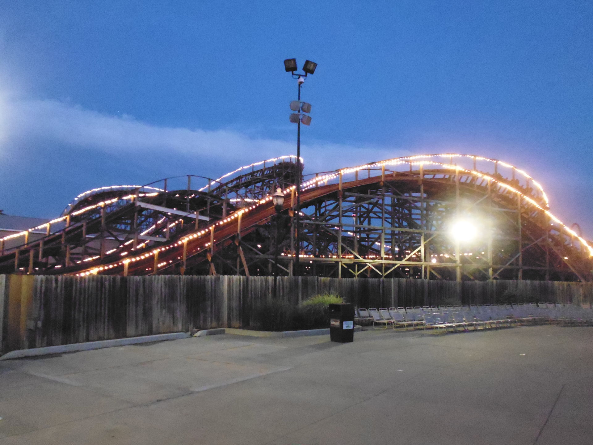 Weiter nun zu einem der absoluten Höhepunkte des Abends: zur Dueling-Holzachterbahn Lightning Racer!