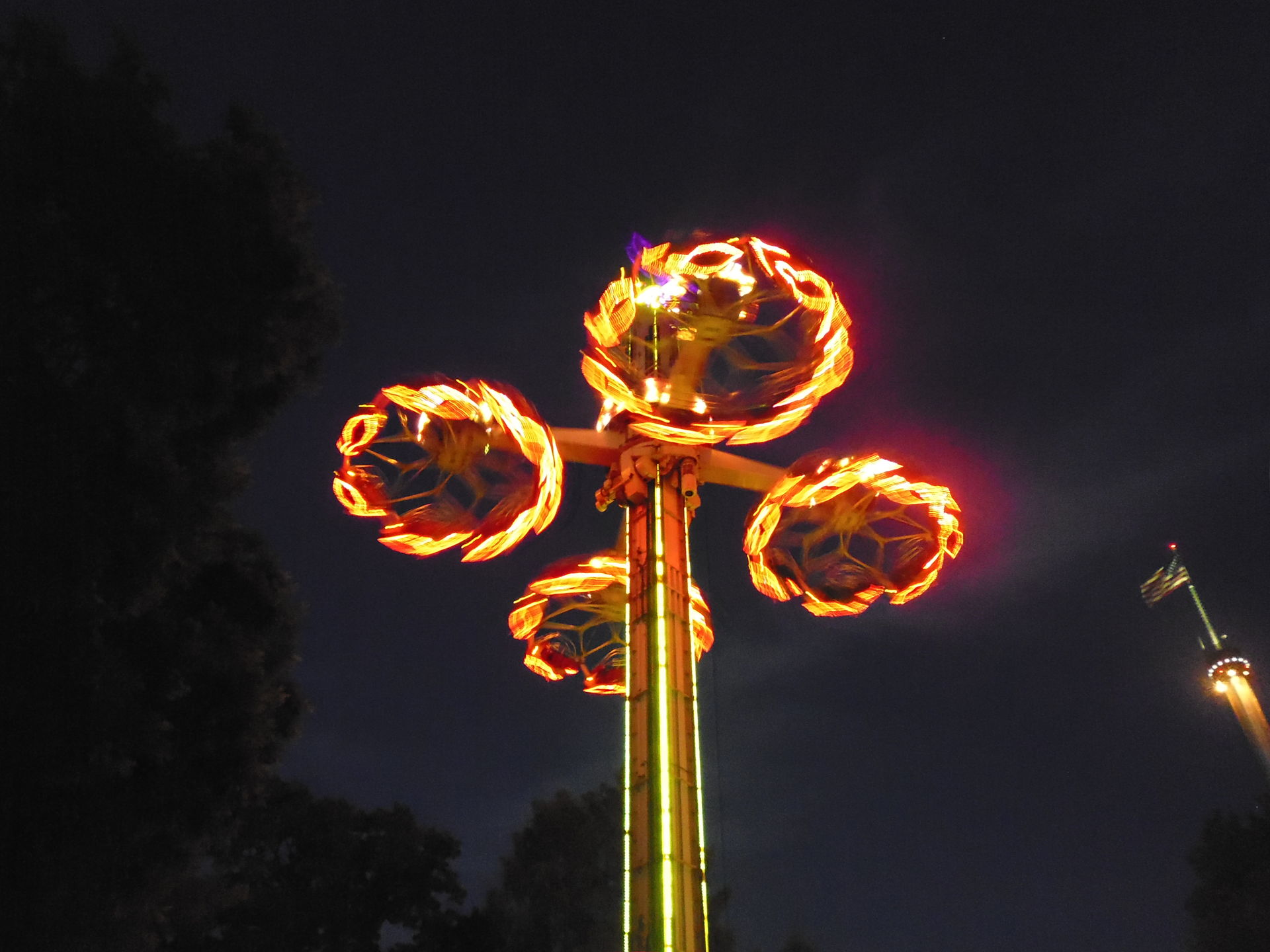 Der Ausblick aus etwa 76 Metern Höhe auf den wirklich unglaublich schön beleuchteten Park ist echt ein Erlebnis für sich. Aber auch eins, das eine Billigknipse mit keinem Modus richtig festhalten kann - obenan daher das einzige halbwegs brauchbar rausgekommene Foto.