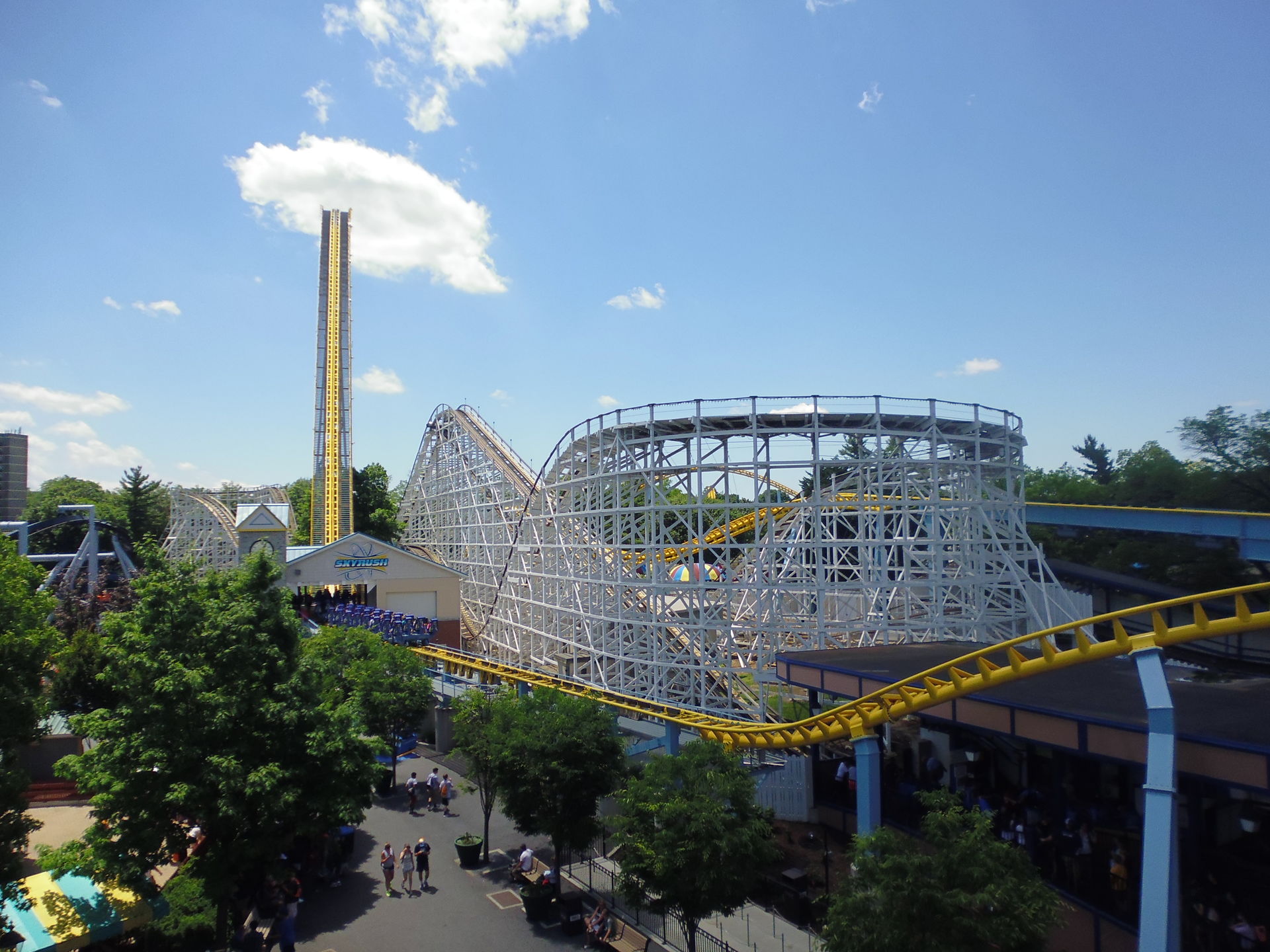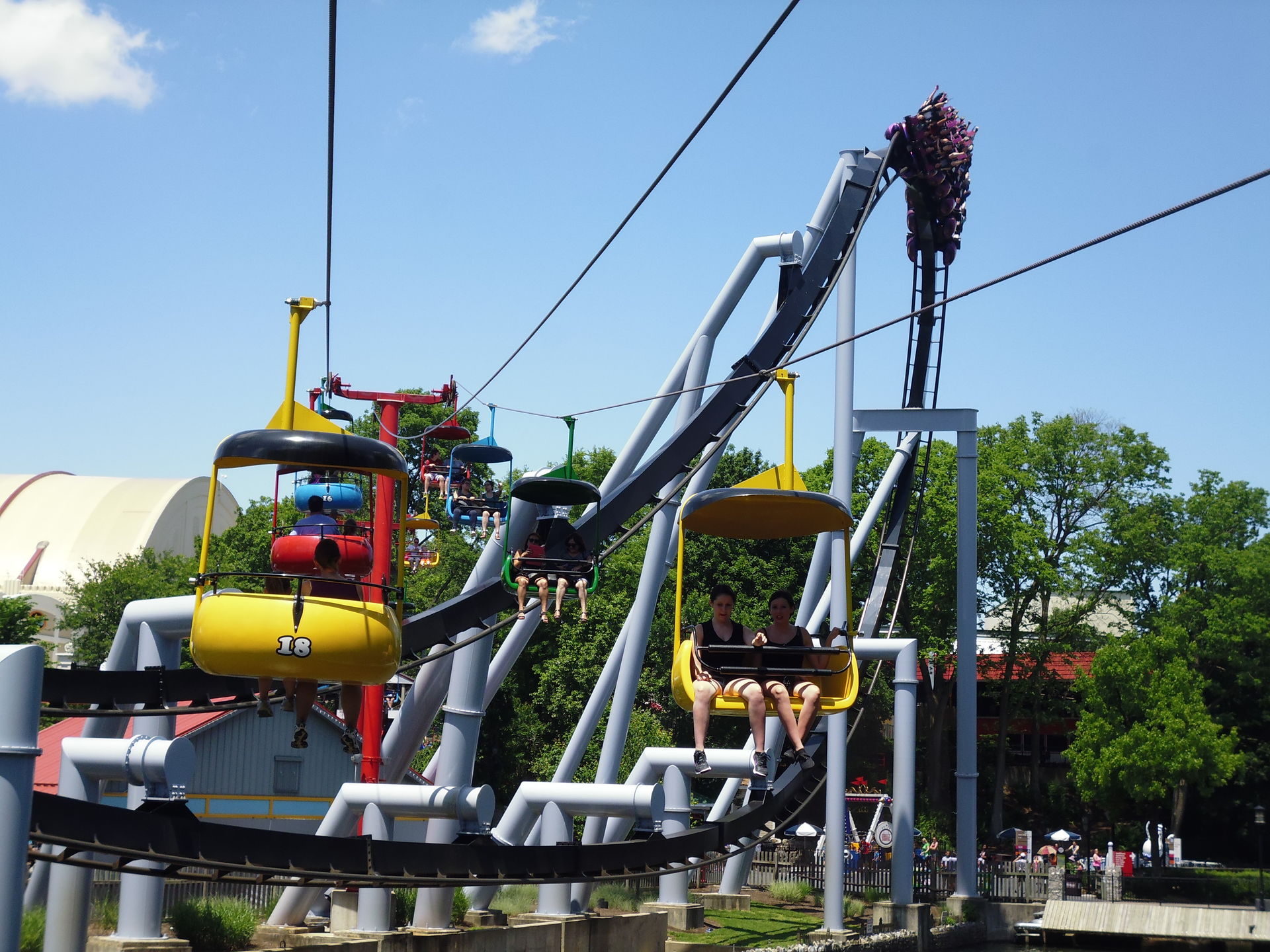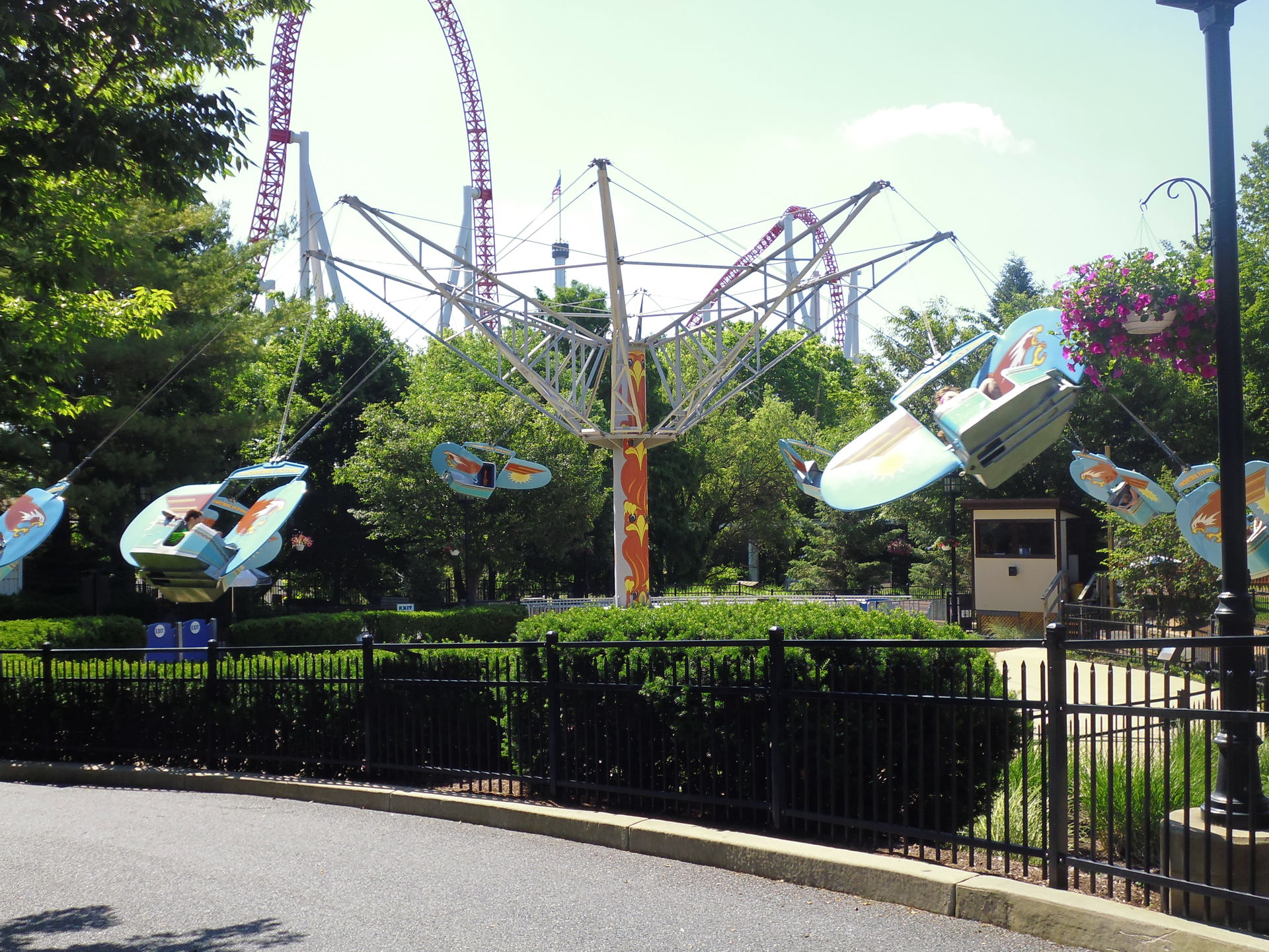 An diesem Punkt waren die vier seit gestern noch fehlenden Bahnen nun also abgehakt, so dass durchs Band eigentlich bloss noch Wiederholungsfahrten und Krimskrams auf dem Plan standen. Zunächst noch einmal der Kissing Tower, wo die meisten der im Bericht verwendeten Panoramafotos herstammen. Danach noch Sooperdooperlooper, der Sessellift, Lightning Racer, Wildcat (beide wie erwähnt nun wesentlich