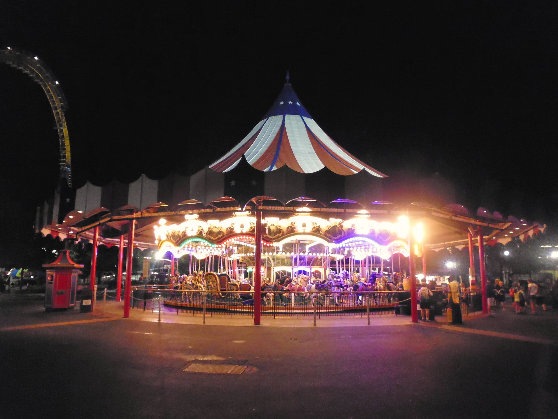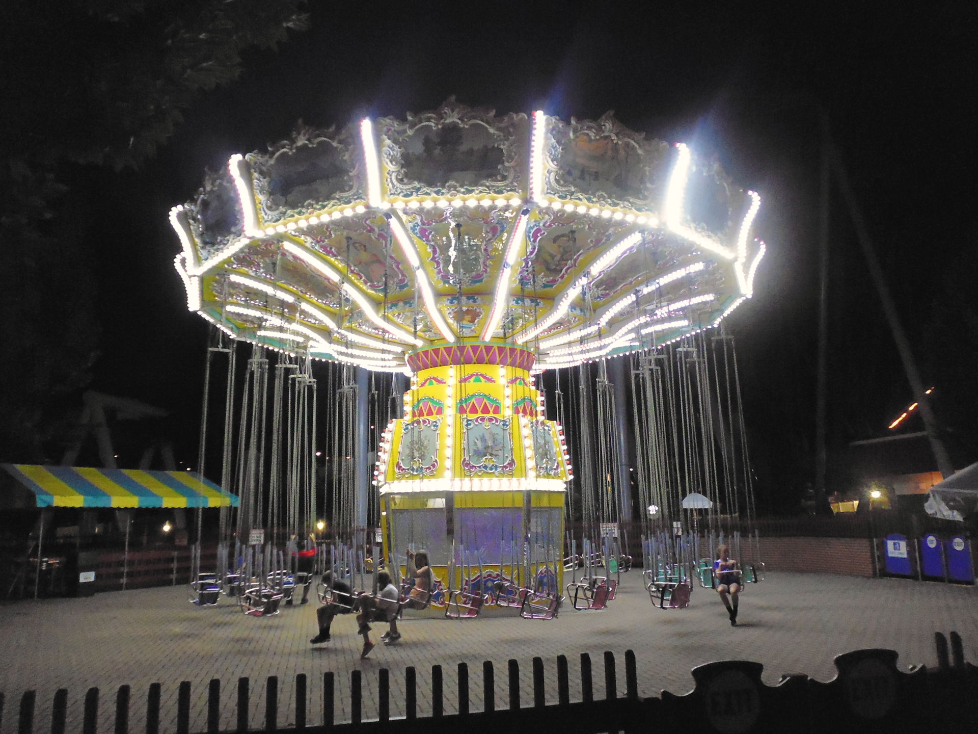 Trotz des Verlaufens hab ich diese Etappe in allerschönster Erinnerung. Durch die spärliche Beleuchtung hat man den gewaltigen Sternenhimmel so wunderbar gesehen - mit all den immer noch auf Hochtouren laufenden Bahnen ein ganz besonders schöner Ferieneindruck. Und das muss man dem Park wirklich zugute halten: jede Kinderschleife, jeder Sessellift, jedes Karussell, jede Minischaukel, jede Achterbahn, die Wildwasserbahn und auch jede Fressbude hier unten hatte Kundschaft und lief auf voller Suppe, obwohl ja nur noch ein paar ganz vereinzelte Verrückte durch den Park schwadronierten. Ich glaub, das wäre in unseren Breitengraden ziemlich undenkbar gewesen.