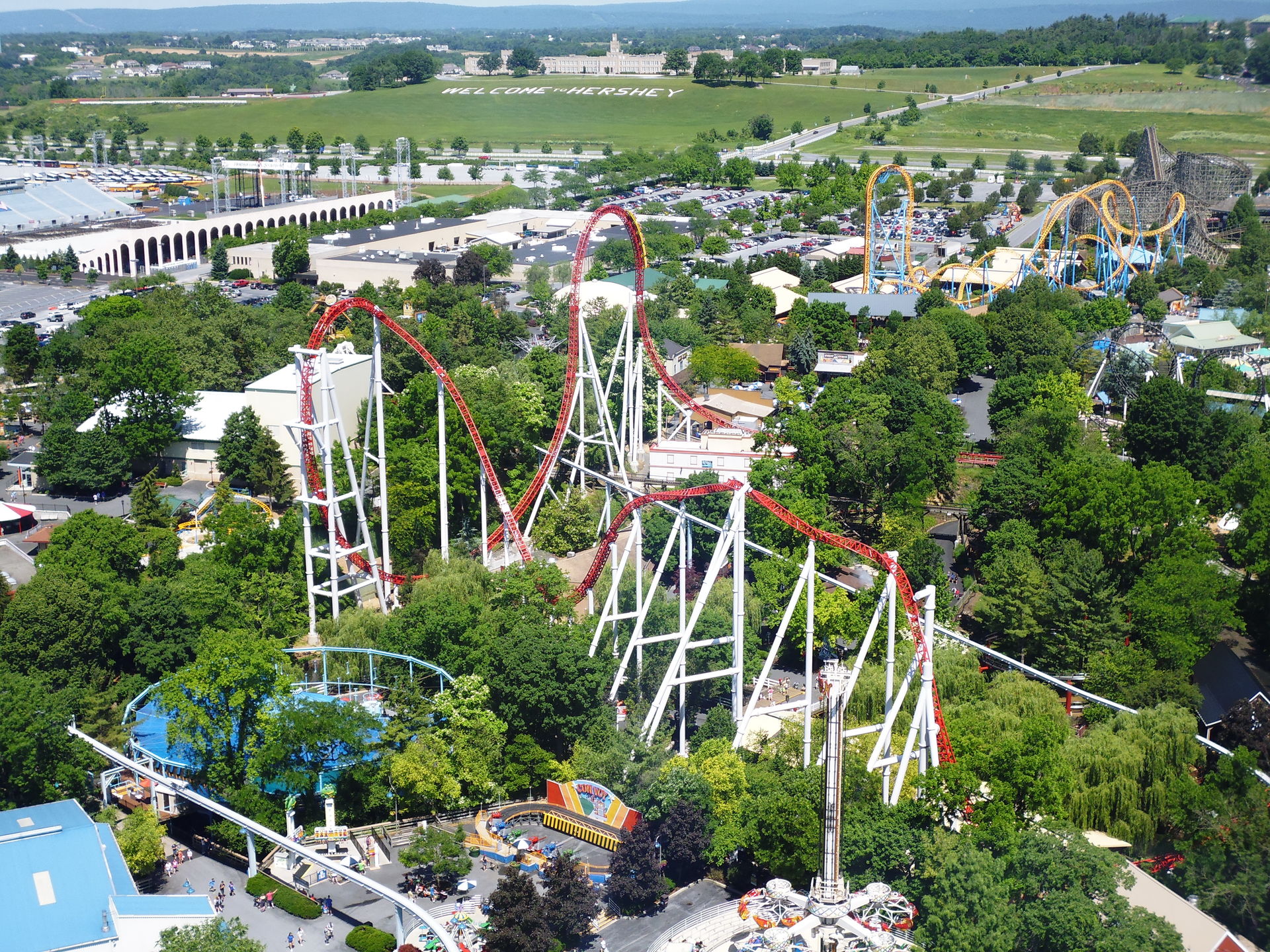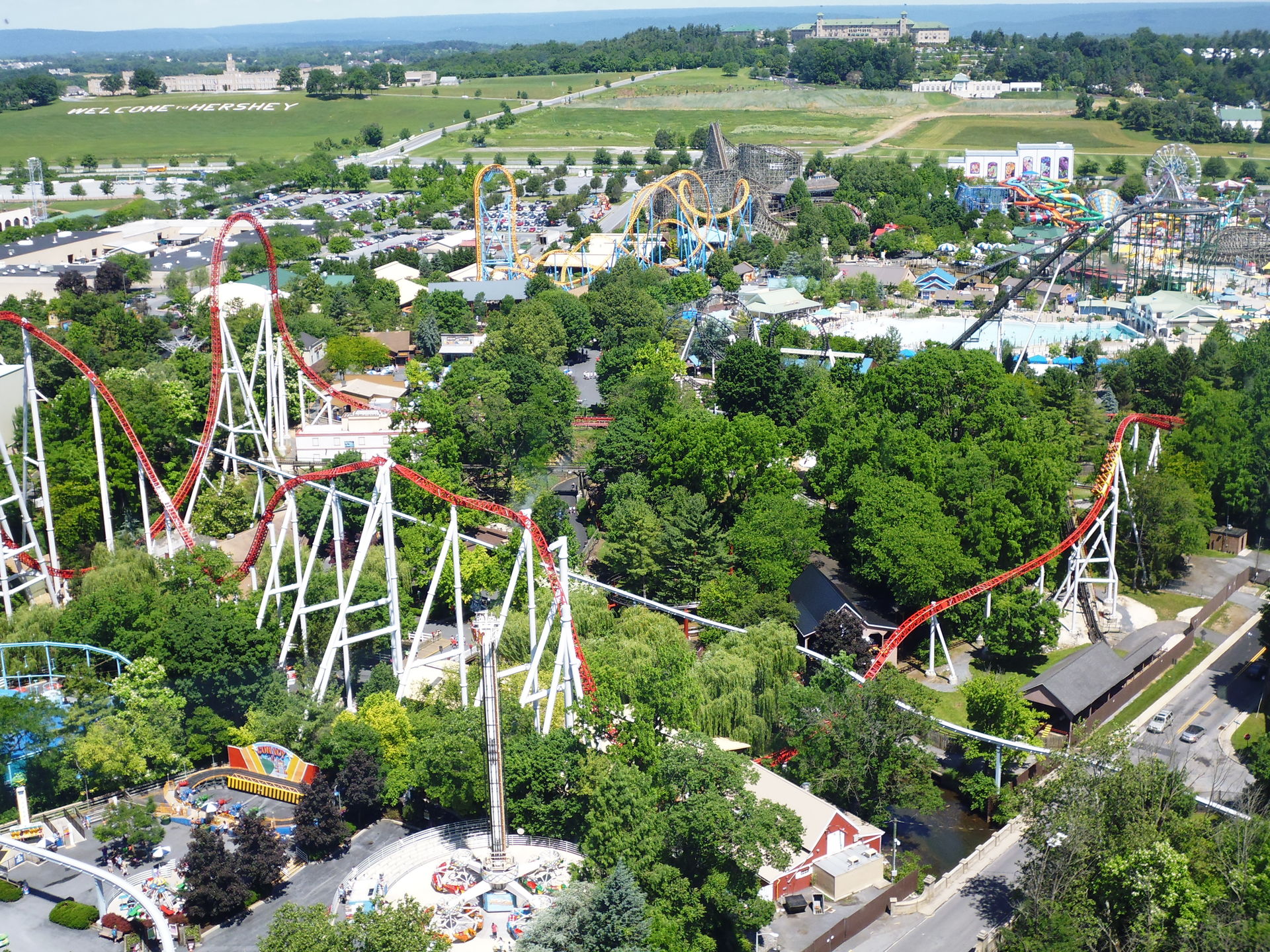 Dorney Park brachte mich der treue Ford ins nur gut eine Stunde entfernte Hershey, Heimat der gleichnamigen Schokolade und auch illustrer Standort von mundwässrig machenden Leckerlis für die Coasterfans im an die Fabriken grenzenden Hersheypark! Schon für die 2010er-Tour wäre dieser Park eigentlich fest vorgesehen gewesen, aber schliesslich scheiterte ein Besuch dann leider doch. Wenn man sich aber vor Augen hält, was der Park gerade in der Zeitspanne von dann bis heute so alles an genialen Neuheiten ergänzt hat, könnte man eigentlich auch zum Schluss kommen, dass es gut ist, so lange gewartet zu haben und nun alles auf einen Schwall einsaugen und erleben zu dürfen.