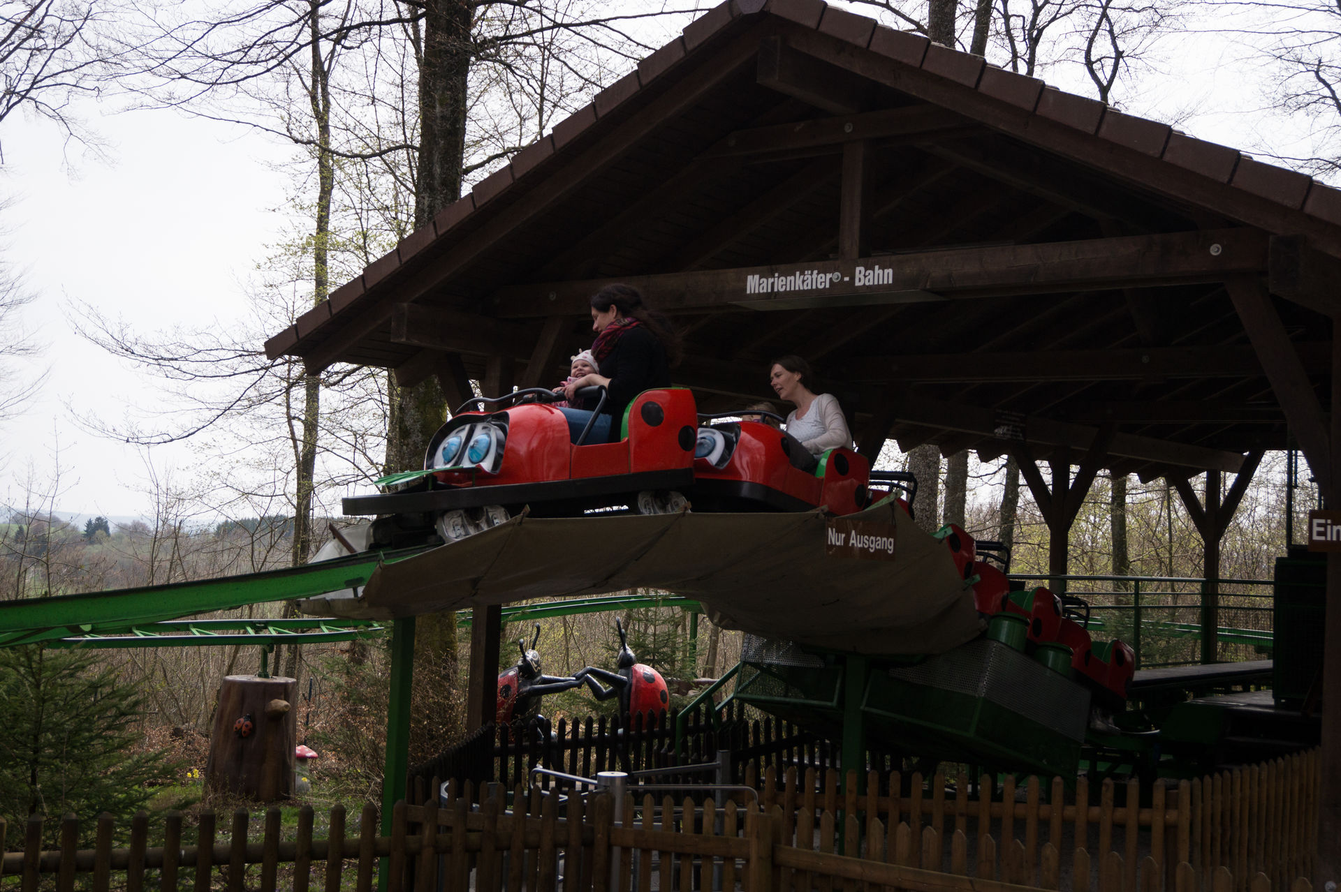 In der hintersten Ecke des Parks befindet sich mit der Marienkäferbahn eine Achterbahn aus dem Hause