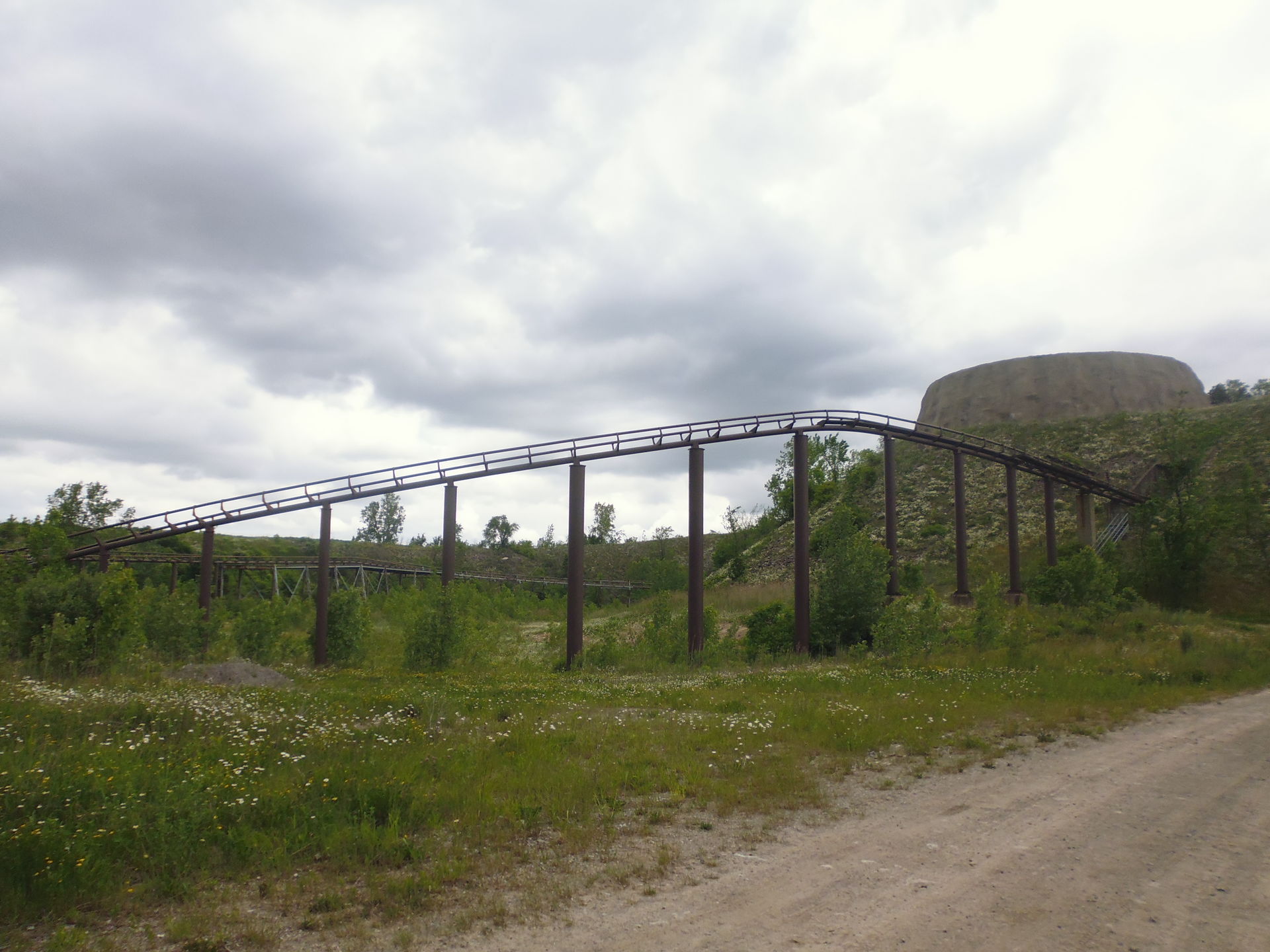 Irgendwann wollte der Restpark halt doch auch noch erkundet sein, also erklomm ich per spiralförmigen Schneckenweg noch den anderen grossen Berg des Parks, der sich 46 Meter über Grundterrain erhebt und auf seiner Spitze die 91 Meter hohe