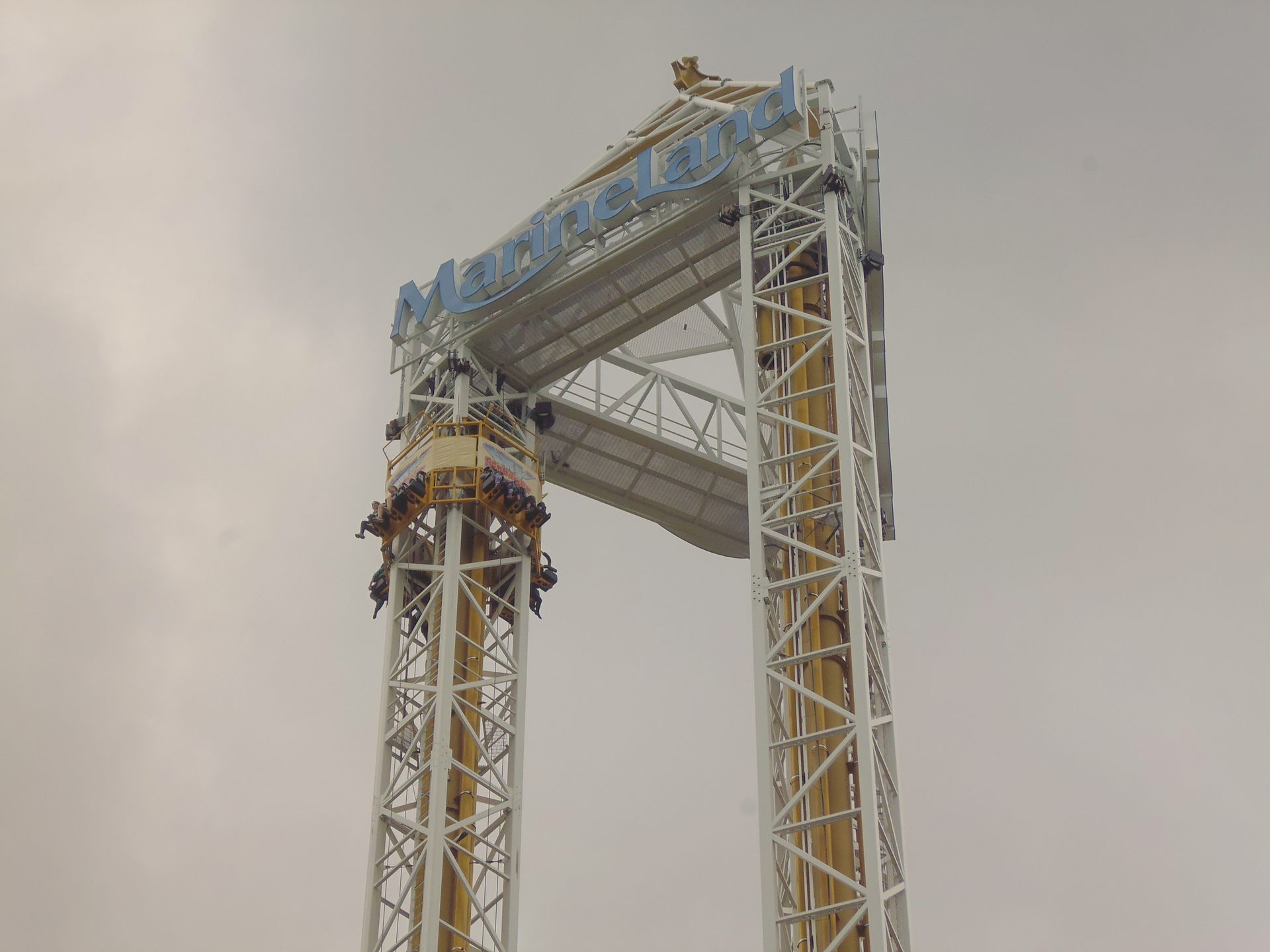 Der Turm lief im Kombobetrieb: zuerst wurde man aus der Station hinaus bis ganz nach oben katapultiert und nach dem üblichen Auspendeln noch einmal bis ganz nach oben gezogen, um von dort schliesslich abwärts geschossen zu werden. Und glaubt mir: bei