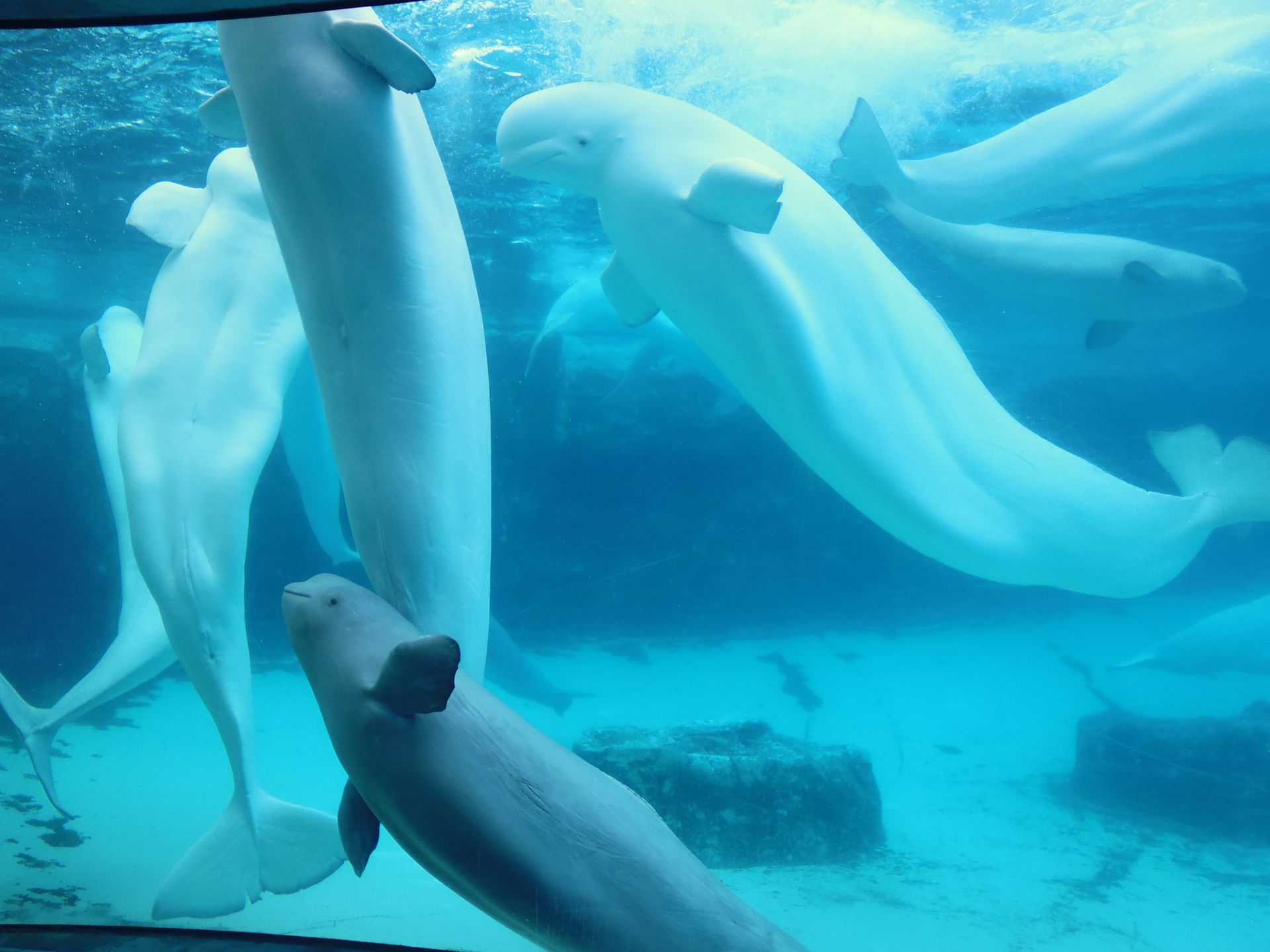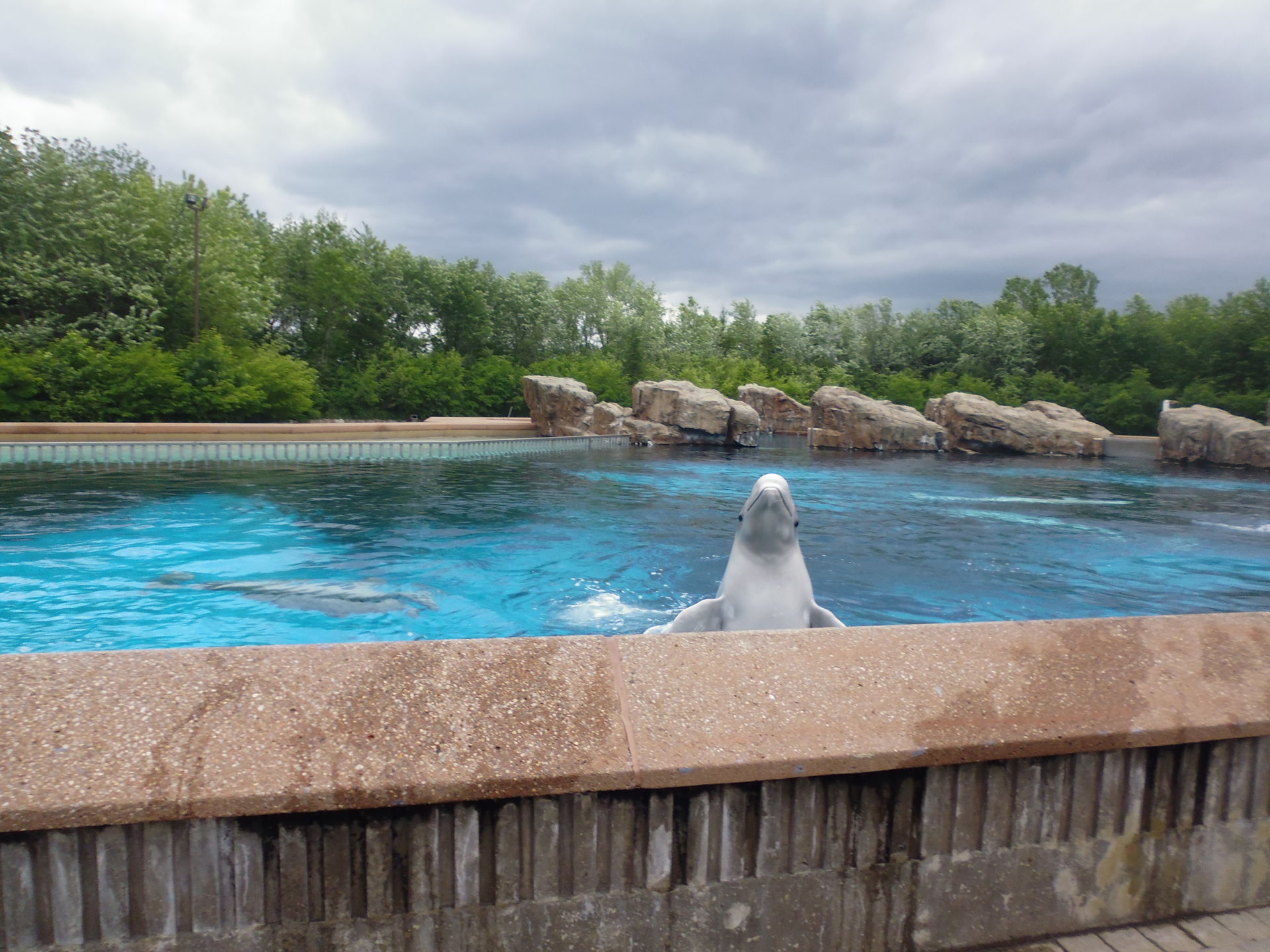 Und dann wären da ja noch die Meerestierbecken des Parks. Das hier ist die zweigeteilte Friendship Cove, die in der einen Hälfte Belugawale und in der anderen einen Orca beherbergt.