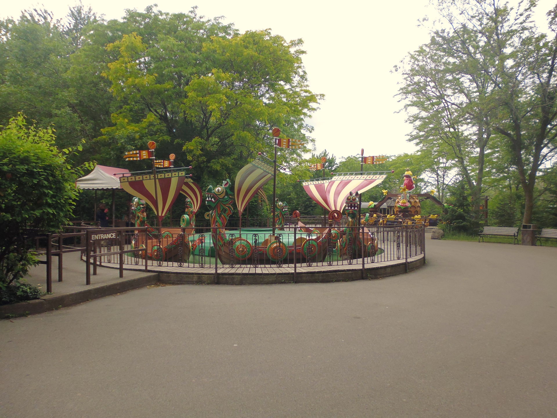 Bei diesem Park war bereits im Vornherein klar, dass es über den einzigartigen Arrow Terrain-Looper Dragon Mountain hinaus nicht wirklich viel an sonstigem zu holen gibt, da das Attraktionsangebot insgesamt gesehen doch recht begrenzt und auch der namensgebende Meerestierteil wohl ziemlich vernachlässigbar ist. Das war sogar dermassen klar, dass ich mir ausgerechnet habe, den Park frühestens um 13.30 Uhr verlassen zu dürfen, da ich sonst zu früh bei meinem nächsten vorreservierten Hotel in Brampton bei Toronto ankommen würde - und die dreieinhalb Stunden ab Parköffnung würde ich beim besten Willen nicht vollkriegen hier. So eine zeitliche Überlegung dürfte auch nach fünf Coastertouren durchs Amiland eine bizarre Premiere gewesen sein.
