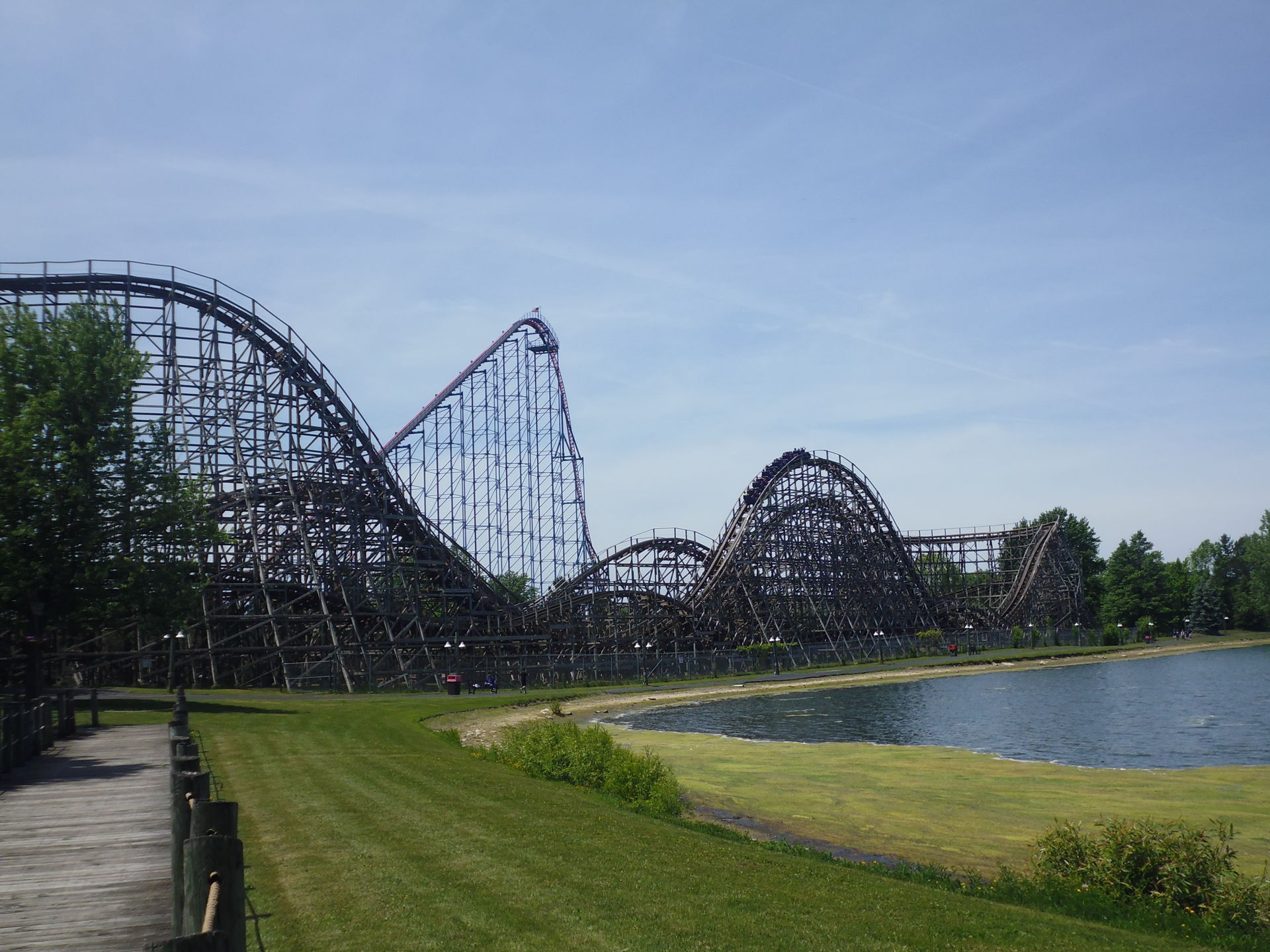 Darien Lake war wie zu erwarten ein absolutes Lowlight der Tour, was wirklich schade ist, denn gerade mit Ride of Steel, Viper und dem Moto Coaster finden sich hier ein paar durchaus leckere Bahnen, welche die Coasterfreaks mit einem Hang zum Seltenen oder Kuriosen sicher nicht gänzlich kalt lassen. Auch die schöne Lage zwischen mehreren Seen, die abschnittweise nette Gestaltung und die nicht zu verachtende Auswahl an Flatrides lassen das Potential erahnen, das in diesem Park mal gesteckt haben dürfte, gerade in Kombination mit dem Wasserpark. Aber der ubiquitäre Einzugbetrieb und das für mich eben umständliche und klammheimlich erfolgte Ändern der Vorsaisons-Öffnungszeiten sind nunmal leider genau auf das Gegenteil meiner Ansprüche an einen Freizeitpark zugeschnitten. Insofern wird mich Darien Lake allerhöchstens wiedersehen, wenn der Predator doch einmal noch zum Lake Monster umgebaut werden sollte - aber auch nur, wenn ich wieder vergünstigte Tickets hätte und den Besuch sonstwie kombinieren könnte.