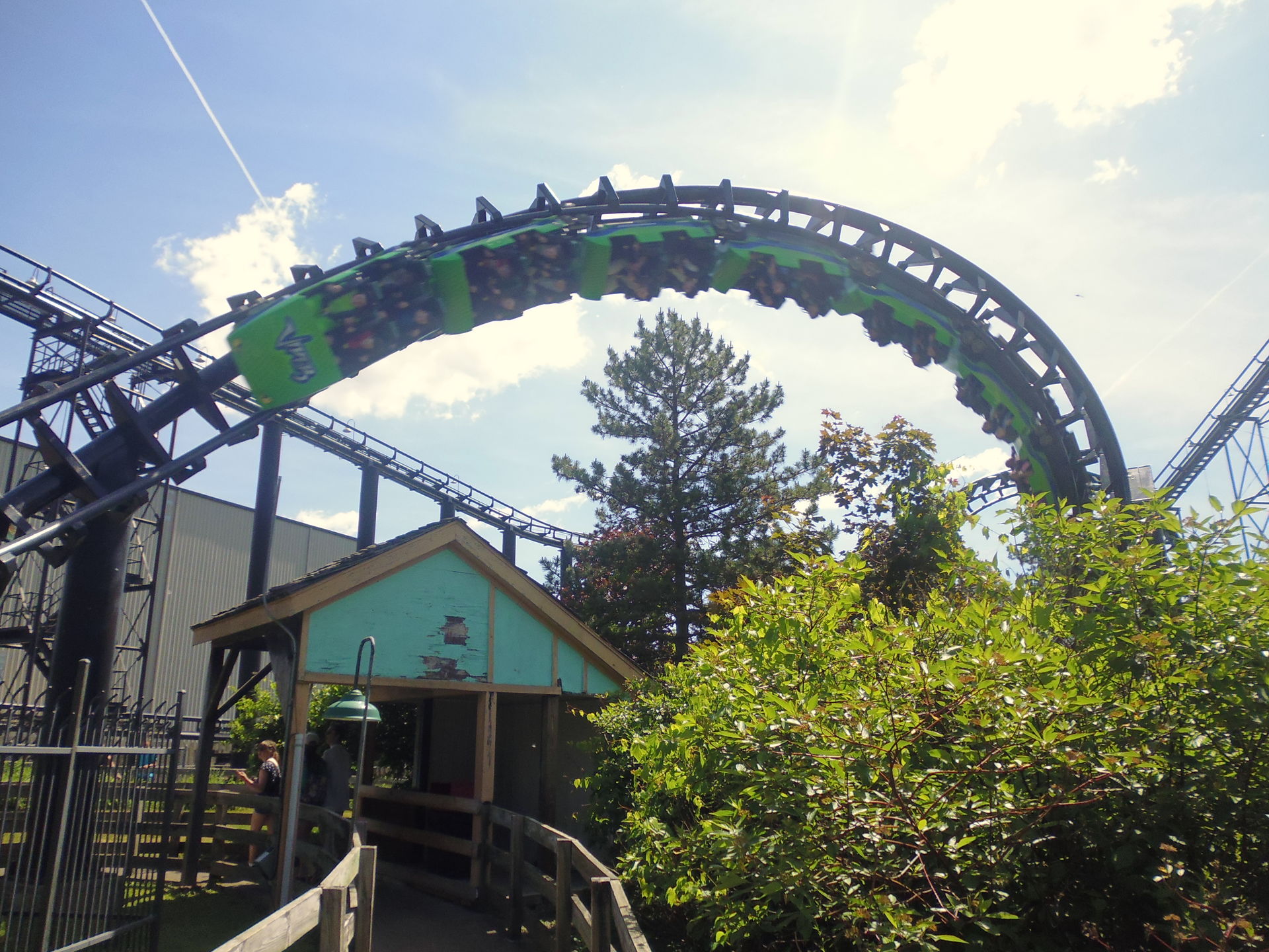 Batwing ist auch so etwas ruckartig und rappelig, aber das gleicht die mich total überrascht habende finale Spirale wieder aus. Schade, dass so eine tolle Anlage mit so einer Abfertigung gestraft wird, gerade hier hätte ich gern noch ein paar vergleichende Zusatzrunden gedreht.