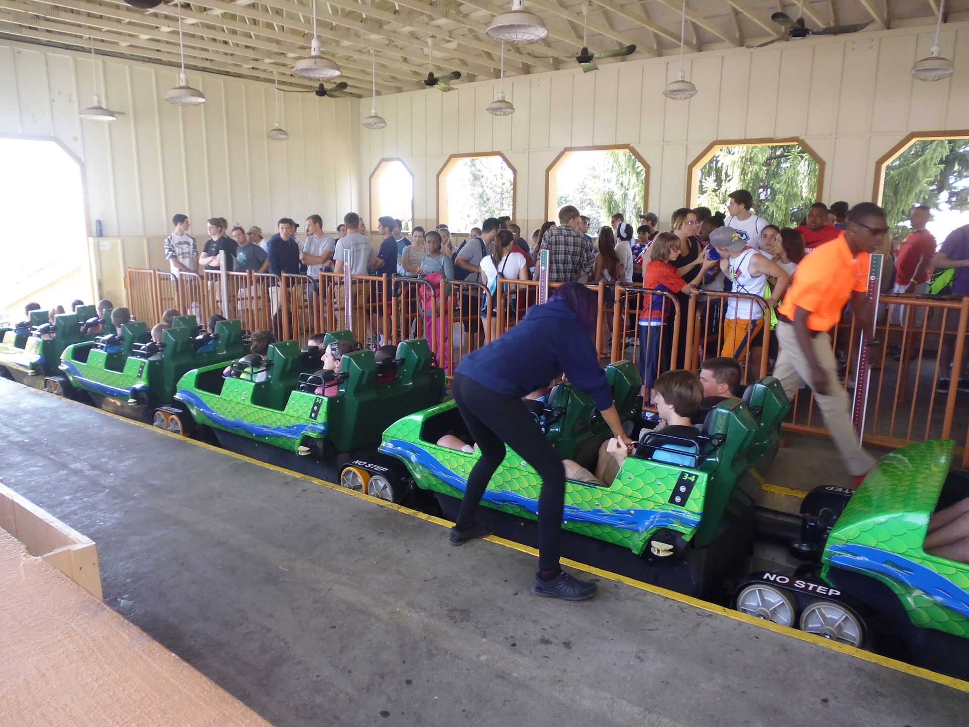 Vekoma SLC im Einzugbetrieb. Tatsächlich hat dieses Prinzip geholfen, den Park trotz nicht unerheblichem Andrang in zweieinhalb Stunden abzufrühstücken.
