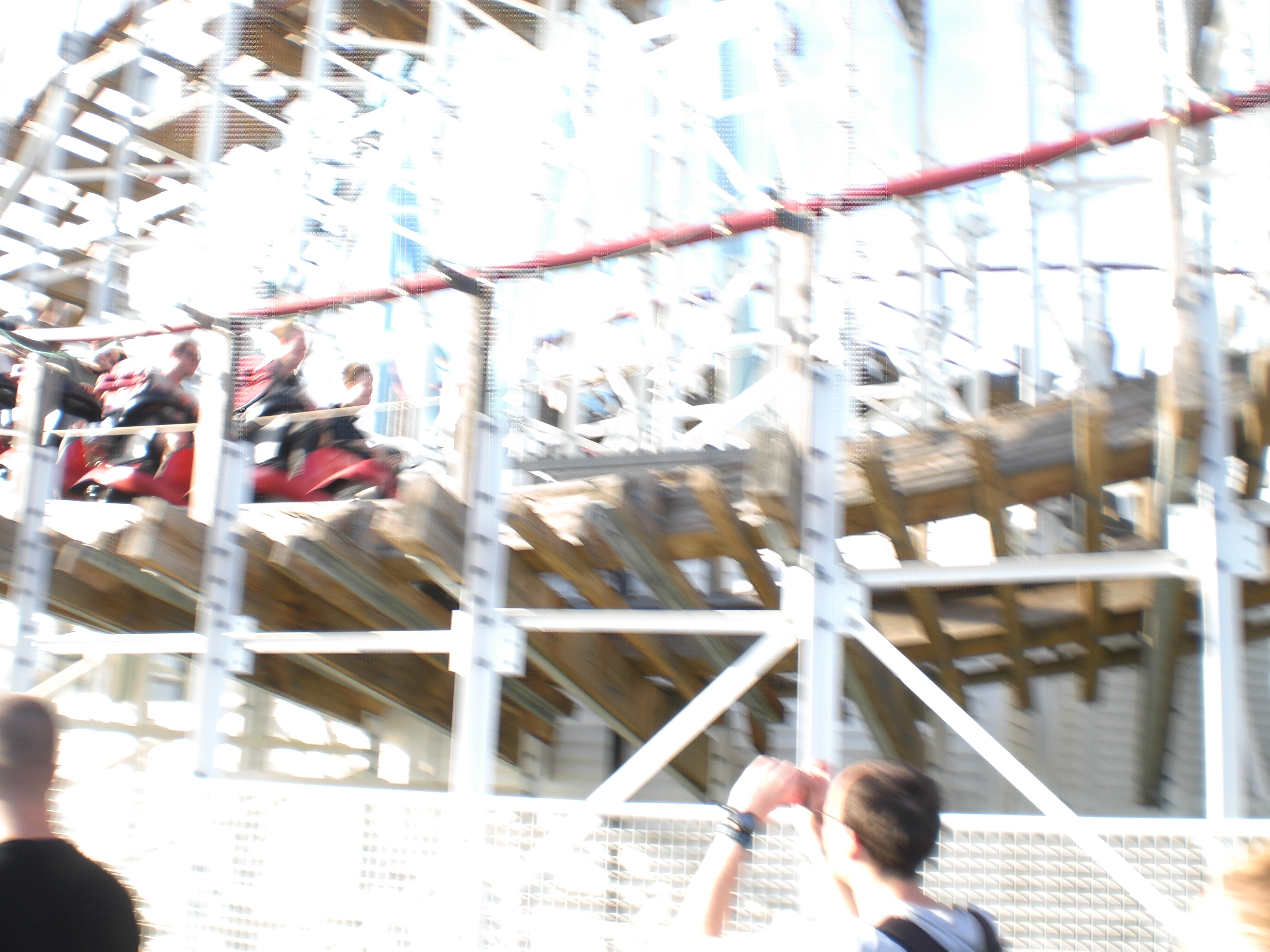 Doch man muss trotzdem ein Lob aussprechen, dass sie trotz der schlechten Platzverhältnisse und der geringen Höhe ein sehr respektables Layout gebastelt haben. Durch die fehlende Höhe fehlt der Anlage der richtige Kick, doch man kann auf Twister trotzdem eine Menge Spaß haben. Ein paar Airtimehügel, auf denen man auch ein wenig abhebt und nette Kurven kennzeichnen diese Anlage. Die Timberliner-Züge waren für mich sehr ungewohnt, insbesondere der Bügel. Leider bleibt nicht allzu viel Freiraum, doch immerhin zieht sich der Bügel während der Fahrt nicht weiter zu, sodass der Spaßfaktor immer noch gegeben ist. Zudem sind die Fahreigenschaften für eine Holzachterbahn sehr gut, allerdings ist die Anlage auch gerade mal 5 Jahre alt und eben auch nicht sehr hoch. Für mich ist es kein Woodie der Oberklasse, doch ich bin hier trotzdem sowohl während der ERT als auch danach noch gern mehrere Runden gefahren. Eine kleine, aber feine Spaßmaschine, aus der man einen gewissen Onrider kaum noch herausbekommen konnte.