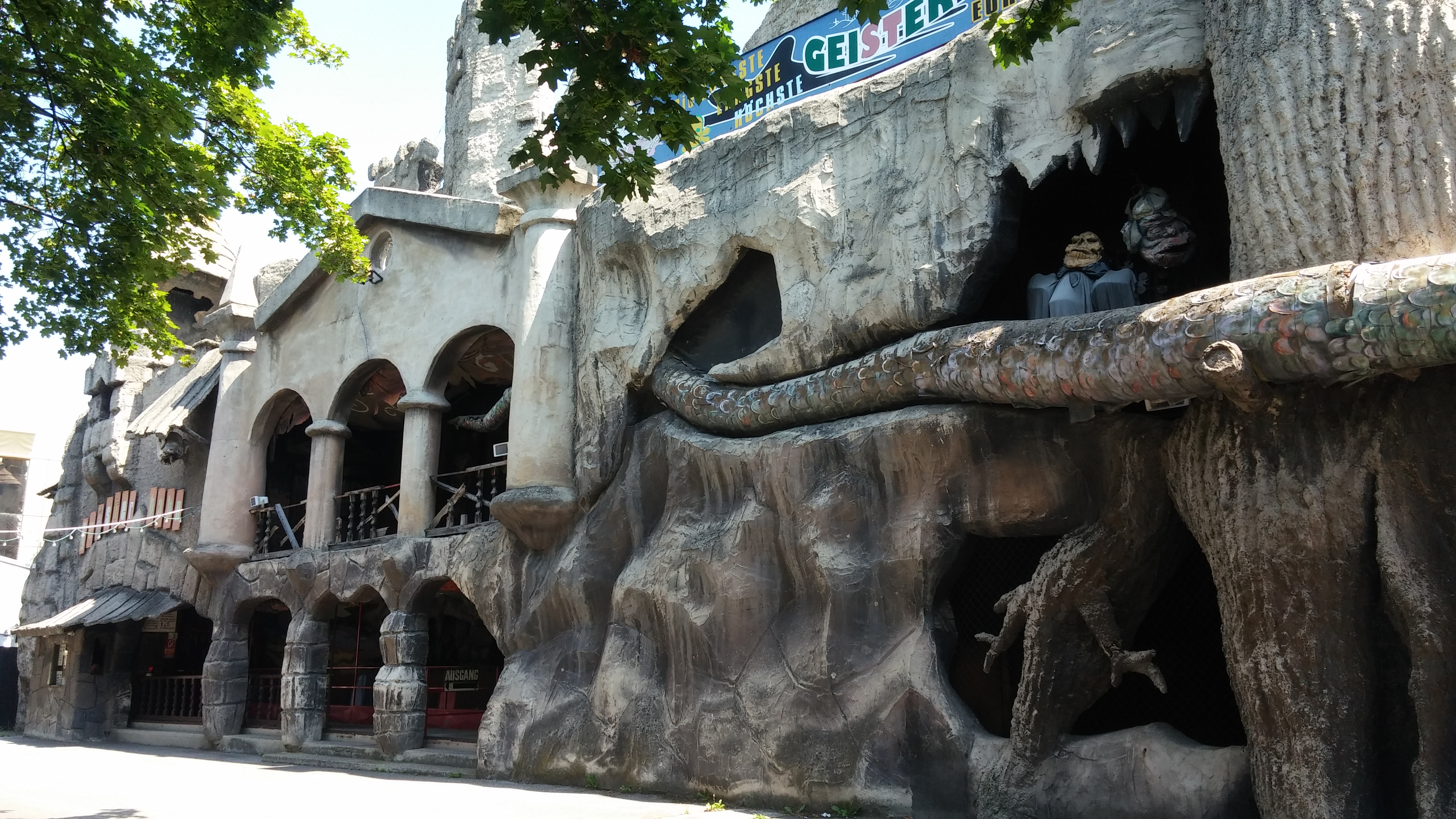 Das Geisterschloss ist die älteste Geisterbahn des Praters, und ziemlich in der Nähe des Haupteingangs.