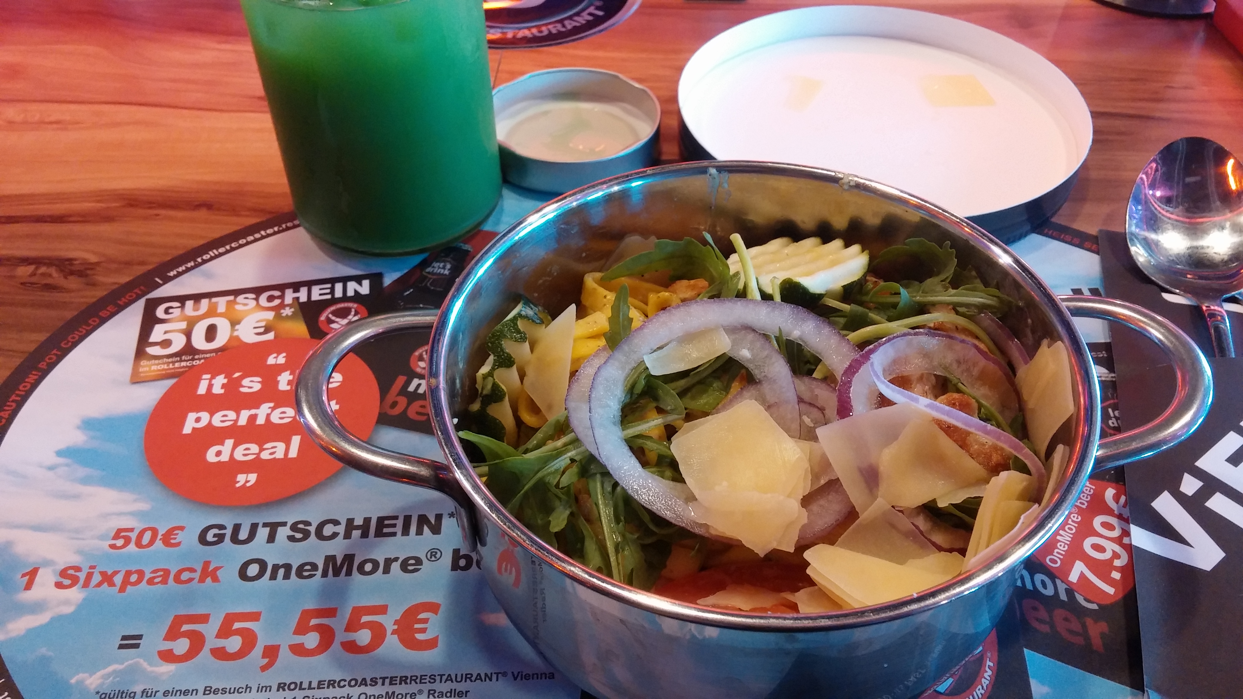 Und funktioniert hier im Prater ganz gut. Der Laden war gut gefüllt, das Essen gut portioniert und recht lecker, der alkoholfreie Cocktail ein bisschen arg süß, aber insgesamt auch ganz gut.