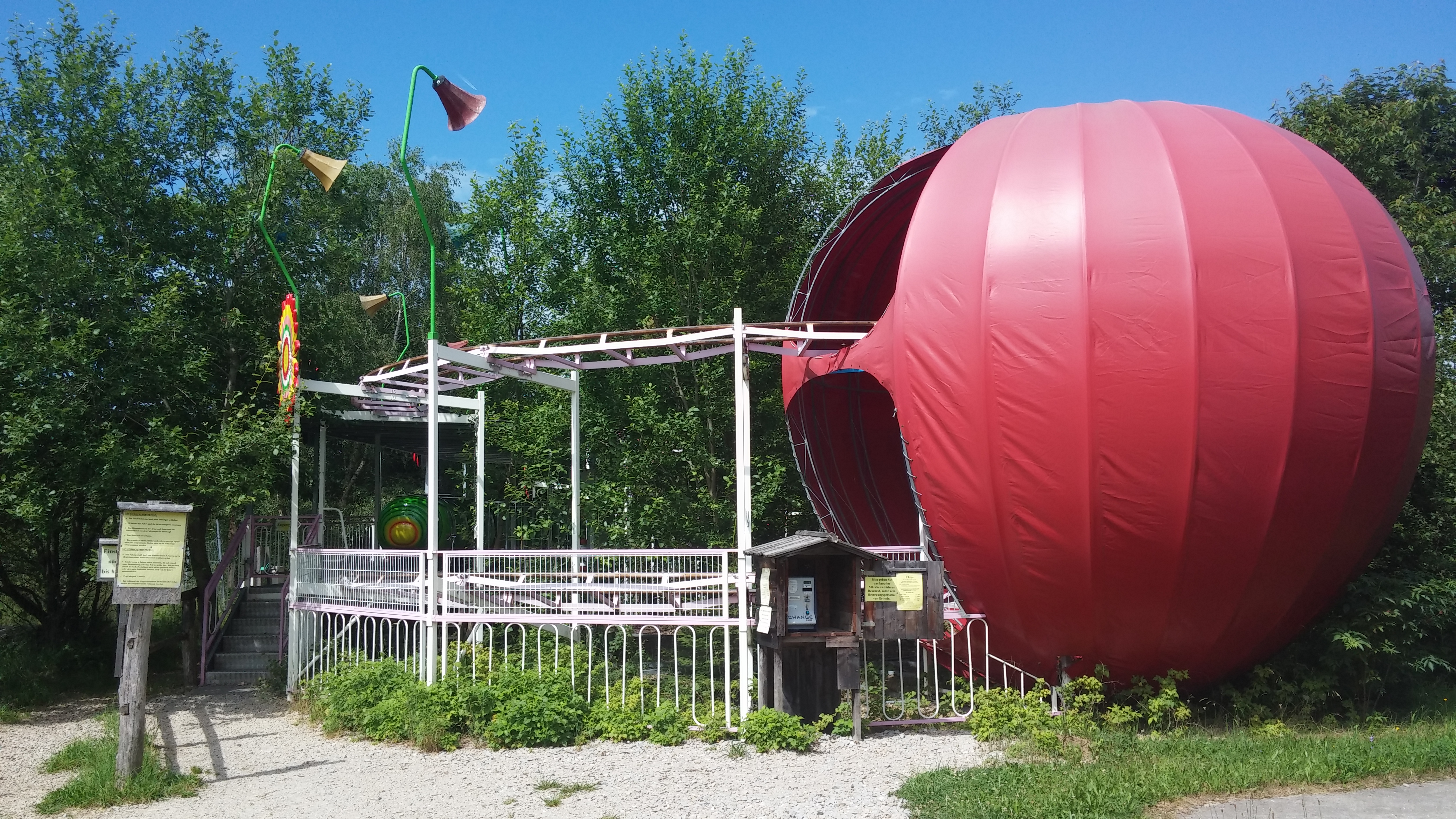 Das Gelände rund um das Schloss ist RIESIG, es gibt genau EINEN Weg drumrum, und vom Schloss selber bekommt man dabei so gut wie nix mit. Die Attraktionen sind zwar großenteils älter und eher klein, aber vielfältig und in großer Anzahl vorhanden, und dabei ist das Ganze auch noch insgesamt ganz nett gestaltet.