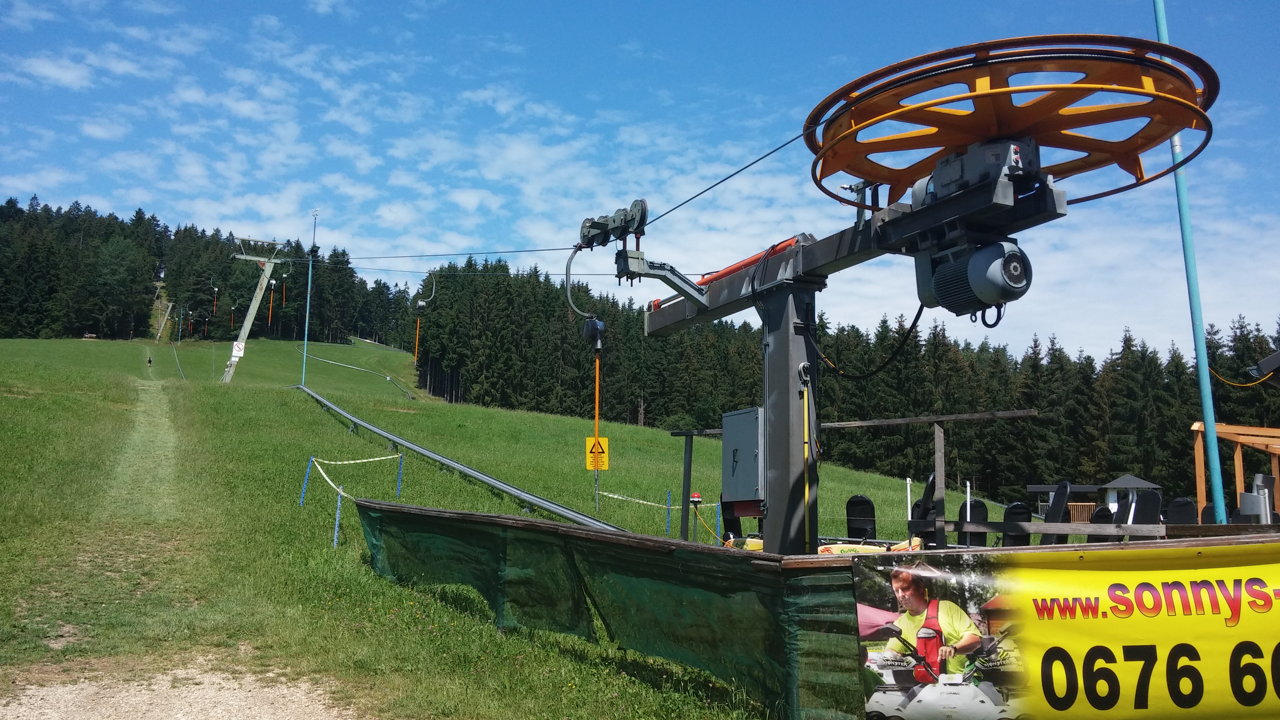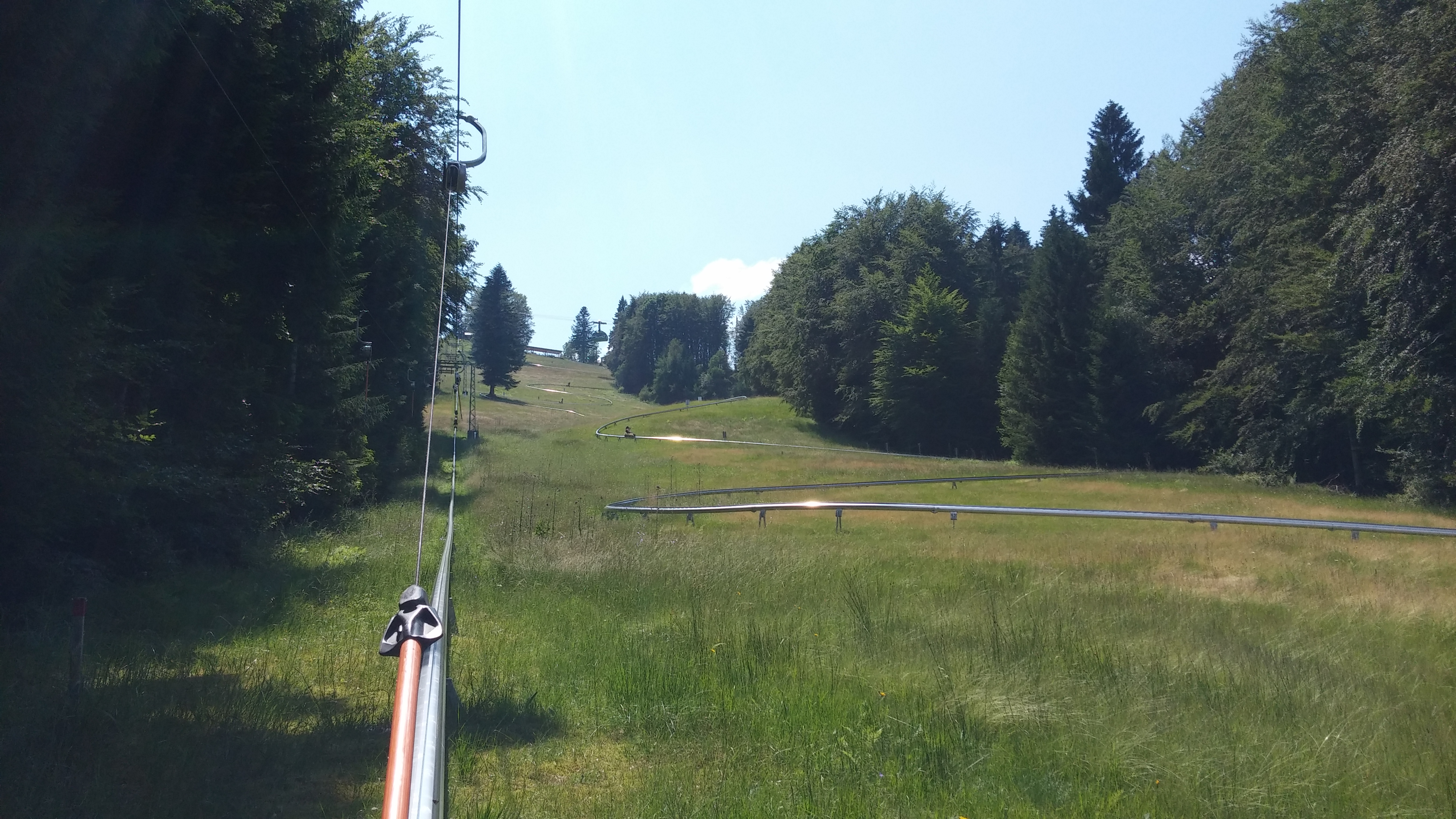 Und um den Skilift auch über den Sommer nutzen zu können, schrauben sie halt, wie an so vielen Orten, jedes Jahr für ein paar Monate ein bisschen Brandauer-Schiene auf ihre Abfahrt.