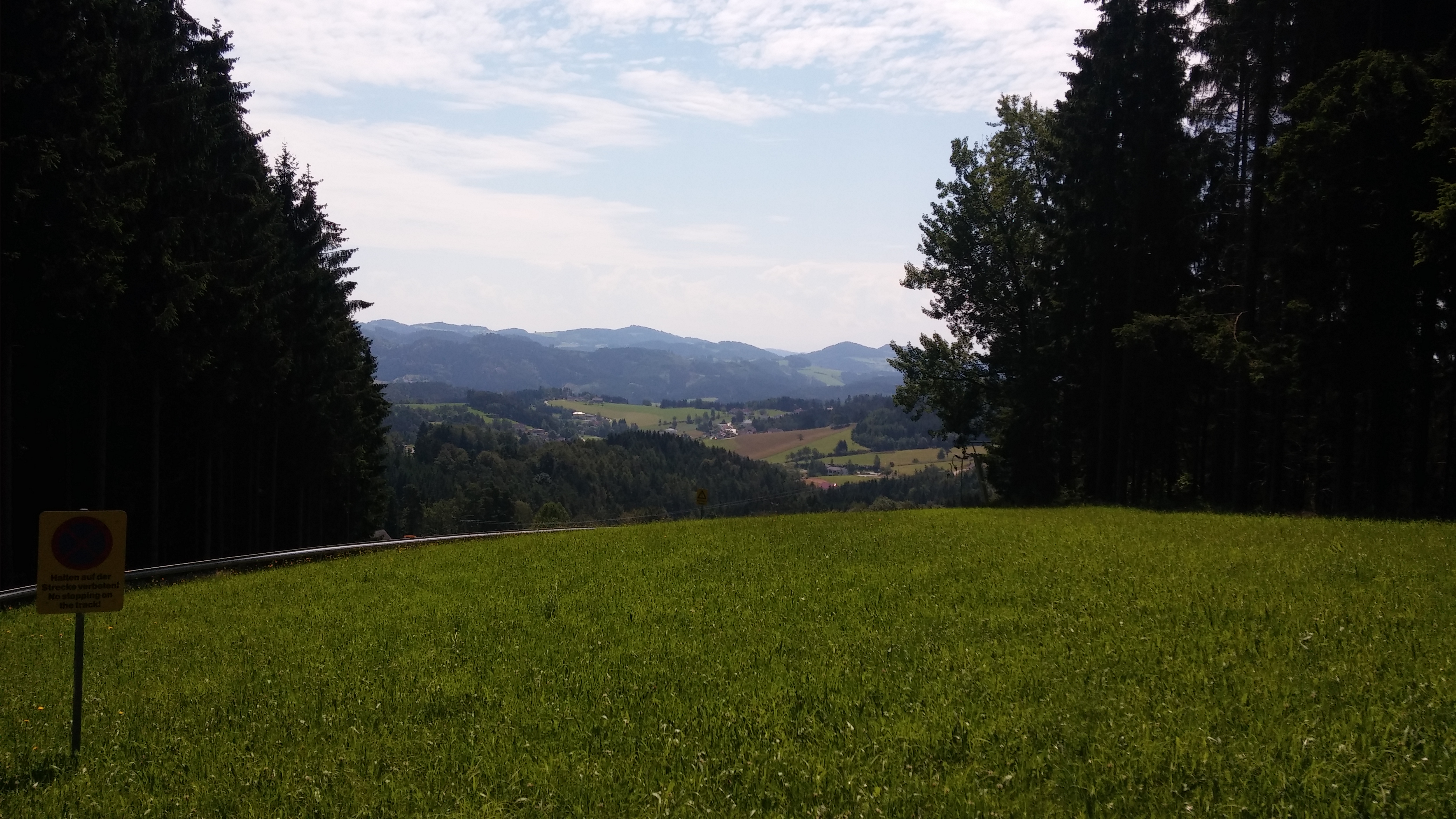 Brandauertypisch geht's an der Seite hoch und dann mit ein paar Kurven auf der offenen Wiese wieder runter.