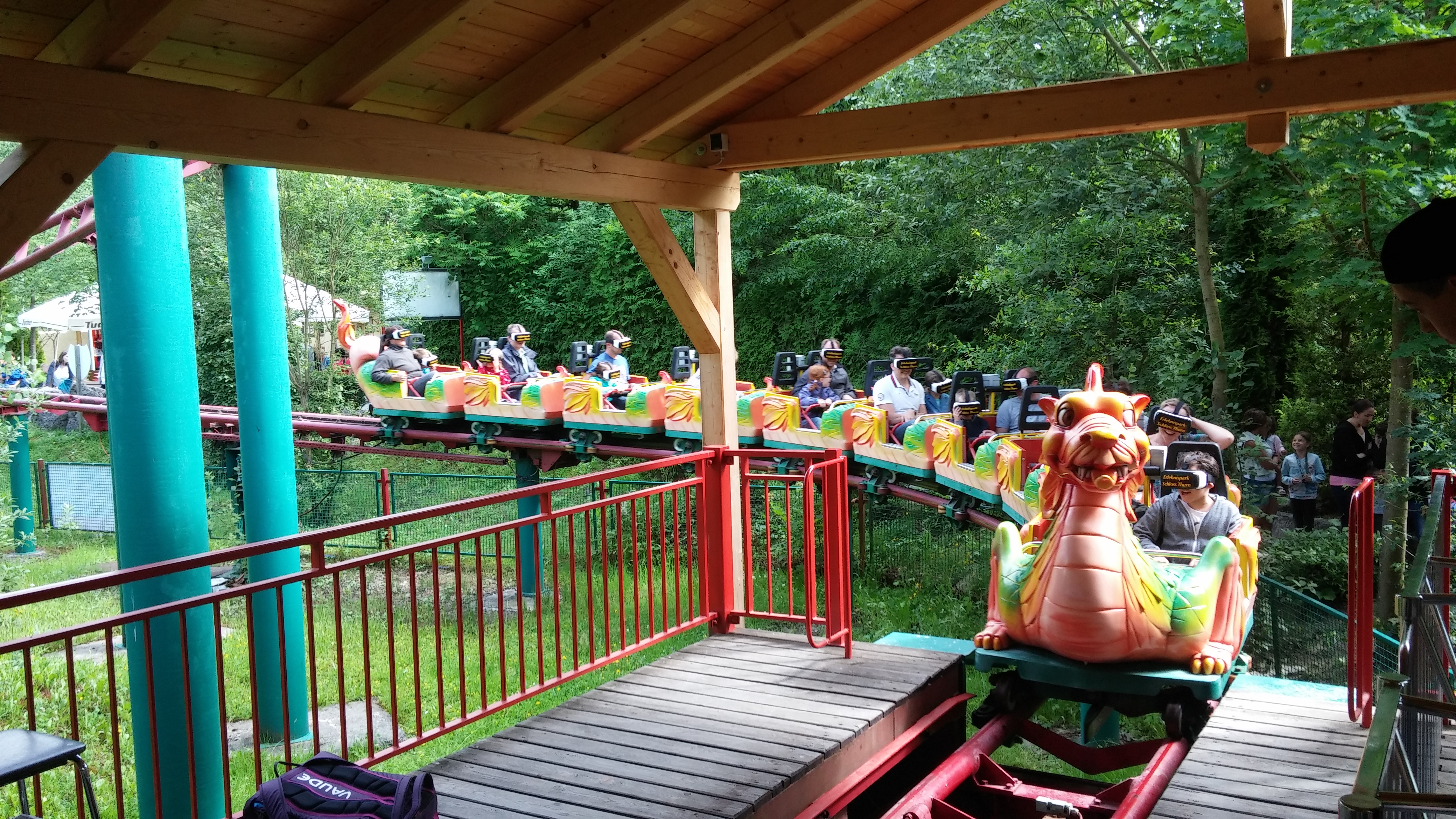 Zierer-Force-Two noch unter dem kreativen Namen "Familienachterbahn", in diesem Jahr sprang man auf den VR-Zug auf und machte einen VR-Zug draus. (Für dieses Wortspiel des Tages bitte kurz mit der Stirn auf die Tischkante hauen).
