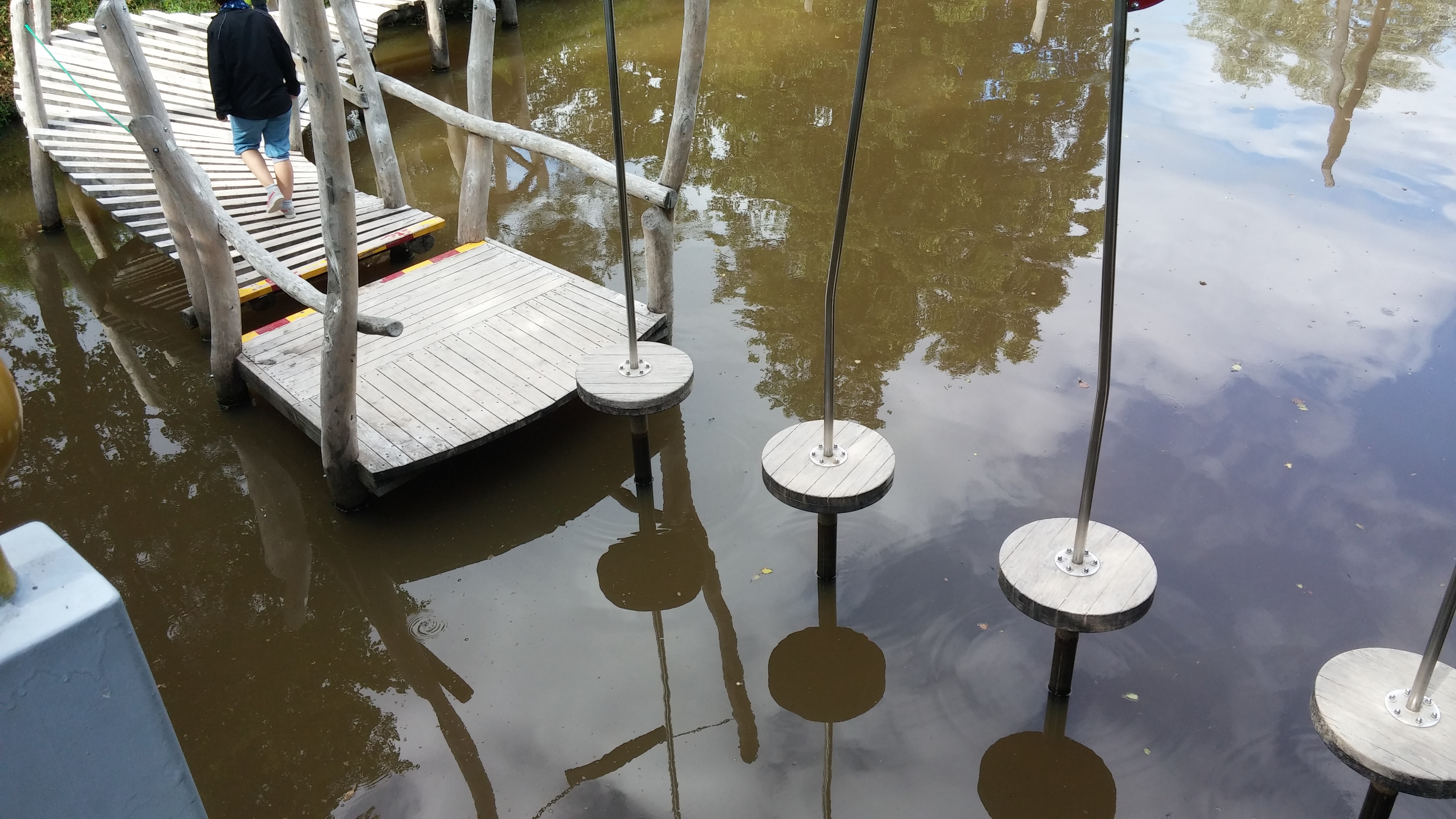 Gleich an mehreren Stellen im Park gibt's kleine Hindernis-Parcours - und auch schon mal einfach über dem freien See.