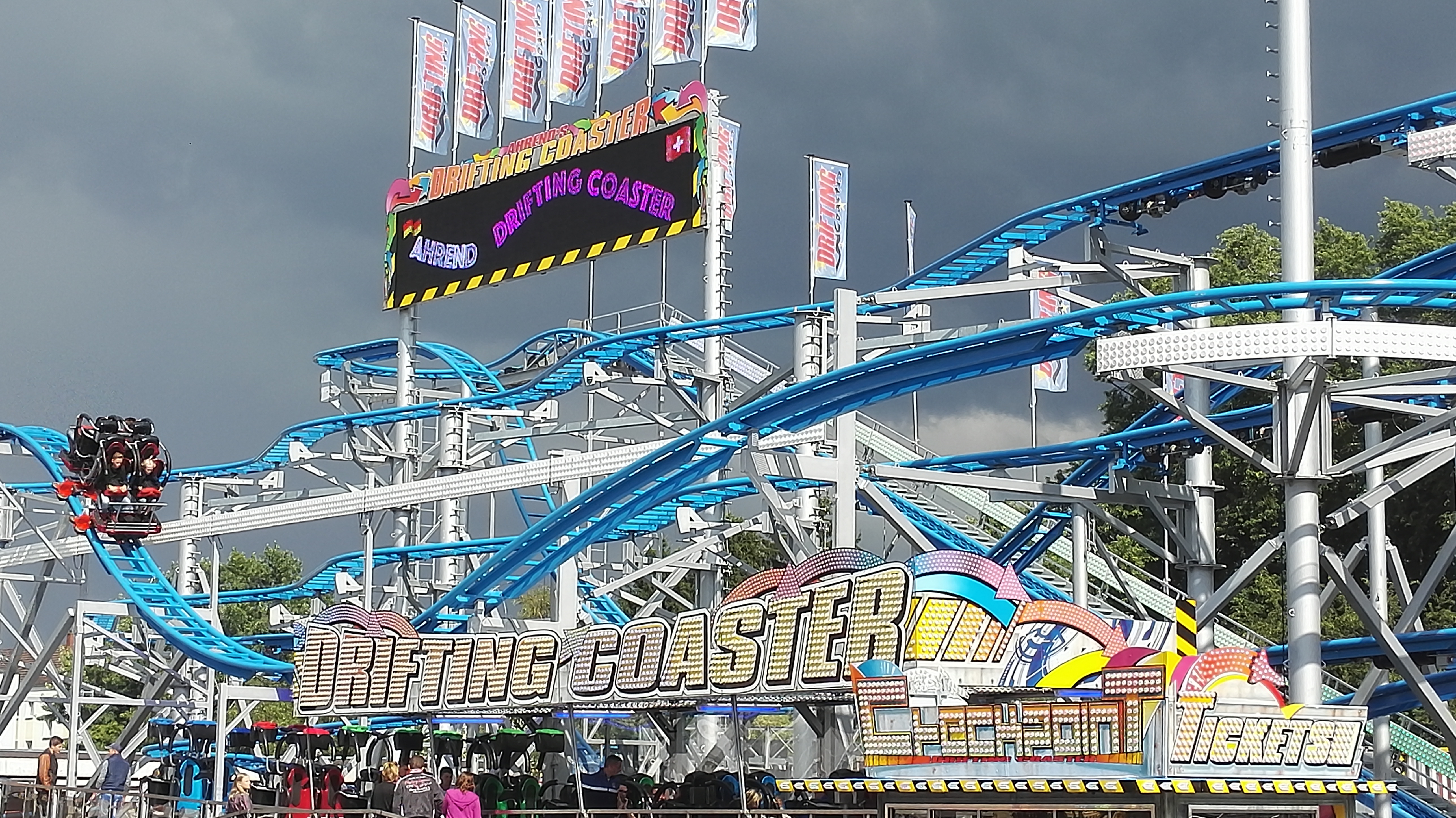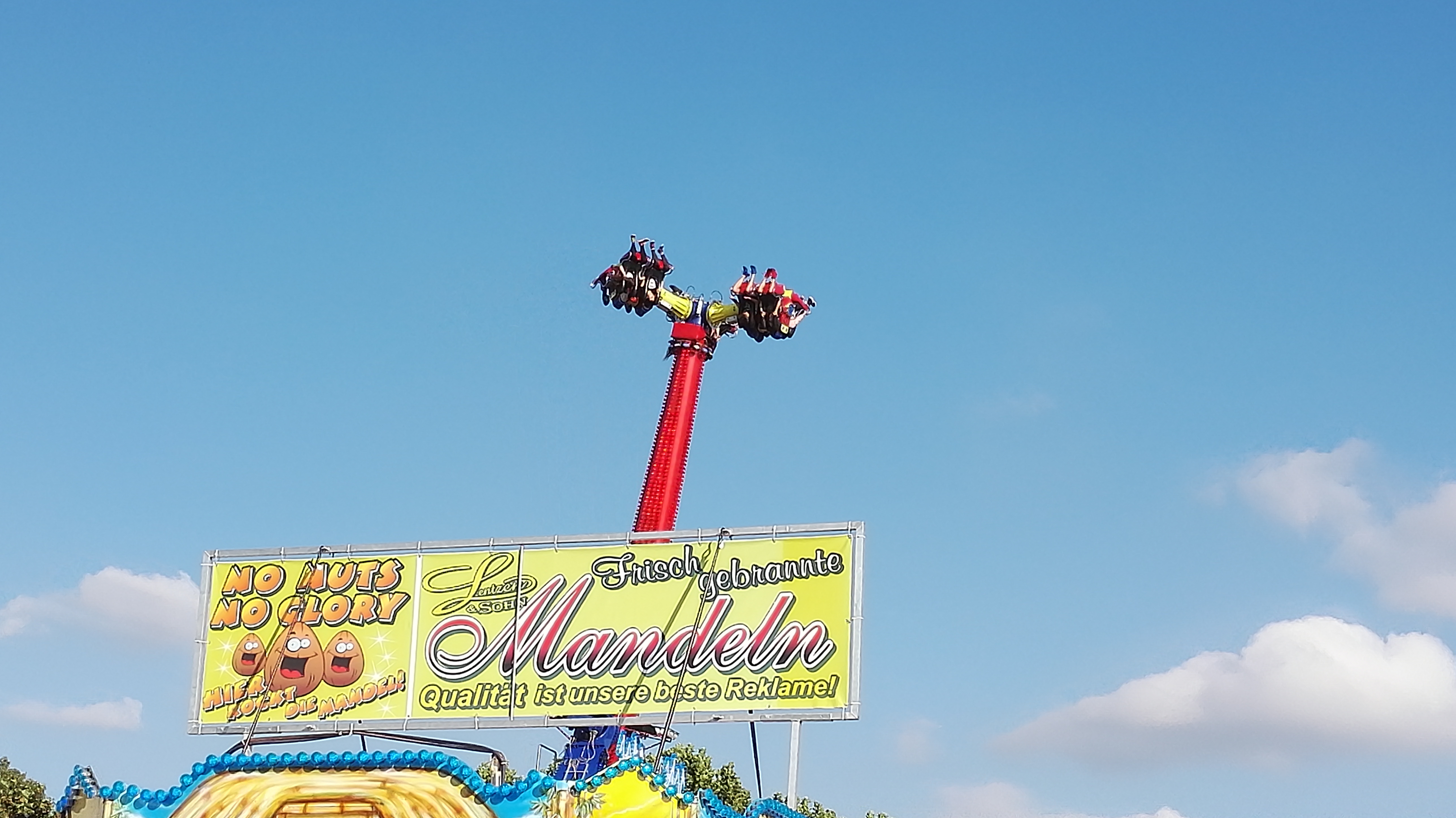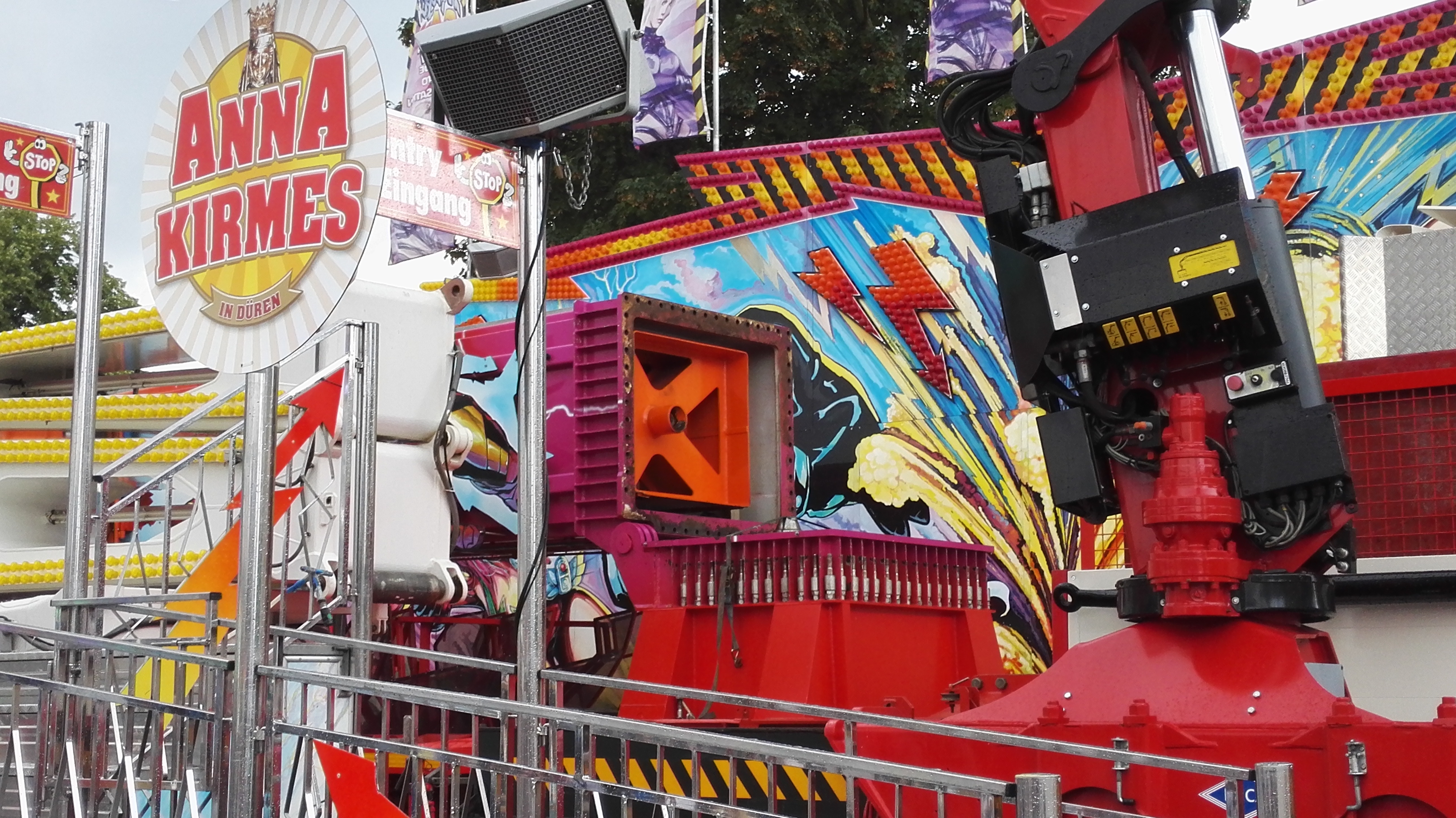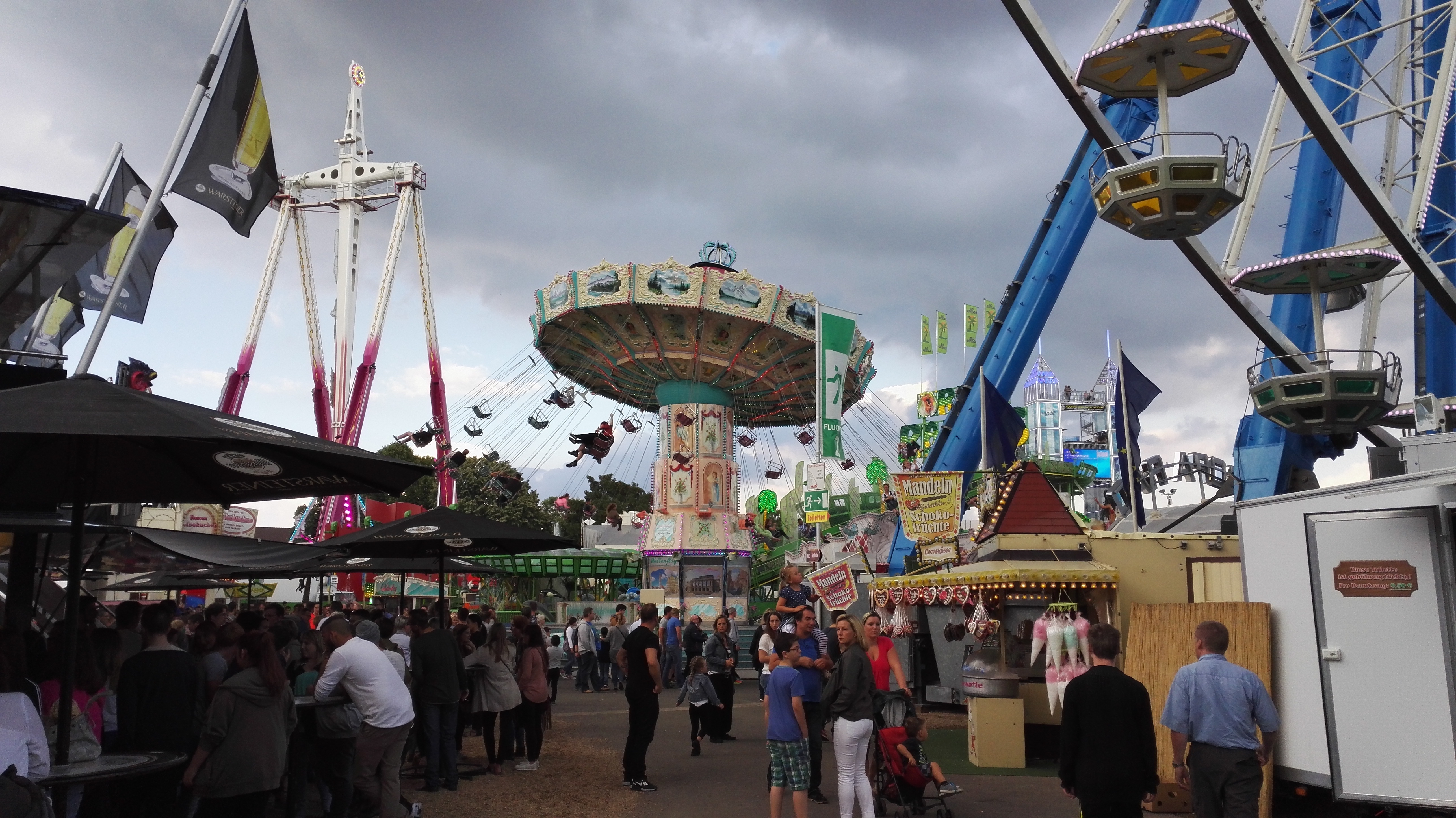 habe gestern am Familientag einen schönen Nachmittag auf der Anna-Kirmes verlebt. Die Preise der Fahrgeschäfte (und der Gastro) waren super und luden zum vergnügten Fahren ein: den Skyfall gab es für 3 Euro mit konsequent 2 Fällen, Infinity auch 3 Euro, ebenso der Booster G4 für 3 Euro. Der Familientag in Düren ist eine Bank! Diese Thrillrides waren im Nachmittagsbereich schwach besucht, wohingegen die Kiddierides, der Flipper!!!, Rio Rapidos und die beiden Autoscooter gut frequentiert waren. Erwartungsgemäß schwer hatte es der Avenger im Schatten des Infinity. Der Drifting-Coaster fuhr im 7-Chaisen-Betrieb und wurde neugierig vom Publikum getestet. Ich fand den schon beim Zusehen scheiße, was für eine knarziger Kasten. Sicherlich lag es auch am durchwachsenen Wetter in den Morgenstunden, dass viele Besucher am Nachmittag noch abgehalten hatte. Doch das Wetter war stabil, bestes Jäckchen-Wetter, Glück gehabt. Das änderte sich schlagartig gegen 18.00, dann strömten die Dürener auf ihre geliebte Anna-Kirmes und auch der der Infintiy war sofort voll belegt gewesen von der Teenager-Zielgruppe. Diese hatte dann wohl ausgechilled und ausgeschlafen:) Düren scheint mir aber generell eine Abendveranstalung zu sein. Übrigens, für 30 Euro kann man eine Infinity 5-Chip-Collection kaufen, sehr edel, aber nicht gerade billig. Macht euch ein Bild vom Familientag anhand der Fotos.