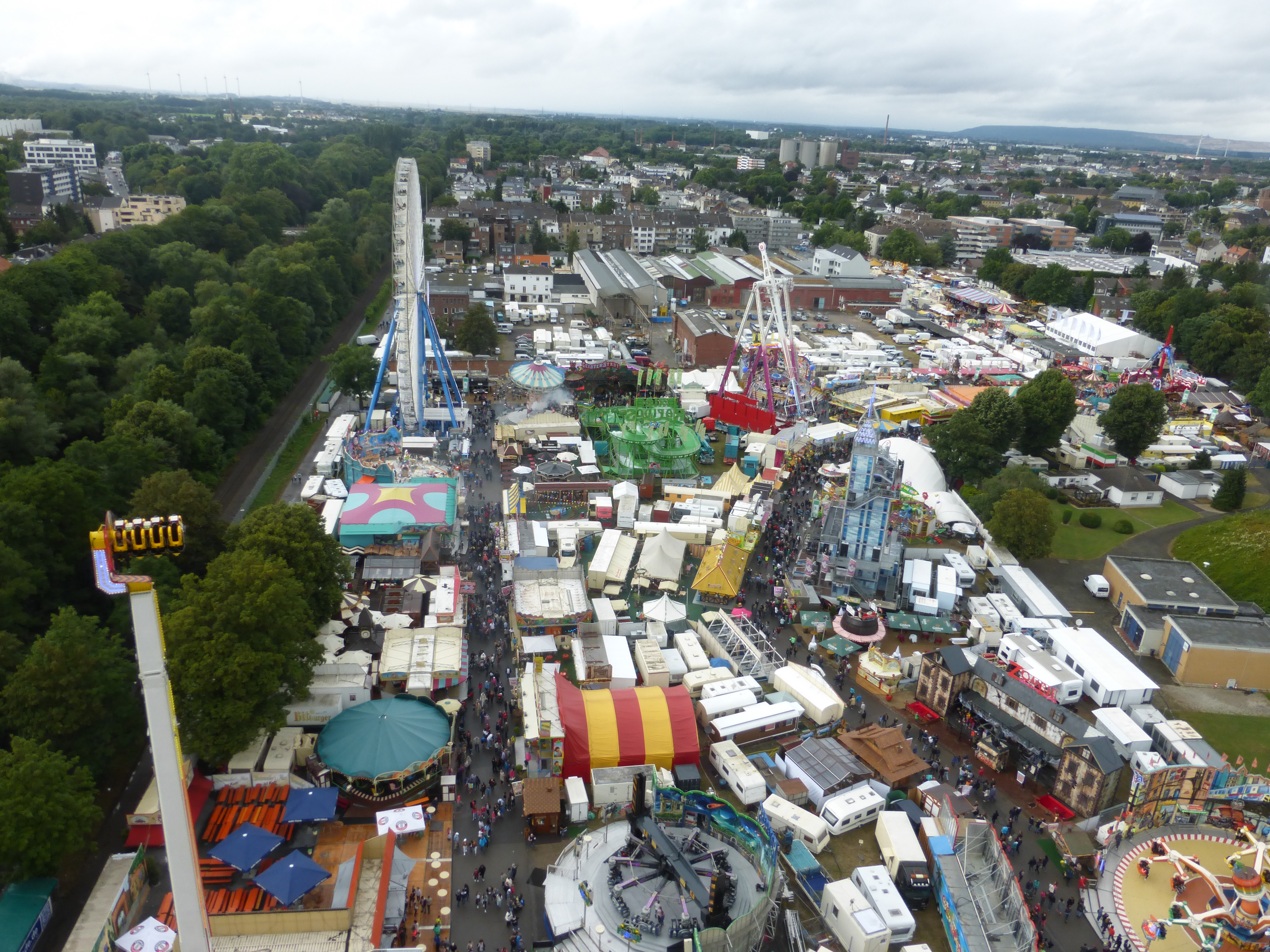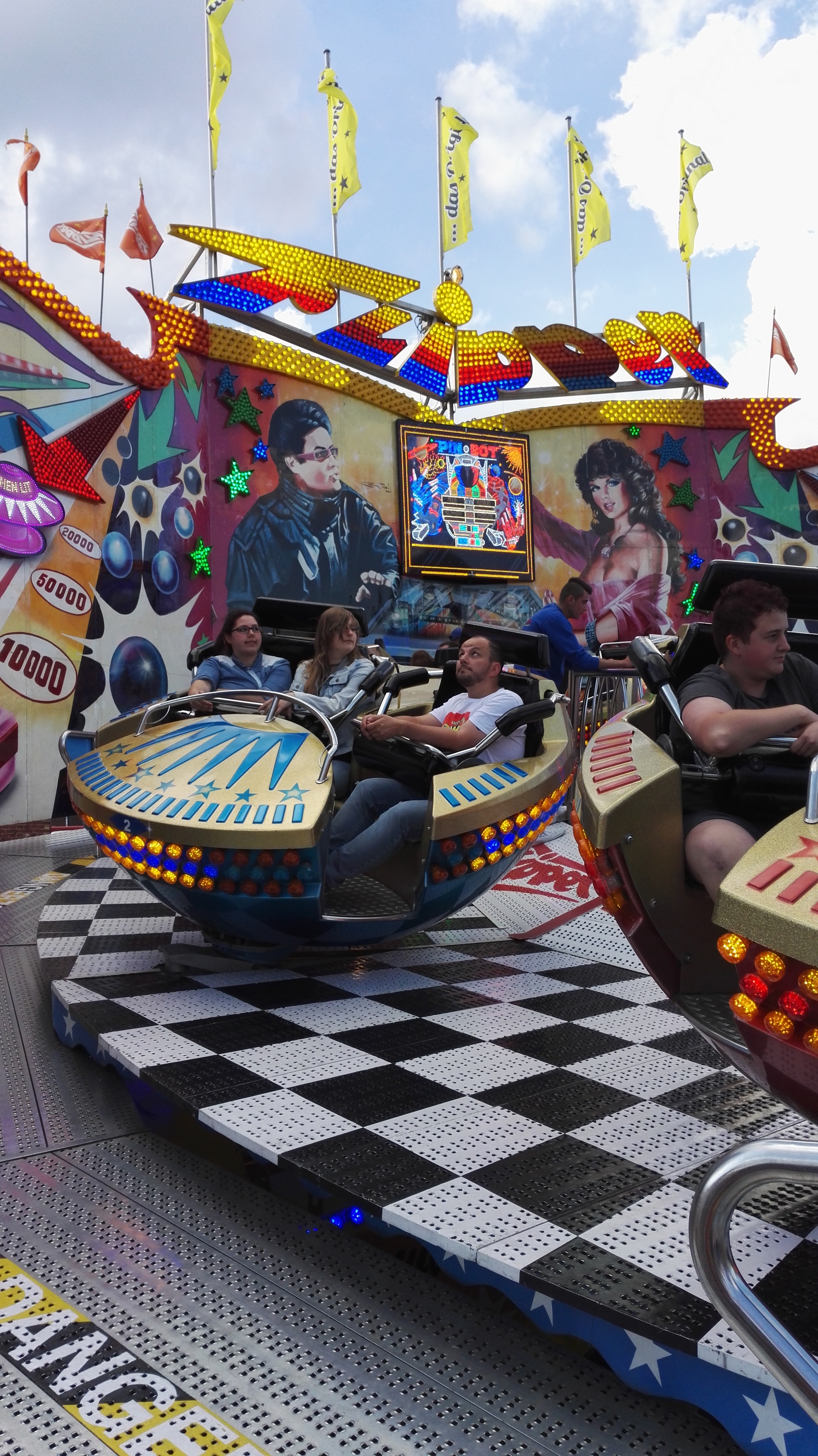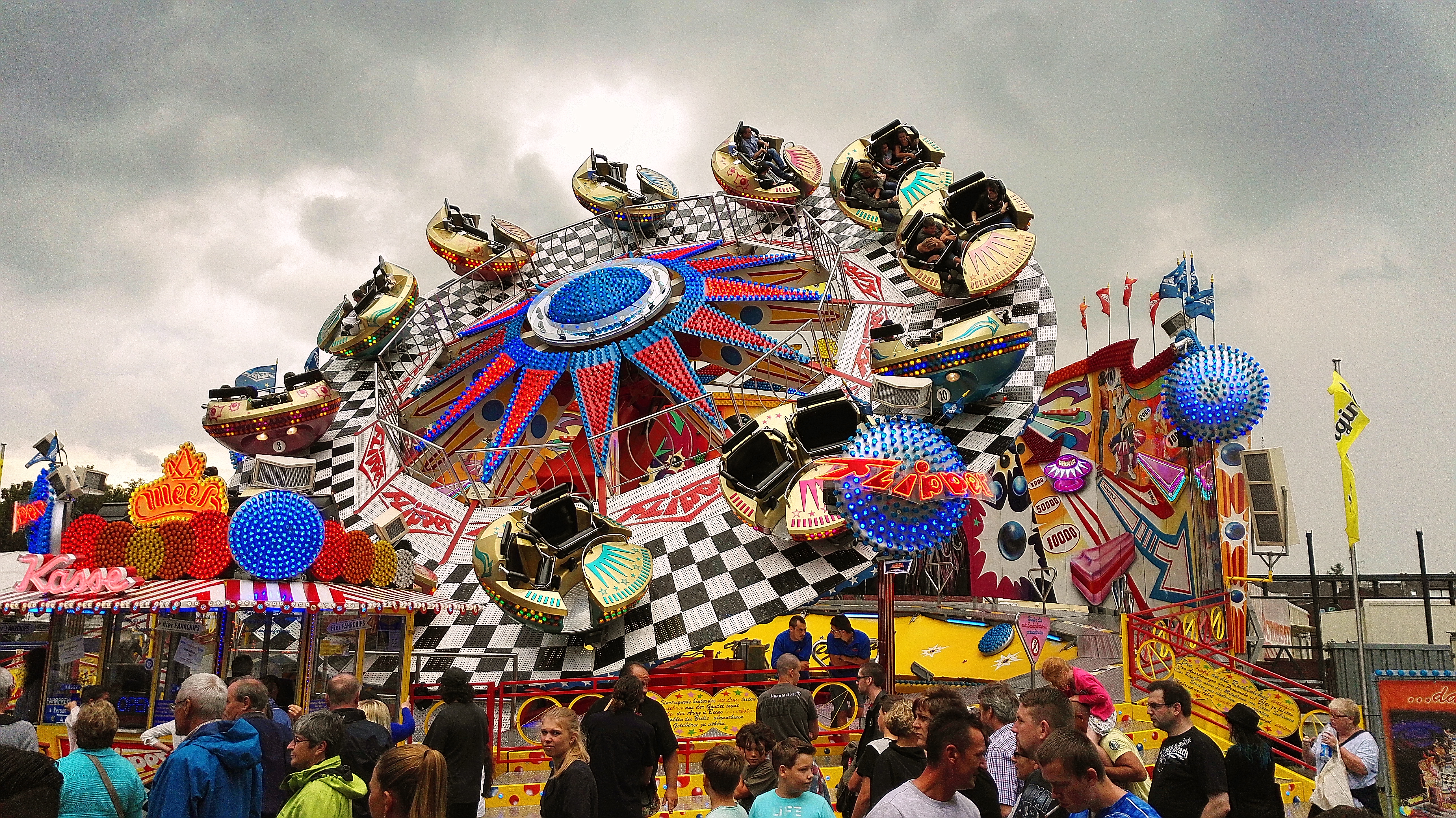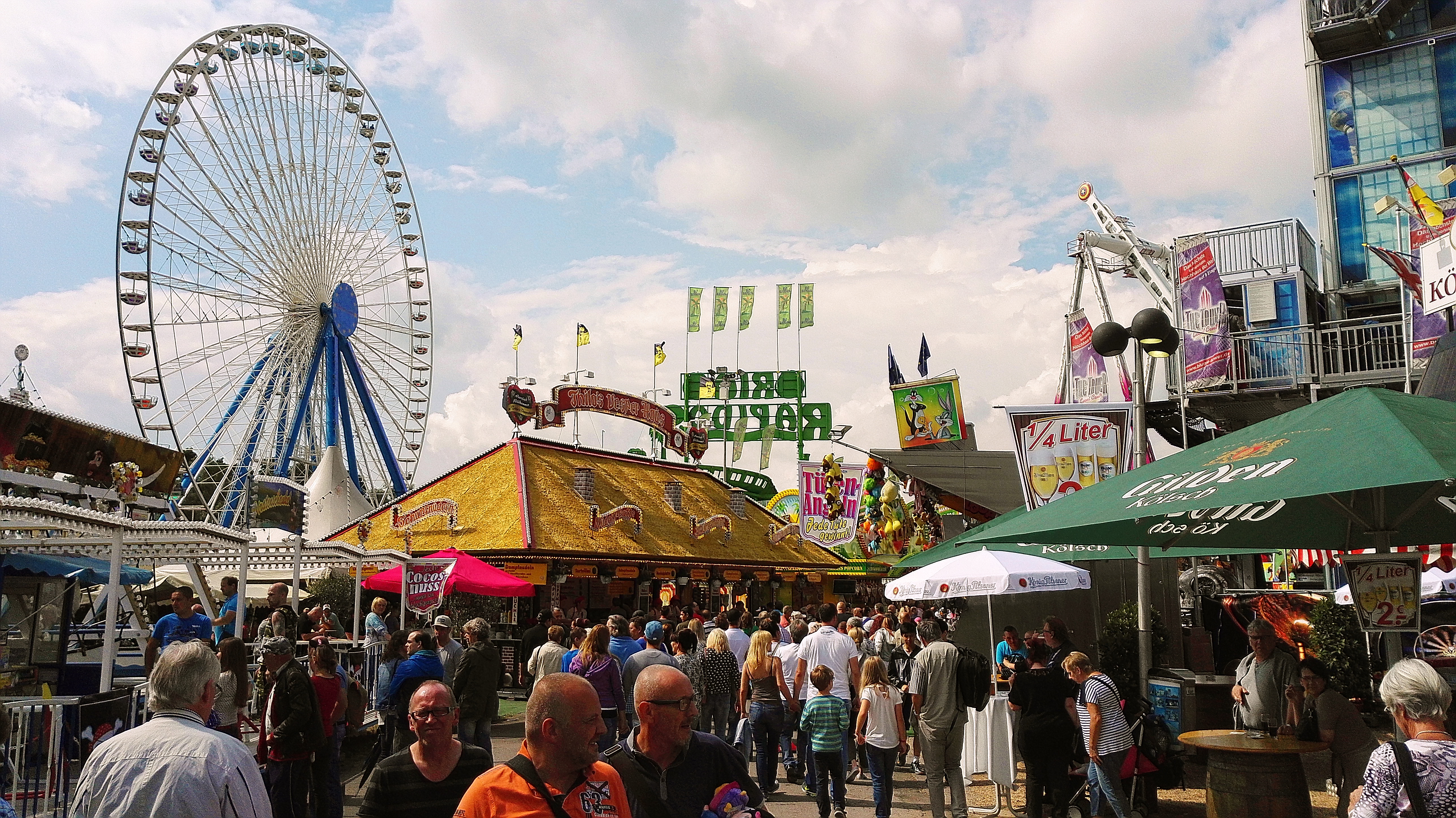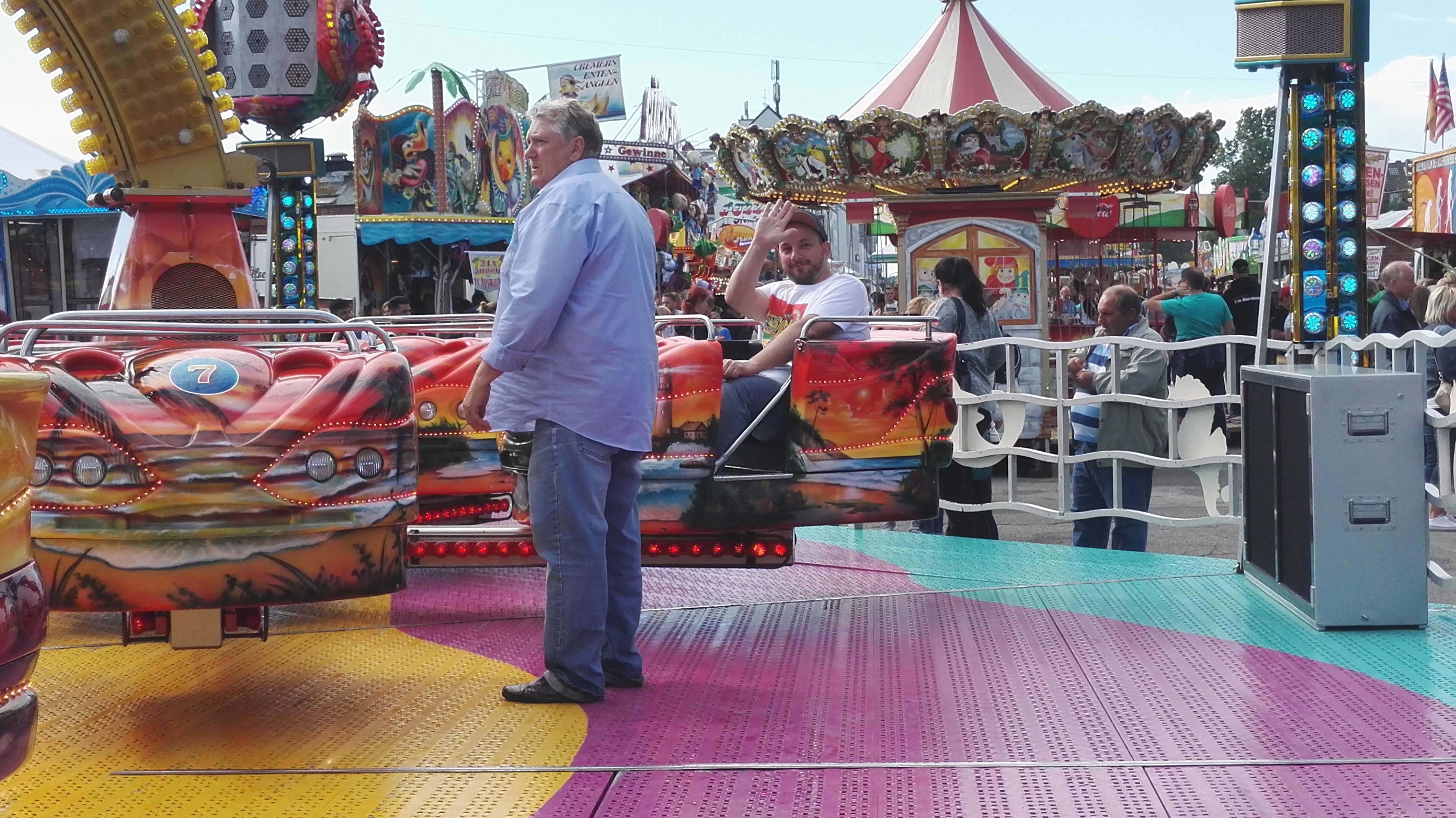 habe gestern am Familientag einen schönen Nachmittag auf der Anna-Kirmes verlebt. Die Preise der Fahrgeschäfte (und der Gastro) waren super und luden zum vergnügten Fahren ein: den Skyfall gab es für 3 Euro mit konsequent 2 Fällen, Infinity auch 3 Euro, ebenso der Booster G4 für 3 Euro. Der Familientag in Düren ist eine Bank! Diese Thrillrides waren im Nachmittagsbereich schwach besucht, wohingegen die Kiddierides, der Flipper!!!, Rio Rapidos und die beiden Autoscooter gut frequentiert waren. Erwartungsgemäß schwer hatte es der Avenger im Schatten des Infinity. Der Drifting-Coaster fuhr im 7-Chaisen-Betrieb und wurde neugierig vom Publikum getestet. Ich fand den schon beim Zusehen scheiße, was für eine knarziger Kasten. Sicherlich lag es auch am durchwachsenen Wetter in den Morgenstunden, dass viele Besucher am Nachmittag noch abgehalten hatte. Doch das Wetter war stabil, bestes Jäckchen-Wetter, Glück gehabt. Das änderte sich schlagartig gegen 18.00, dann strömten die Dürener auf ihre geliebte Anna-Kirmes und auch der der Infintiy war sofort voll belegt gewesen von der Teenager-Zielgruppe. Diese hatte dann wohl ausgechilled und ausgeschlafen:) Düren scheint mir aber generell eine Abendveranstalung zu sein. Übrigens, für 30 Euro kann man eine Infinity 5-Chip-Collection kaufen, sehr edel, aber nicht gerade billig. Macht euch ein Bild vom Familientag anhand der Fotos.