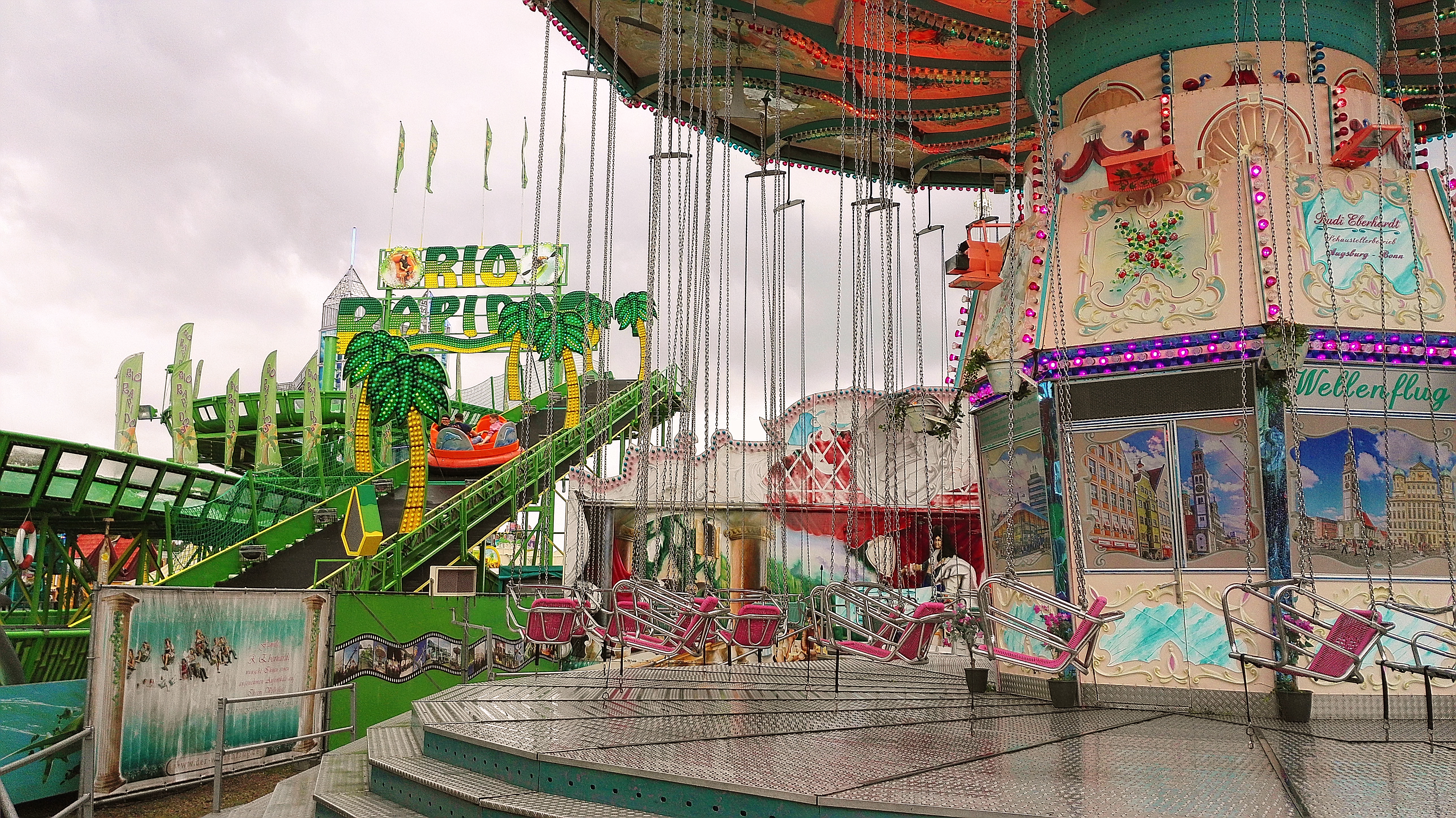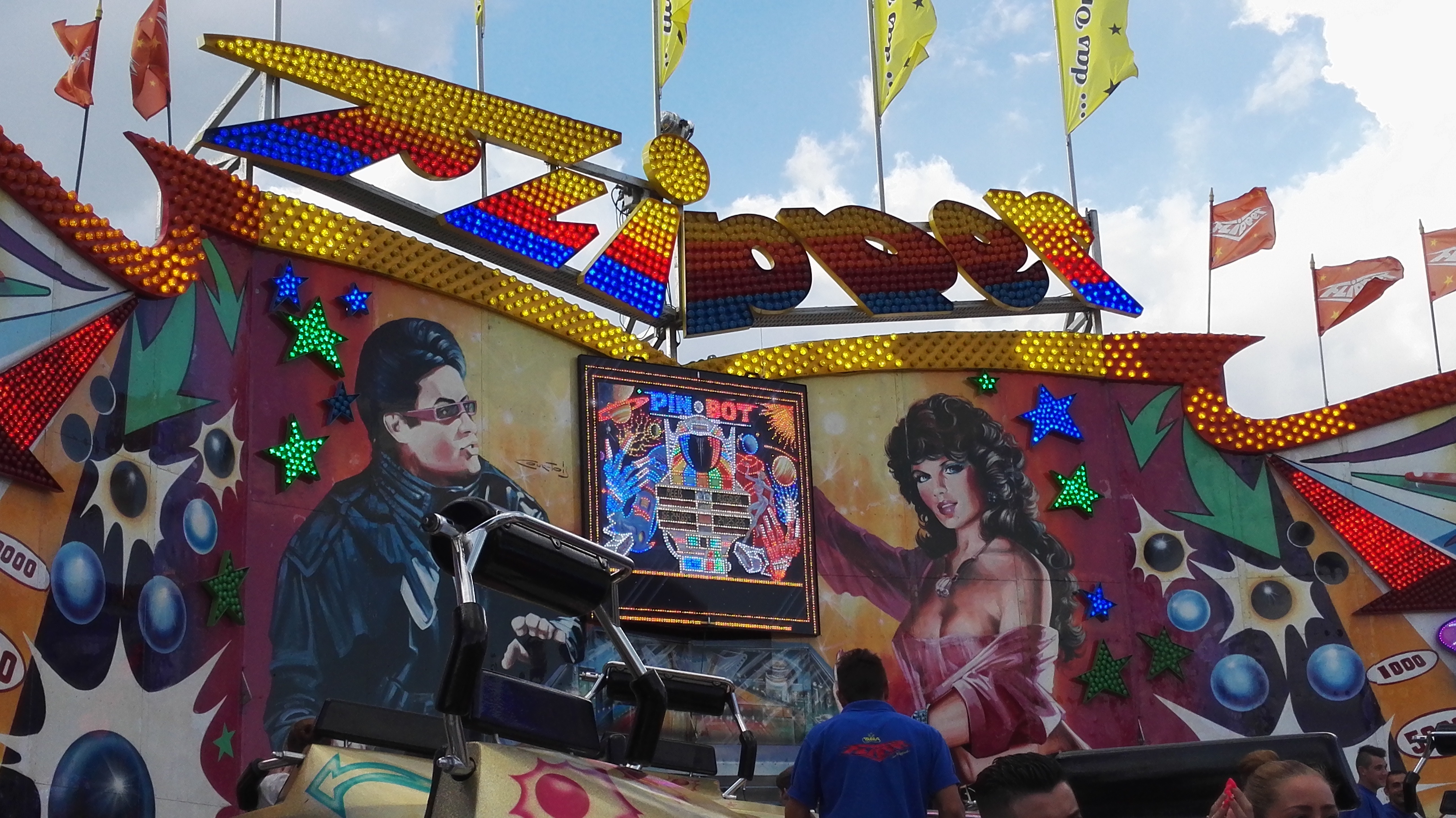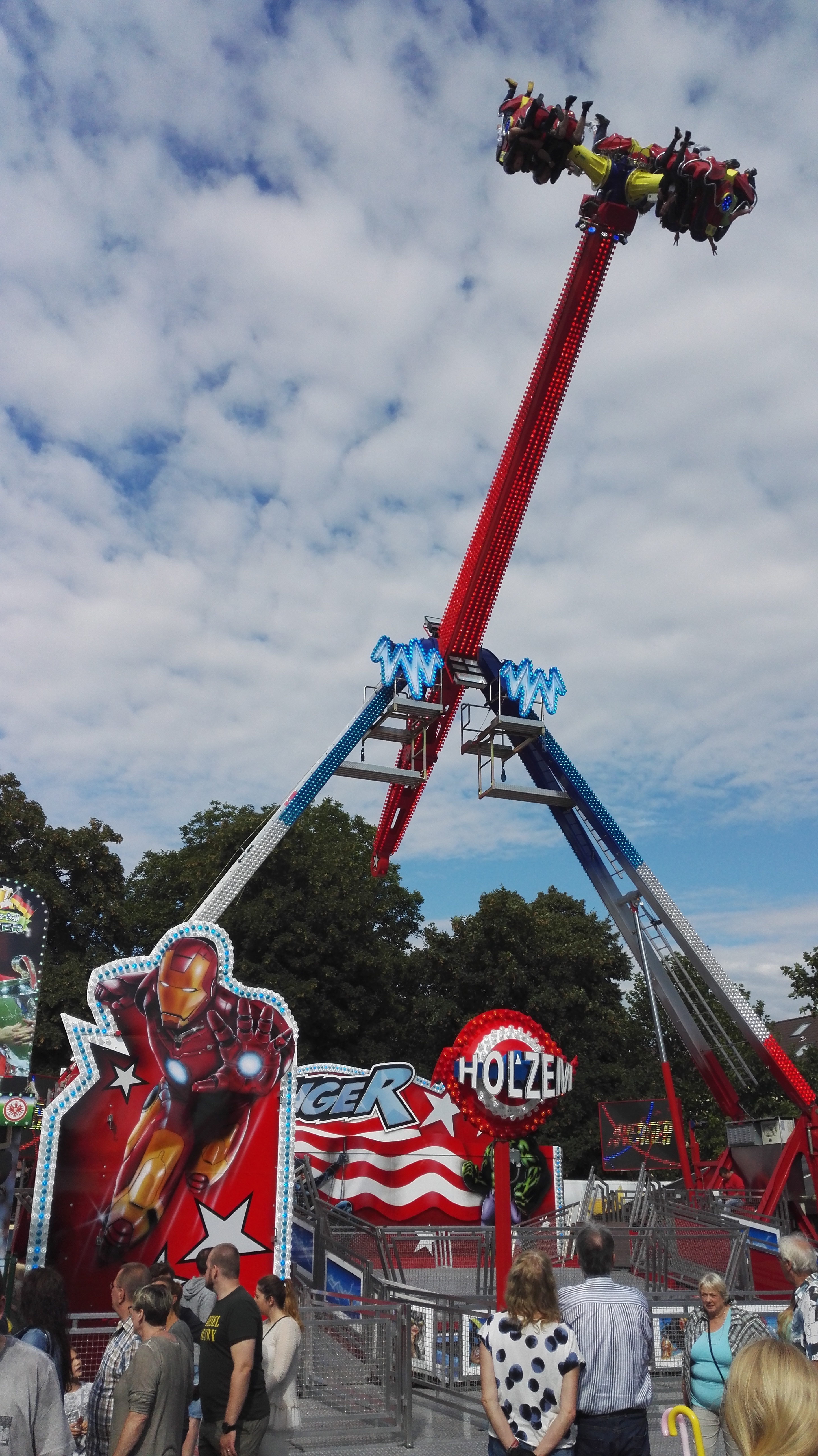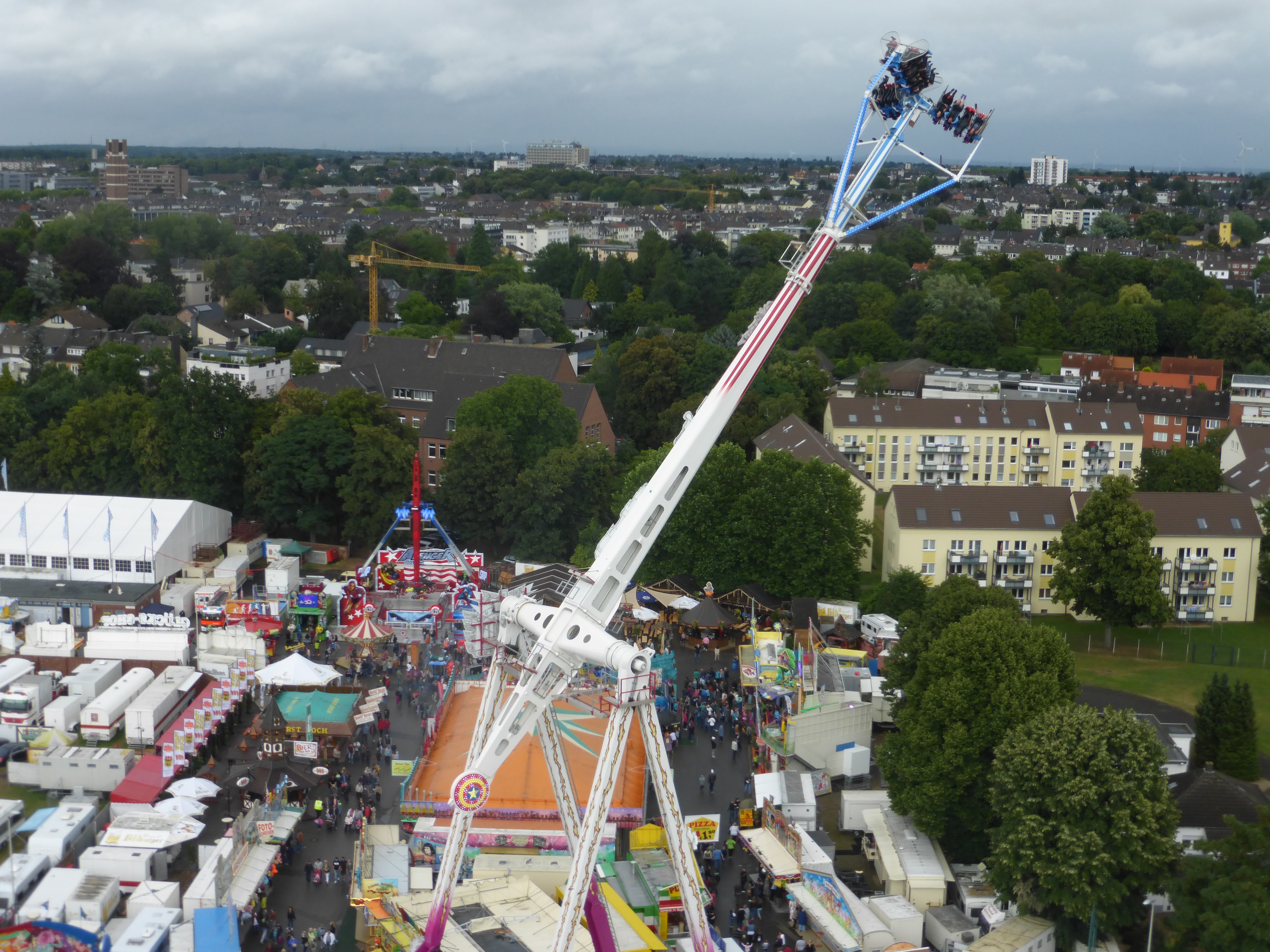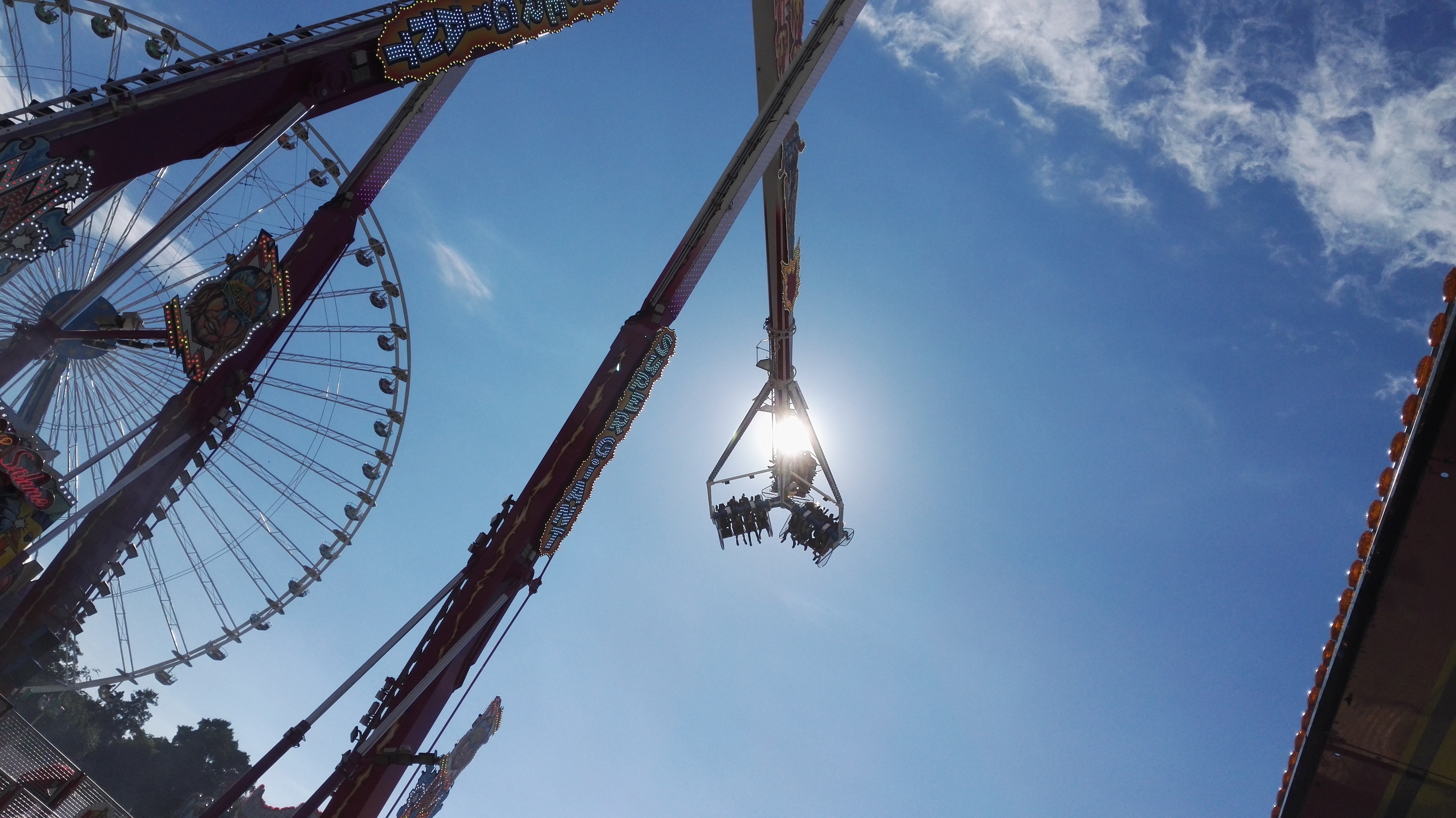habe gestern am Familientag einen schönen Nachmittag auf der Anna-Kirmes verlebt. Die Preise der Fahrgeschäfte (und der Gastro) waren super und luden zum vergnügten Fahren ein: den Skyfall gab es für 3 Euro mit konsequent 2 Fällen, Infinity auch 3 Euro, ebenso der Booster G4 für 3 Euro. Der Familientag in Düren ist eine Bank! Diese Thrillrides waren im Nachmittagsbereich schwach besucht, wohingegen die Kiddierides, der Flipper!!!, Rio Rapidos und die beiden Autoscooter gut frequentiert waren. Erwartungsgemäß schwer hatte es der Avenger im Schatten des Infinity. Der Drifting-Coaster fuhr im 7-Chaisen-Betrieb und wurde neugierig vom Publikum getestet. Ich fand den schon beim Zusehen scheiße, was für eine knarziger Kasten. Sicherlich lag es auch am durchwachsenen Wetter in den Morgenstunden, dass viele Besucher am Nachmittag noch abgehalten hatte. Doch das Wetter war stabil, bestes Jäckchen-Wetter, Glück gehabt. Das änderte sich schlagartig gegen 18.00, dann strömten die Dürener auf ihre geliebte Anna-Kirmes und auch der der Infintiy war sofort voll belegt gewesen von der Teenager-Zielgruppe. Diese hatte dann wohl ausgechilled und ausgeschlafen:) Düren scheint mir aber generell eine Abendveranstalung zu sein. Übrigens, für 30 Euro kann man eine Infinity 5-Chip-Collection kaufen, sehr edel, aber nicht gerade billig. Macht euch ein Bild vom Familientag anhand der Fotos.