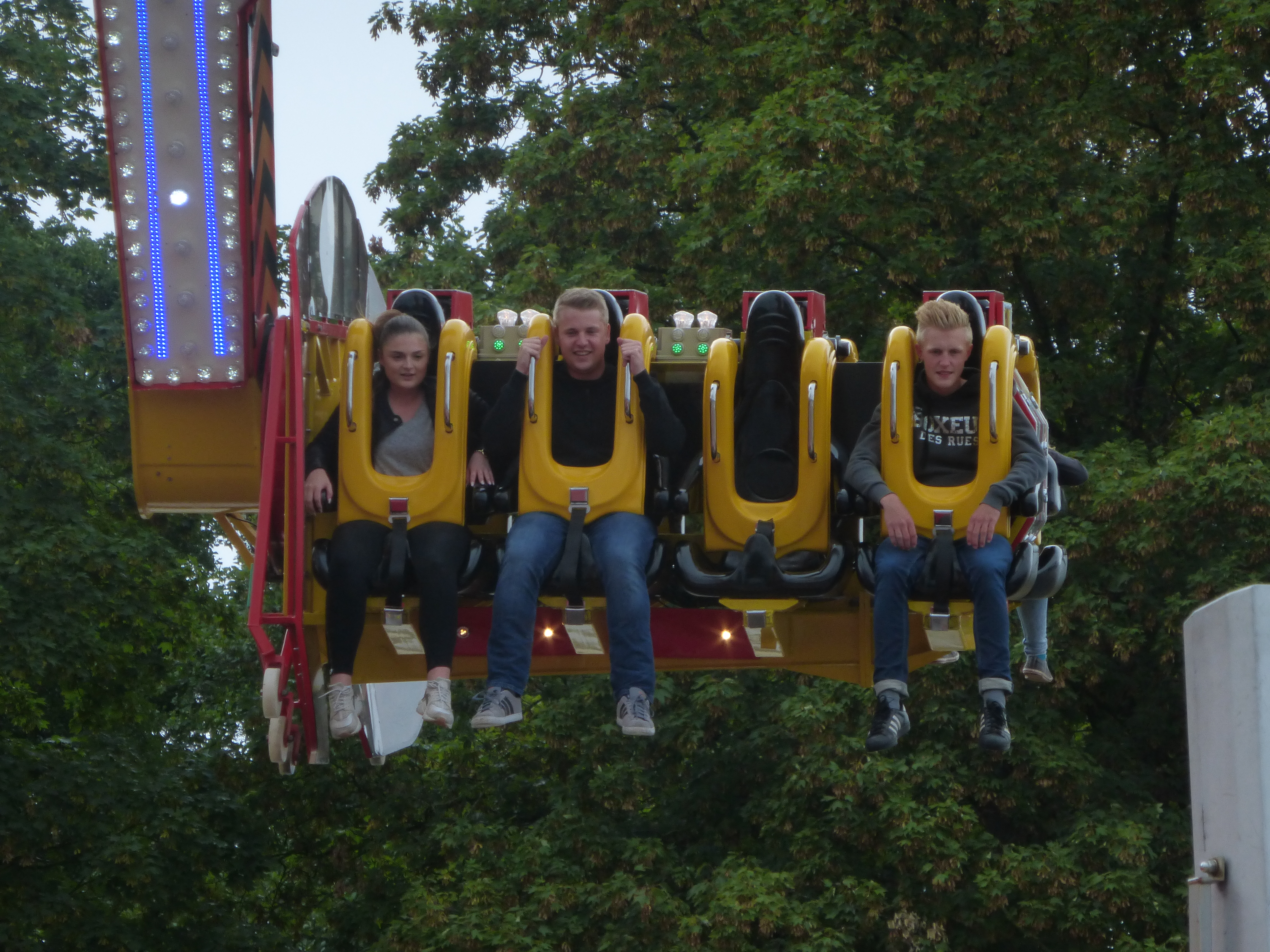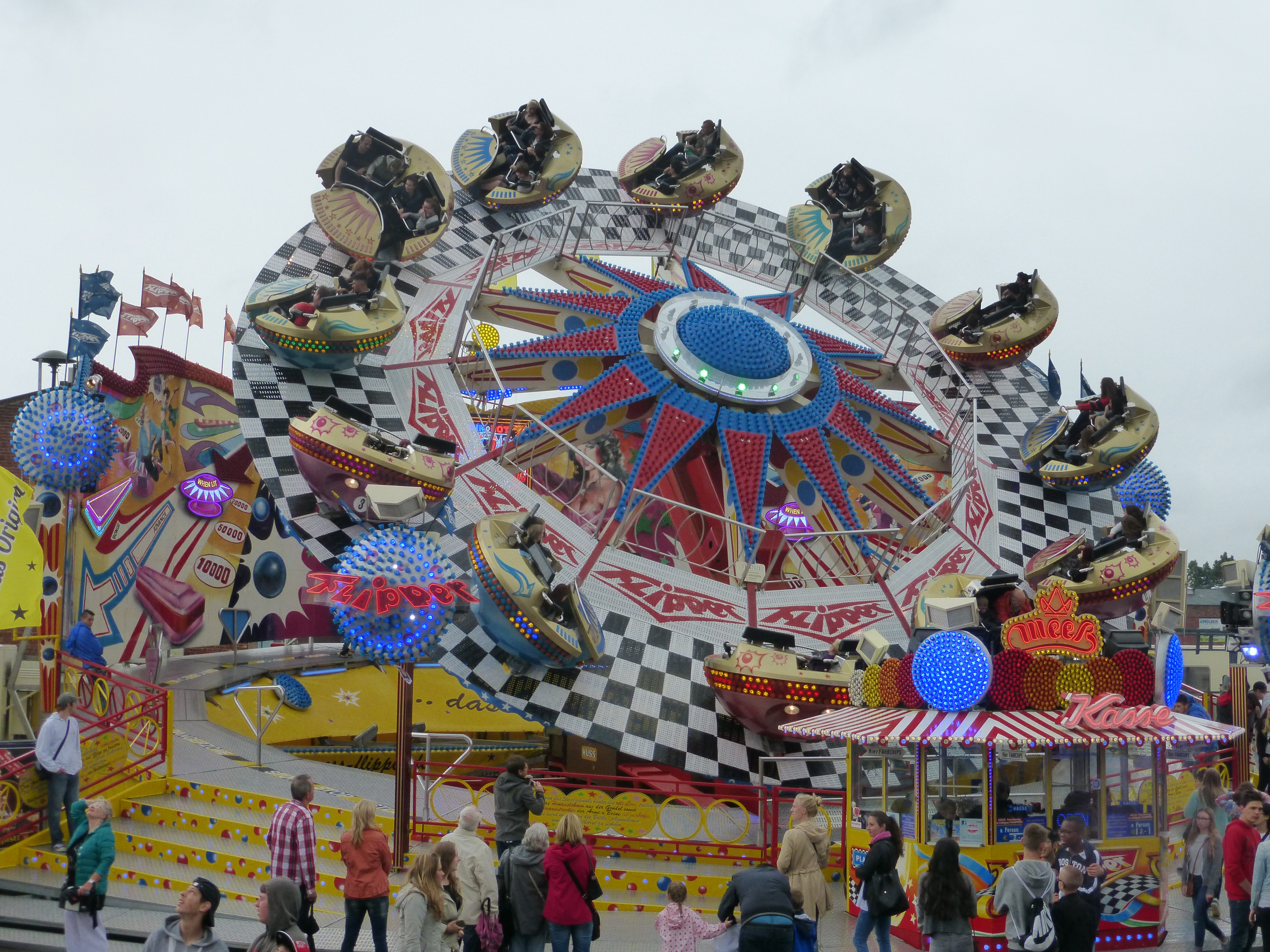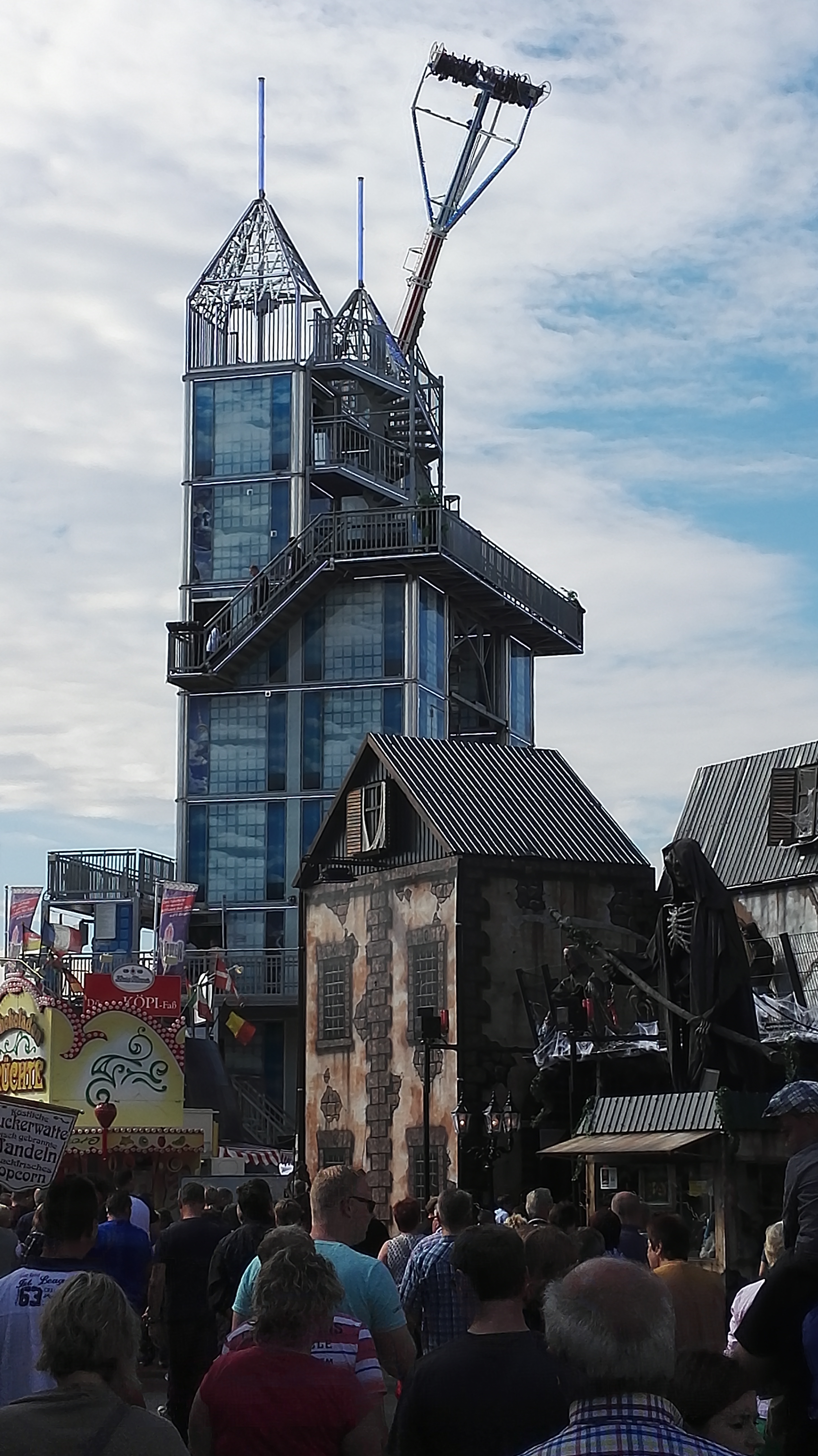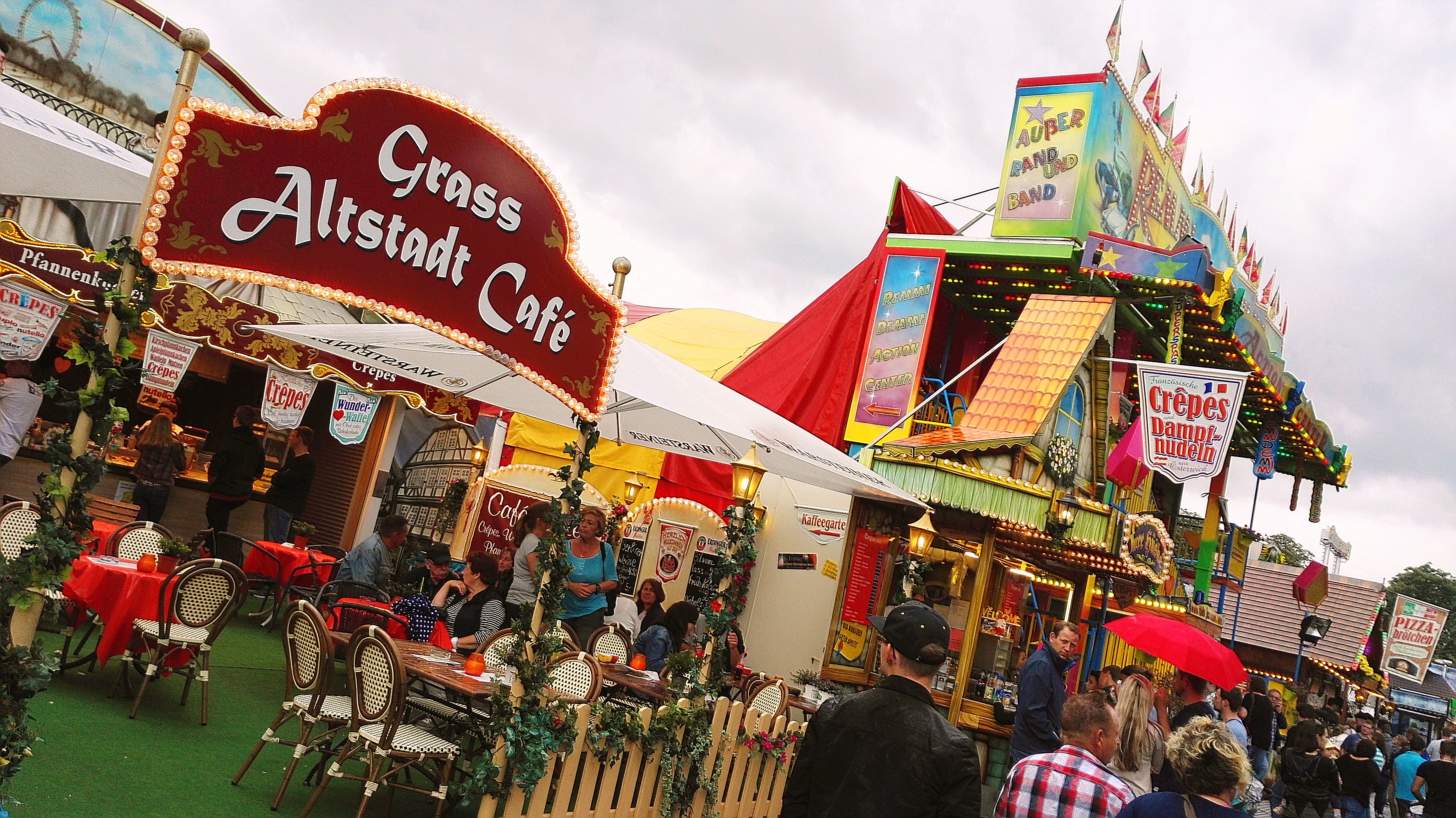 habe gestern am Familientag einen schönen Nachmittag auf der Anna-Kirmes verlebt. Die Preise der Fahrgeschäfte (und der Gastro) waren super und luden zum vergnügten Fahren ein: den Skyfall gab es für 3 Euro mit konsequent 2 Fällen, Infinity auch 3 Euro, ebenso der Booster G4 für 3 Euro. Der Familientag in Düren ist eine Bank! Diese Thrillrides waren im Nachmittagsbereich schwach besucht, wohingegen die Kiddierides, der Flipper!!!, Rio Rapidos und die beiden Autoscooter gut frequentiert waren. Erwartungsgemäß schwer hatte es der Avenger im Schatten des Infinity. Der Drifting-Coaster fuhr im 7-Chaisen-Betrieb und wurde neugierig vom Publikum getestet. Ich fand den schon beim Zusehen scheiße, was für eine knarziger Kasten. Sicherlich lag es auch am durchwachsenen Wetter in den Morgenstunden, dass viele Besucher am Nachmittag noch abgehalten hatte. Doch das Wetter war stabil, bestes Jäckchen-Wetter, Glück gehabt. Das änderte sich schlagartig gegen 18.00, dann strömten die Dürener auf ihre geliebte Anna-Kirmes und auch der der Infintiy war sofort voll belegt gewesen von der Teenager-Zielgruppe. Diese hatte dann wohl ausgechilled und ausgeschlafen:) Düren scheint mir aber generell eine Abendveranstalung zu sein. Übrigens, für 30 Euro kann man eine Infinity 5-Chip-Collection kaufen, sehr edel, aber nicht gerade billig. Macht euch ein Bild vom Familientag anhand der Fotos.