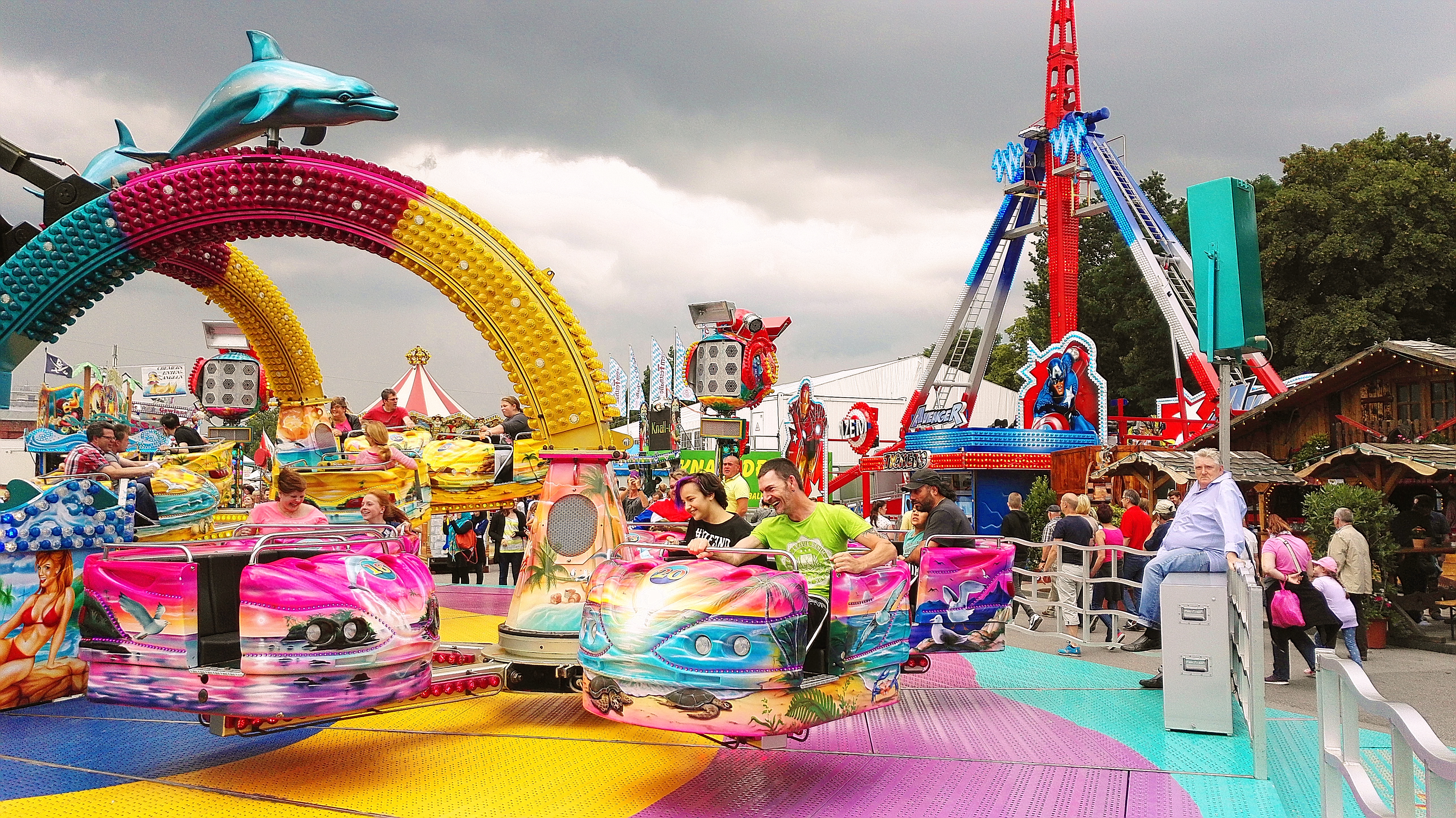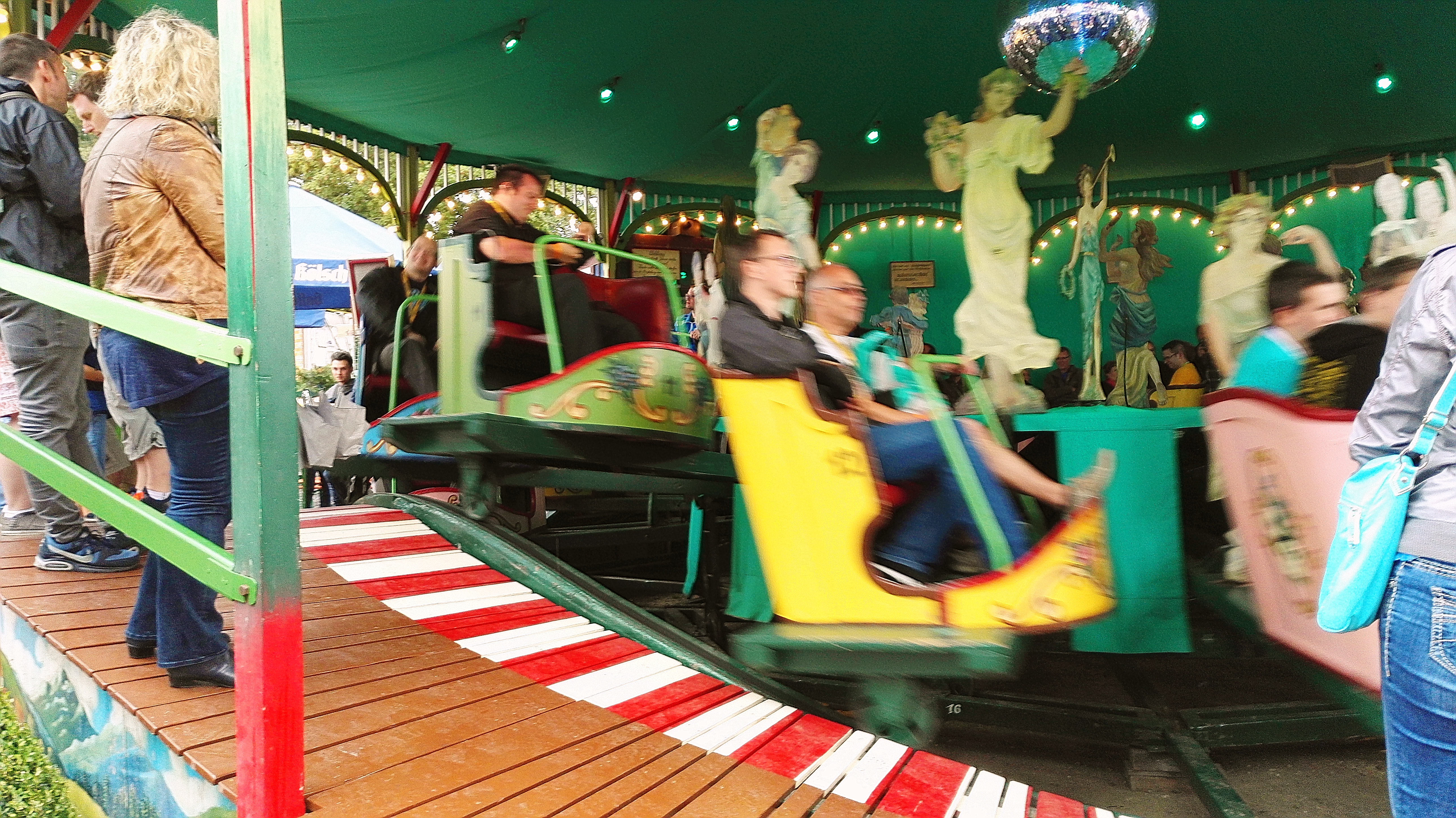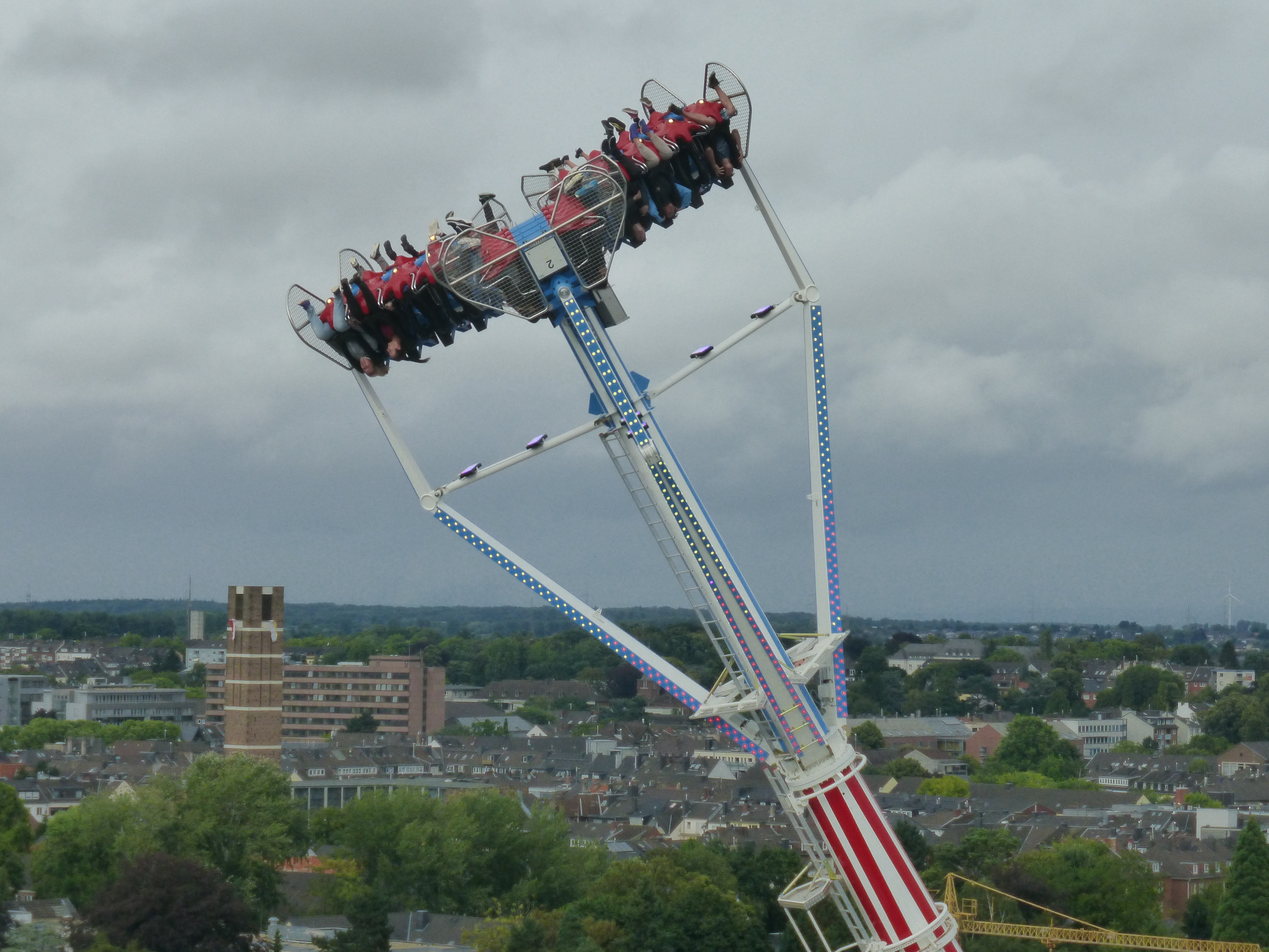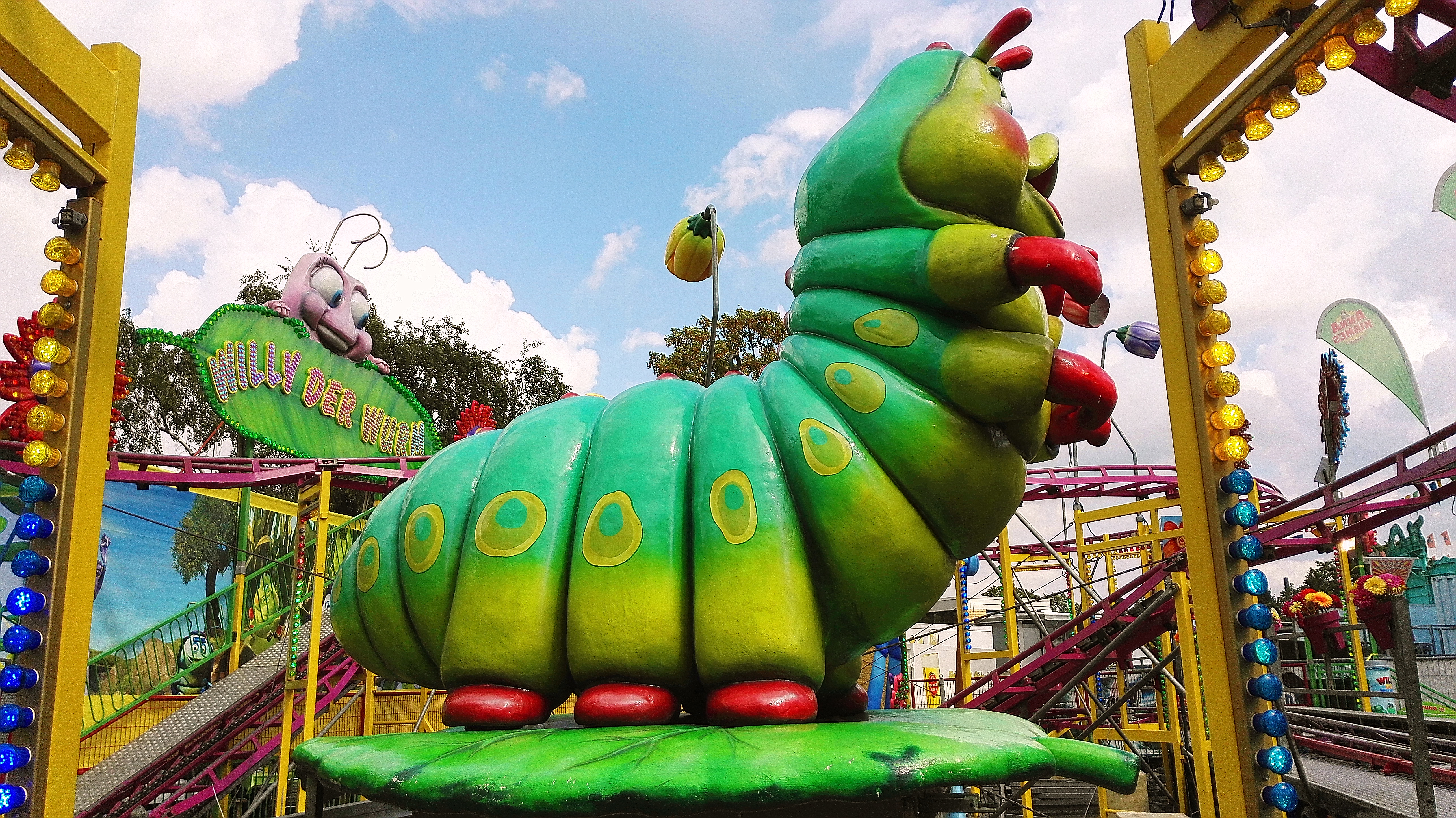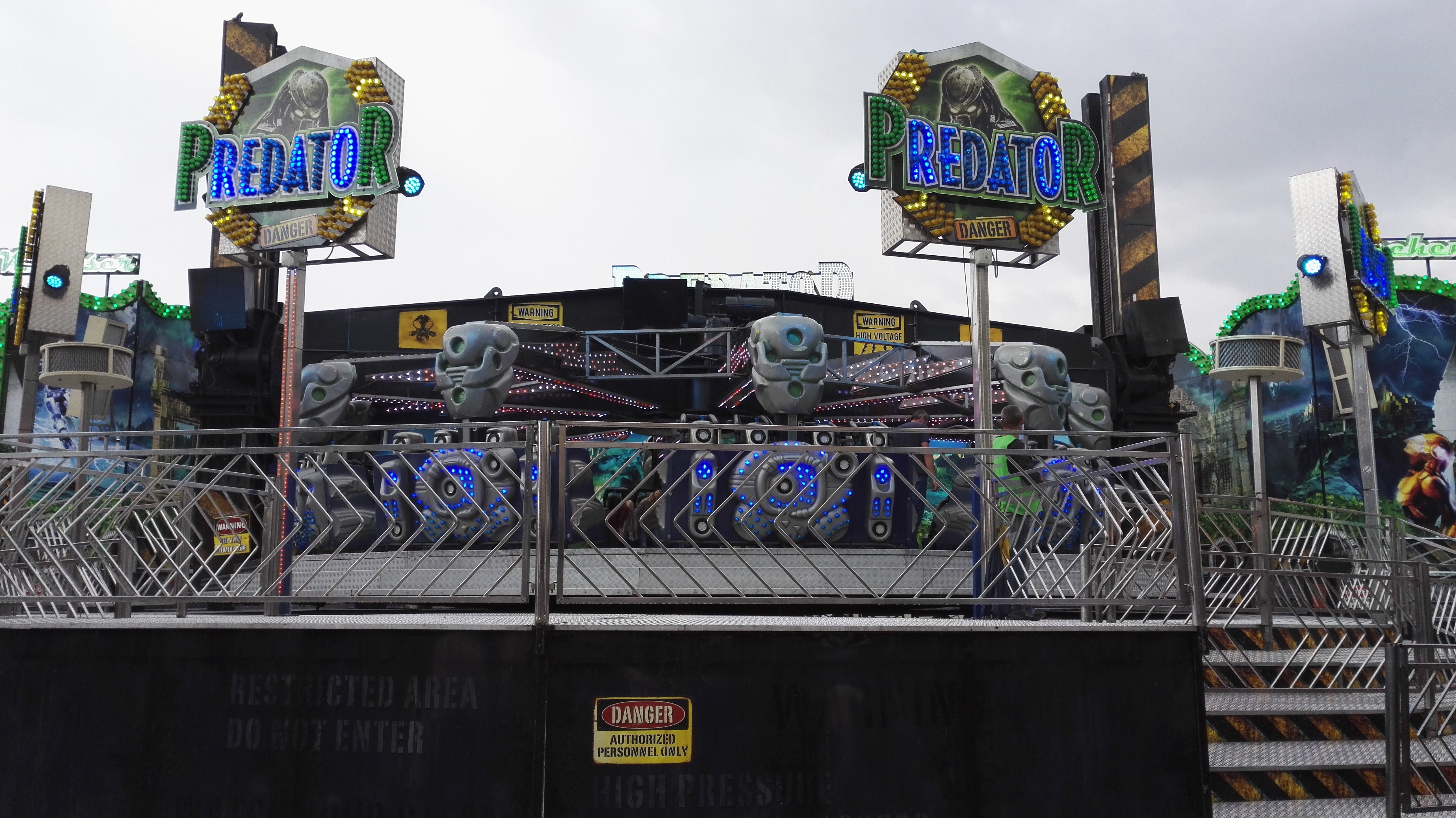 habe gestern am Familientag einen schönen Nachmittag auf der Anna-Kirmes verlebt. Die Preise der Fahrgeschäfte (und der Gastro) waren super und luden zum vergnügten Fahren ein: den Skyfall gab es für 3 Euro mit konsequent 2 Fällen, Infinity auch 3 Euro, ebenso der Booster G4 für 3 Euro. Der Familientag in Düren ist eine Bank! Diese Thrillrides waren im Nachmittagsbereich schwach besucht, wohingegen die Kiddierides, der Flipper!!!, Rio Rapidos und die beiden Autoscooter gut frequentiert waren. Erwartungsgemäß schwer hatte es der Avenger im Schatten des Infinity. Der Drifting-Coaster fuhr im 7-Chaisen-Betrieb und wurde neugierig vom Publikum getestet. Ich fand den schon beim Zusehen scheiße, was für eine knarziger Kasten. Sicherlich lag es auch am durchwachsenen Wetter in den Morgenstunden, dass viele Besucher am Nachmittag noch abgehalten hatte. Doch das Wetter war stabil, bestes Jäckchen-Wetter, Glück gehabt. Das änderte sich schlagartig gegen 18.00, dann strömten die Dürener auf ihre geliebte Anna-Kirmes und auch der der Infintiy war sofort voll belegt gewesen von der Teenager-Zielgruppe. Diese hatte dann wohl ausgechilled und ausgeschlafen:) Düren scheint mir aber generell eine Abendveranstalung zu sein. Übrigens, für 30 Euro kann man eine Infinity 5-Chip-Collection kaufen, sehr edel, aber nicht gerade billig. Macht euch ein Bild vom Familientag anhand der Fotos.