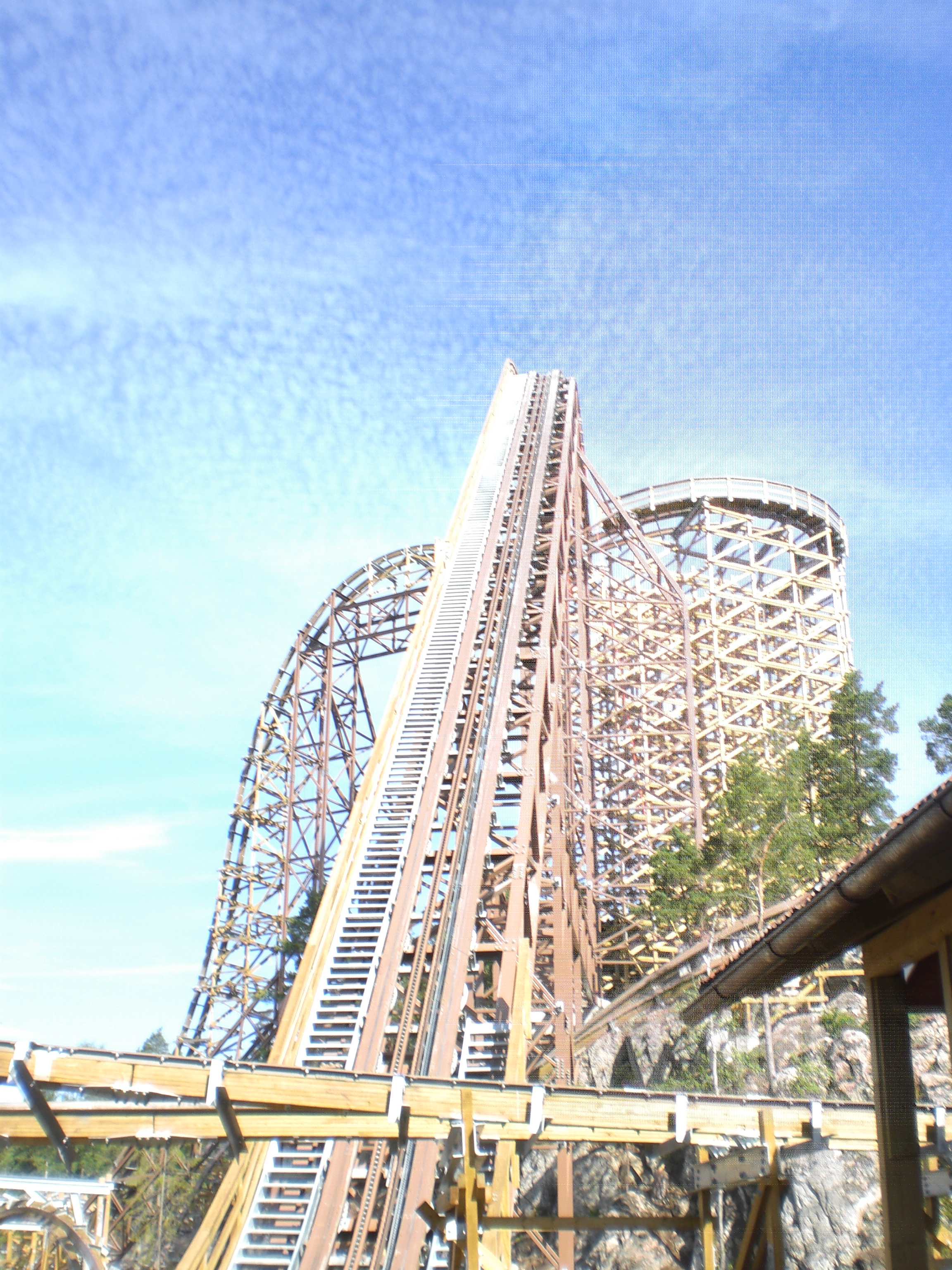 Ich muss allerdings den Leuten, die die Einstufung dieser Bahn als Holzachterbahn kritisieren, ein wenig Recht geben: Dieser Lifthill ist in meinen Augen schon eine Beleidigung für eine Holzachterbahn.