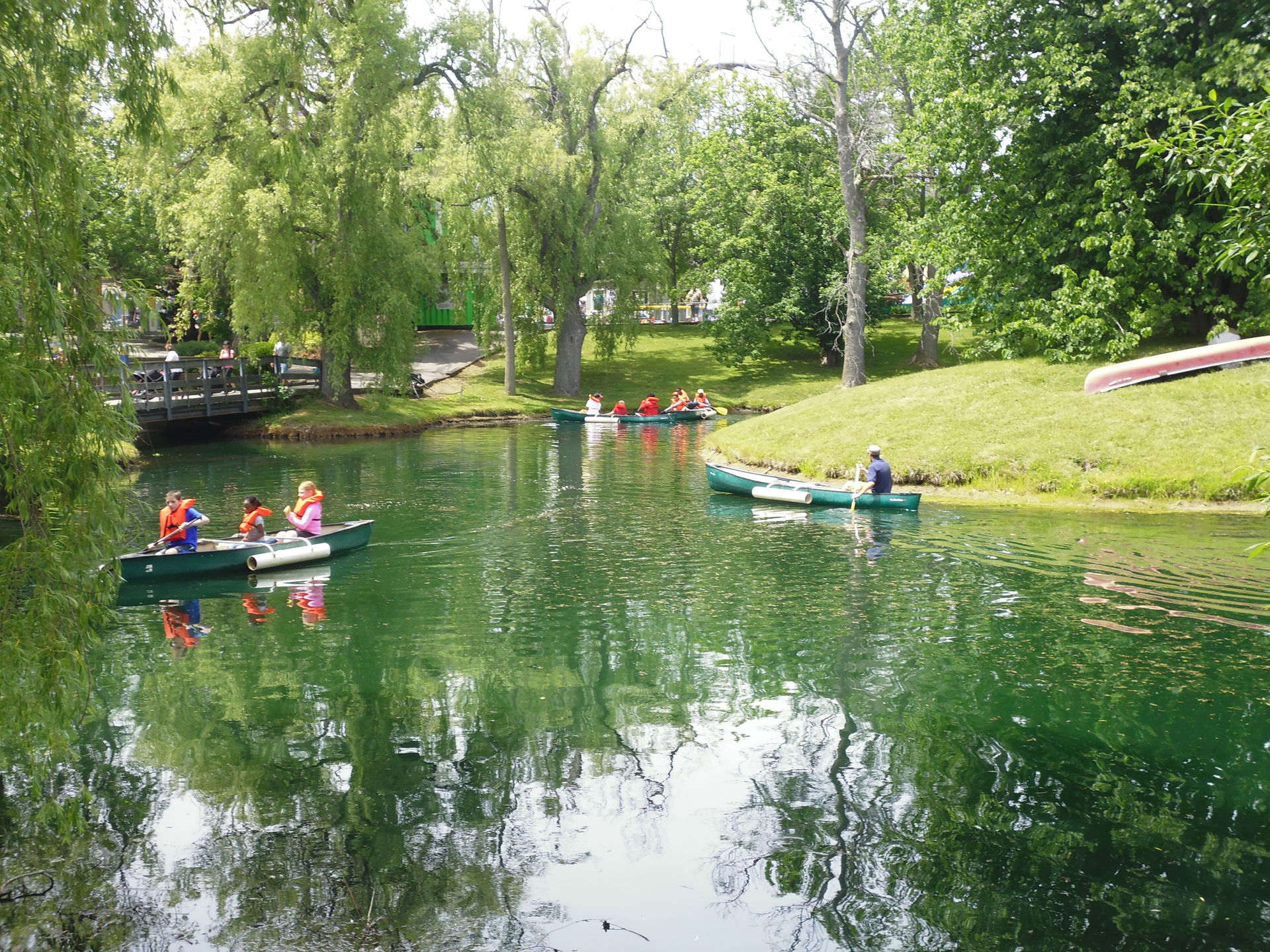 Google Maps auch recht gut. Kernstück des waldigen Teils ist ein recht grosser, mit Trauerweiden gesäumter See, in dessen Mitte sich eine Indianerinsel befindet. Hier können Kanus ausgeliehen werden, was an dem Nachmittag eine sehr gut angenommene Attraktion war.