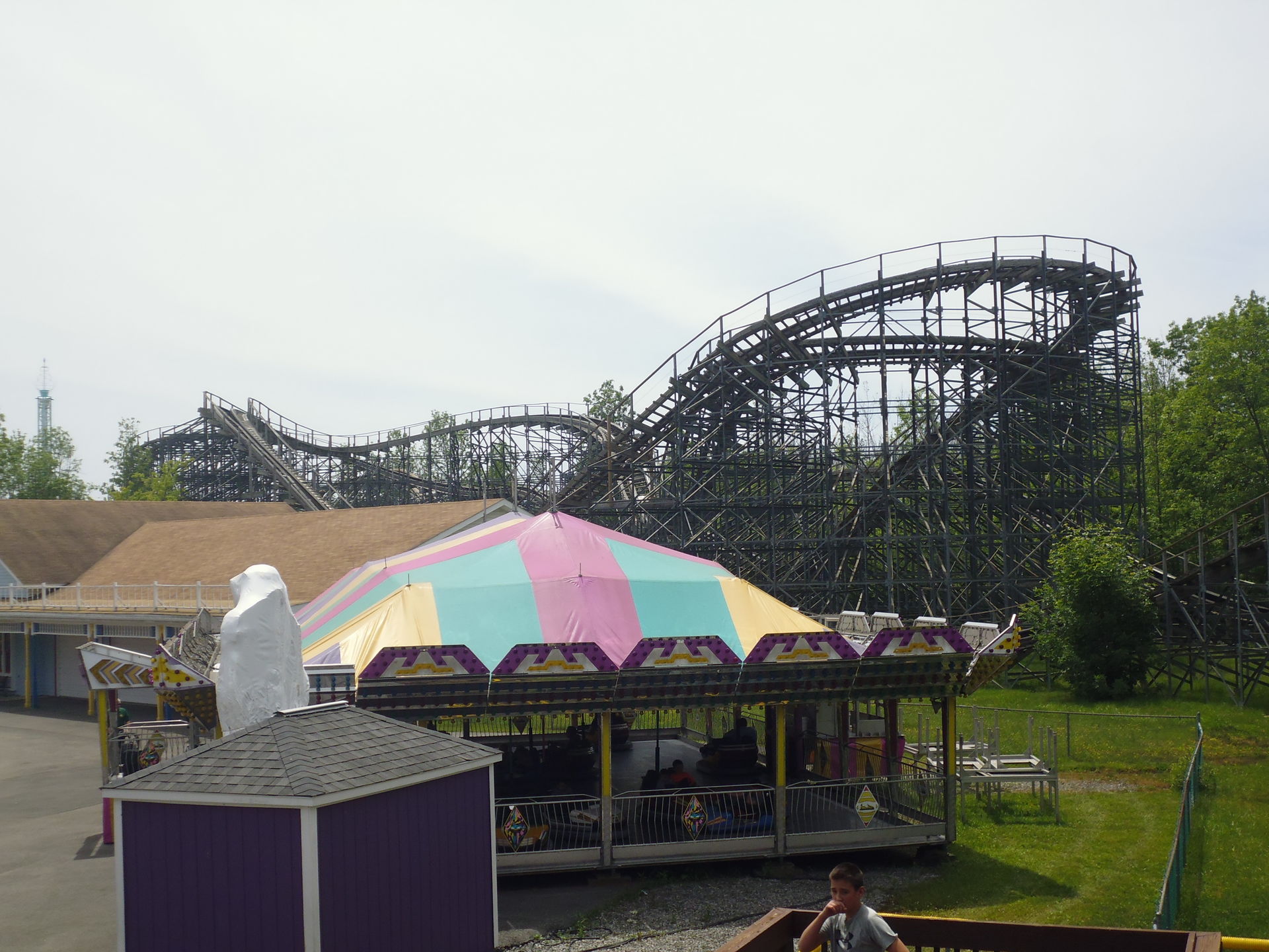 ) und zwischen den Parks rund 45 Minuten an Fahrstrecke zu bewältigen sind. Da ich mit dem wenig berauschenden Darien Lake bahnenmässig um 12.20 Uhr und nach letzten Fotos um etwa viertel vor eins durch war, erwiesen sich diese als völlig unbegründet. Darüber hinaus war es vom Zeitmanagement des nächsten Tages her gesehen auch besser, Martin's Fantasy Island noch am Freitag zu besuchen, da ich am Samstag sonst erst am frühen Nachmittag aus Buffalo rausgekommen wär, weil Martin's Fantasy Island da erst um 11.00 Uhr aufgemacht hätte. Möglicherweise wäre dem dann einer der beiden Folgeparks zum Opfer gefallen.