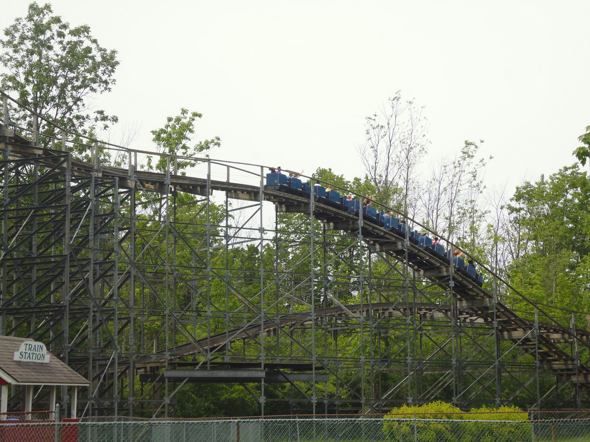 Vorrangig war ich natürlich wegen leckerem Holz hier! Also auf zum Silver Comet, einem CCI-Woodie mit Stahlstützen aus dem Jahr 1999. Das Stationsdesign wurde von demjenigen des Comets im damals unweit von hier gelegenen Crystal Beach inspiriert, und angeblich auch die Streckenführung. Das kann ich aber ehrlich gesagt weniger nachvollziehen, denn den Wiederaufbau des Comets bin eine Woche zuvor ja in