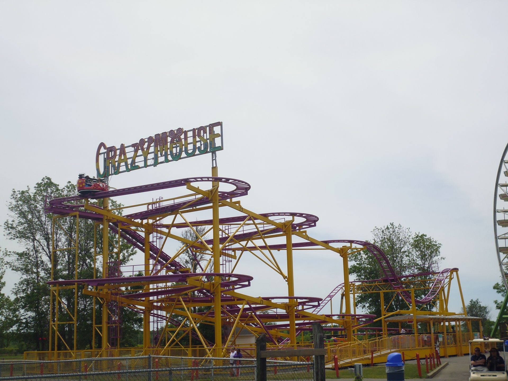 Die Crazy Mouse am anderen Ende des Midways kannte ich layoutmässig und fahrtechnisch zwar schon von diversen Chilbis in der Heimat, allerdings stammt die Anlage hier nicht von Reverchon, sondern von Zamperla. Erstaunlich, dass diese ja nicht wirklich kooperierenden Firmen bis zu den Fahrzeugen, Bügeln und sogar dem Logo hin solch identische Anlagen liefern!