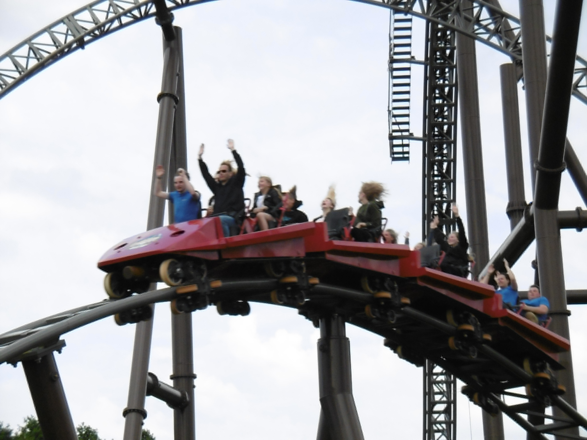 Airtime steht wird hier vermutlich nur ein wenig Spaß haben. Mir Umsschwungfan hat die Bahn aber auch aufgrund des seltenen Beschleunigungssystems und einem weiteren Grund (siehe später) unheimlich gut gefallen. Die Bügel sind zwar zunächst etwas ungewohnt, zumindest für mich aber nicht unbequem und durch die sehr freie Sitzposition macht das die Bahn umso besser.