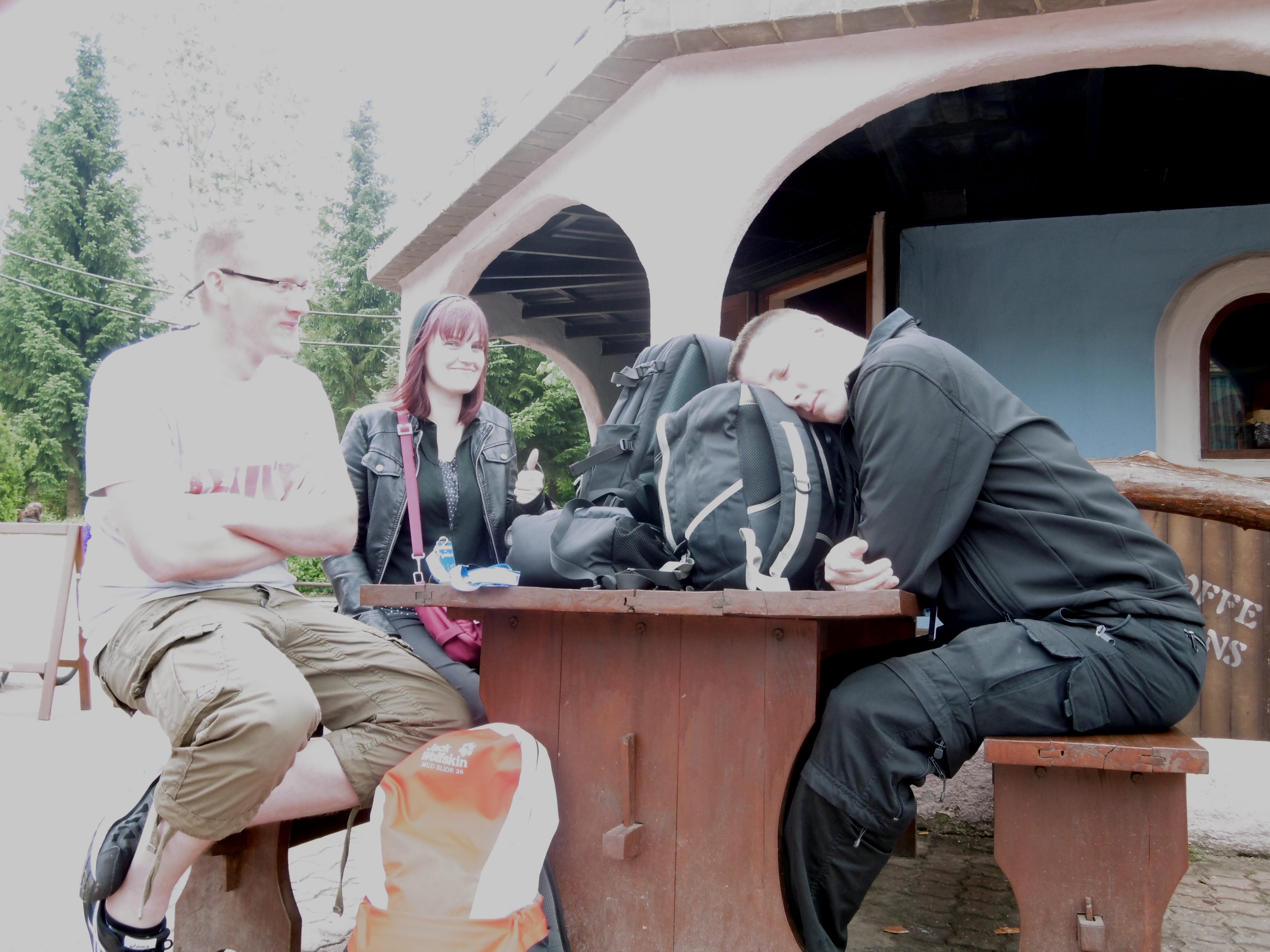 Dort trafen wir eine kleine müde (so eine Tour ist aber auch anstrengend) Truppe, die auf ihre Kollegen im genannten Rapid River wartete (mal schauen, wie lange das Bild hier bleibt ...). Dem Sebastian und der Lisa scheints zu gefallen, auch wenn mich ersterer verpetzt hatte.