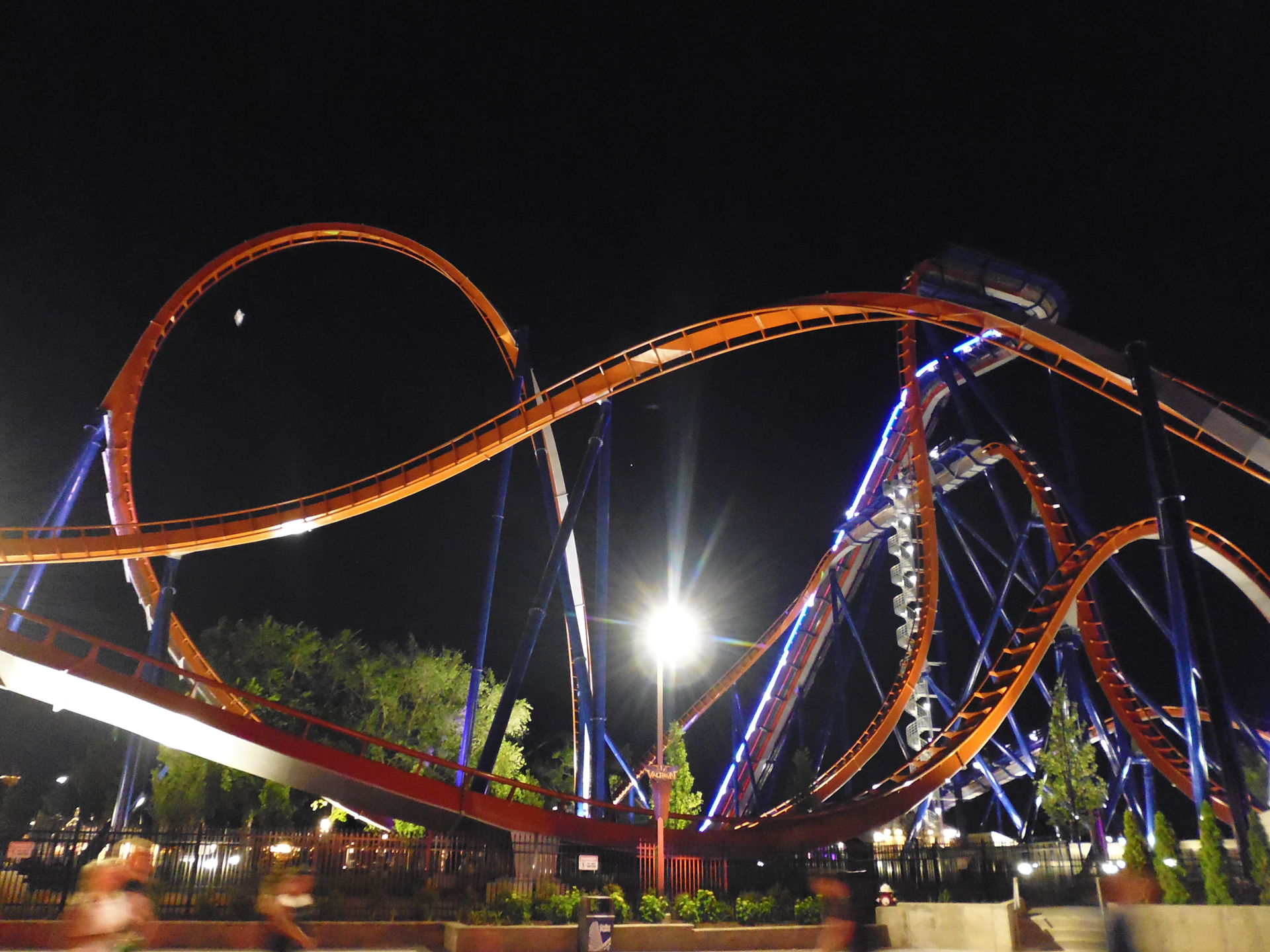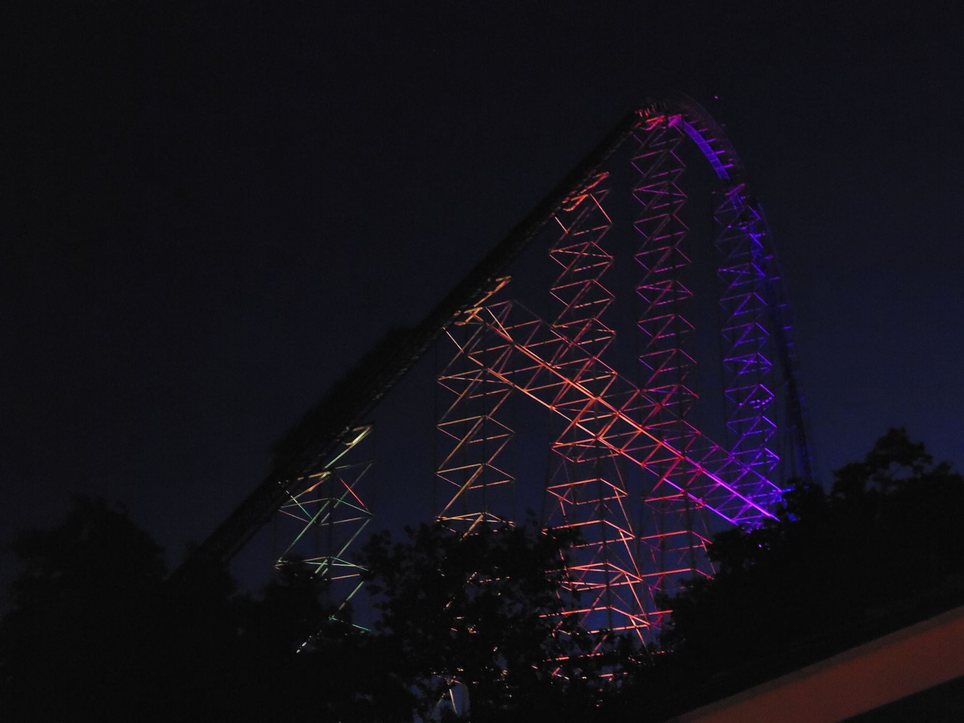 Nachtfahrten auf Millennium Force sind wahrlich märchenhaft. Und besonders in Erinnerung bleiben wird mir die gleich an die erste anschliessende zweite, die ich mit nur noch etwa zehn Minuten Wartezeit in der Lastrow machen durfte und bei der das Feuerwerk der Lasershow auf der Bühne bei Iron Dragon losgegangen ist, als wir den letzten