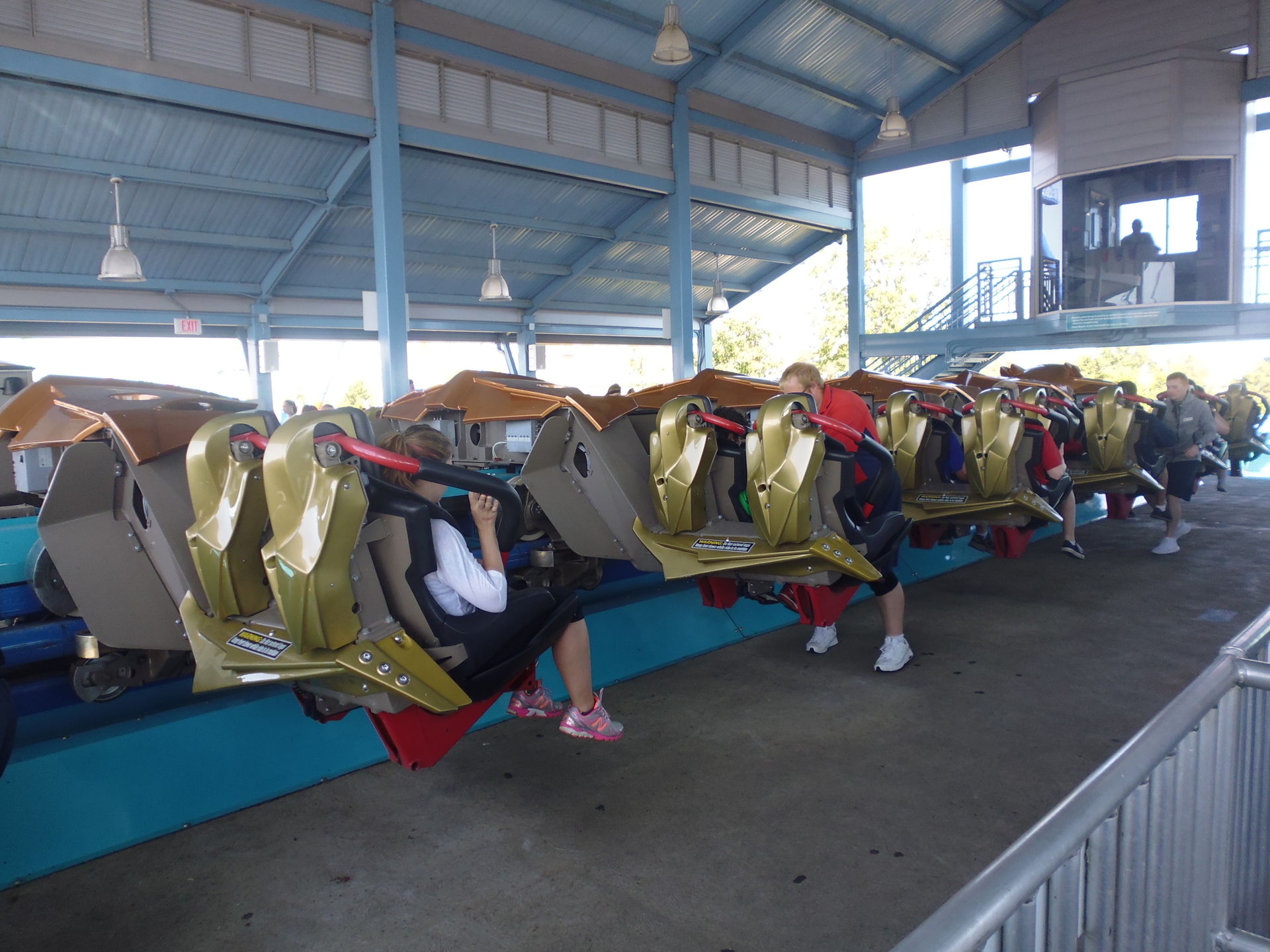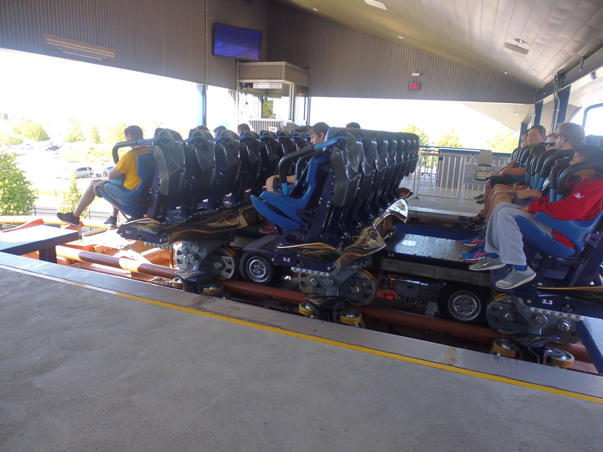 Airtime bietende Out-and-Back-Strecke entlang der Zufahrtsstrasse zu den Resorts auf wunderbare Art begleitet. Also zumindest bei der Wiederholungsfahrt in der Mittelreihe eines der Sechserwaggons, bei der ersten musste ich mich dank der Dummheits-Verzögerung auf dem Lifthill mit einem Wheel Seat zufrieden geben, wo man doch merklich rauer behandelt wurde, aber immer noch im bestens erträglichen Rahmen.