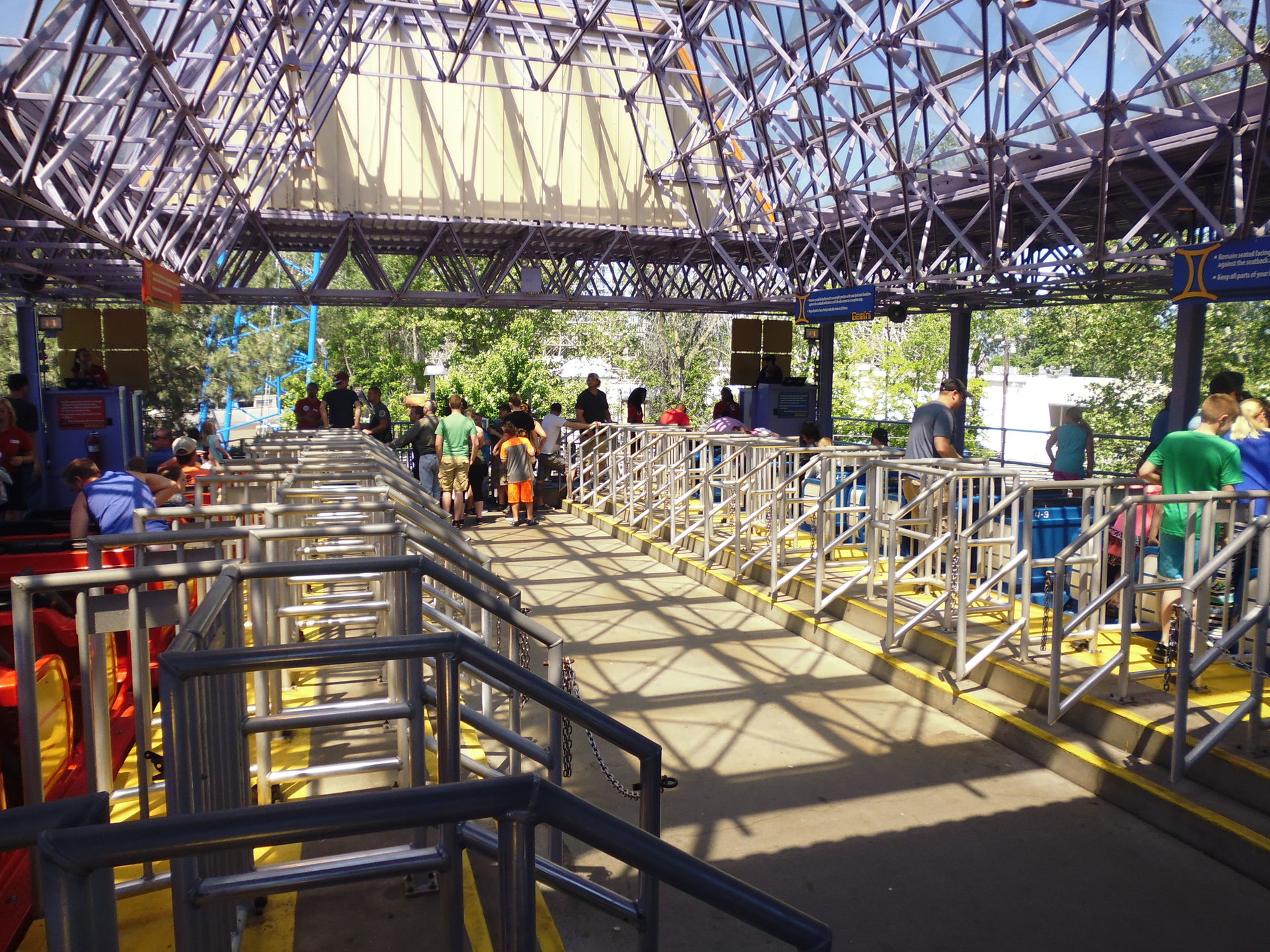 So eine Doppelfahrt auf Maverick hat ihren Preis: die Warteschlange reichte bereits bis etwa zum Anfang der letzten Rampe zurück. Momentchen, schrieb ich gerade ernsthaft "bereits"? Es war ja kaum nach halb zehn als dieses Foto gemacht wurde und selbst als beim letzten Early Entry im Jahr 2010 Millennium Force gleich als erstes angesteuert wurde war die Schlange schon locker dreimal so lang. "Bereits", echt ey. Motzen auf allerhöchstem Niveau ist das! Ab hier hat man noch eine knappe Viertelstunde gewartet. Hoch lebe die Vorsaison!